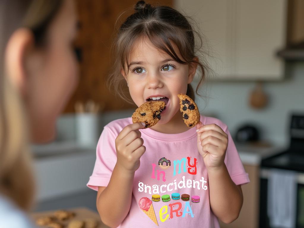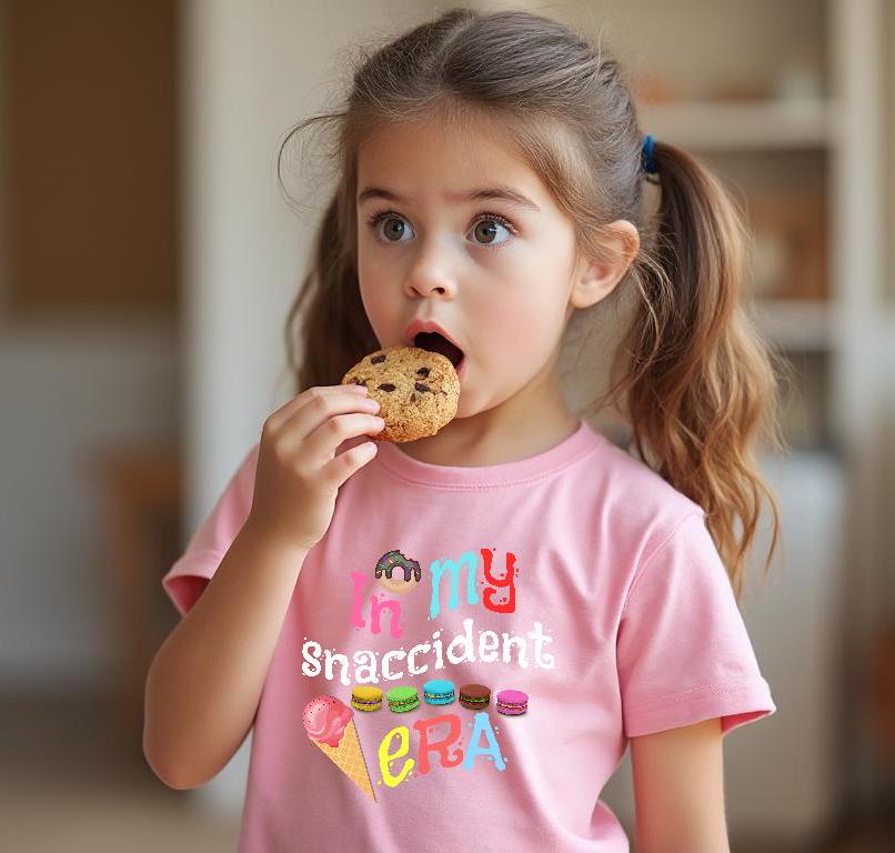 Snaccident  Kid Humor Tee Food Pun T-Shirt Cute Snack Time Outfit Sweet Tooth Fun Ice Cream Macaron Design Funny Apparel Gift for kids
