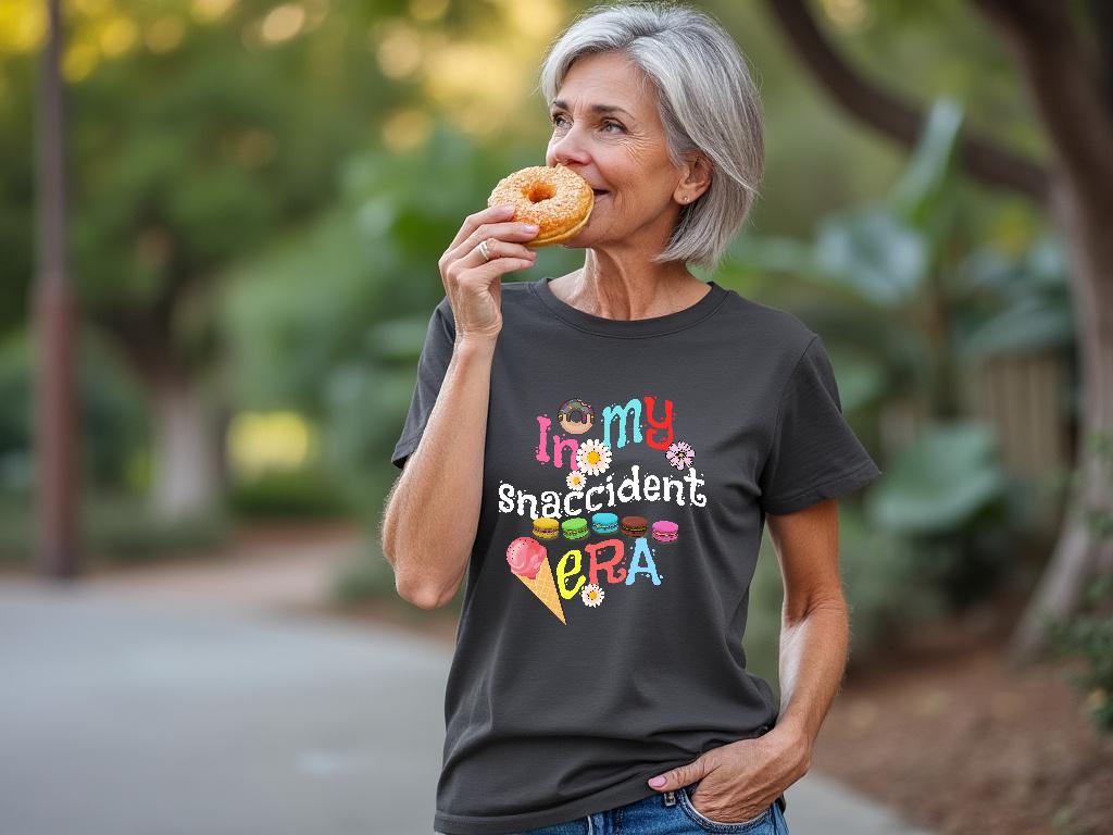 Indulge your sweet tooth with our hilarious "In My Snaccident Era" Comfort Colors unisex t-shirt, the perfect funny food shirt for snack lovers and dessert enthusiasts alike. This millennial humor clothing piece combines foodie apparel with a quirky slogan, making it an ideal gift for anyone who appreciates a good laugh and a great snack.