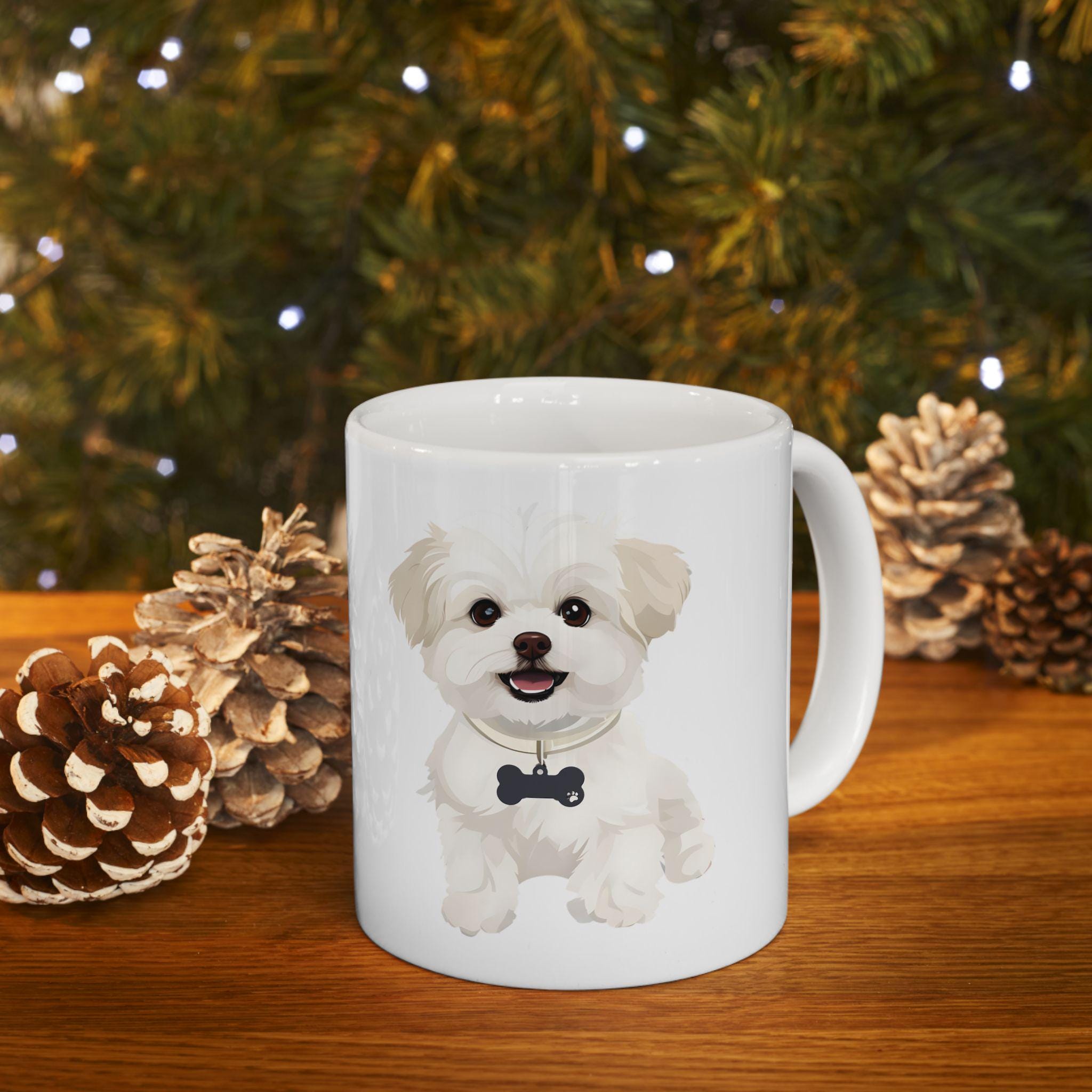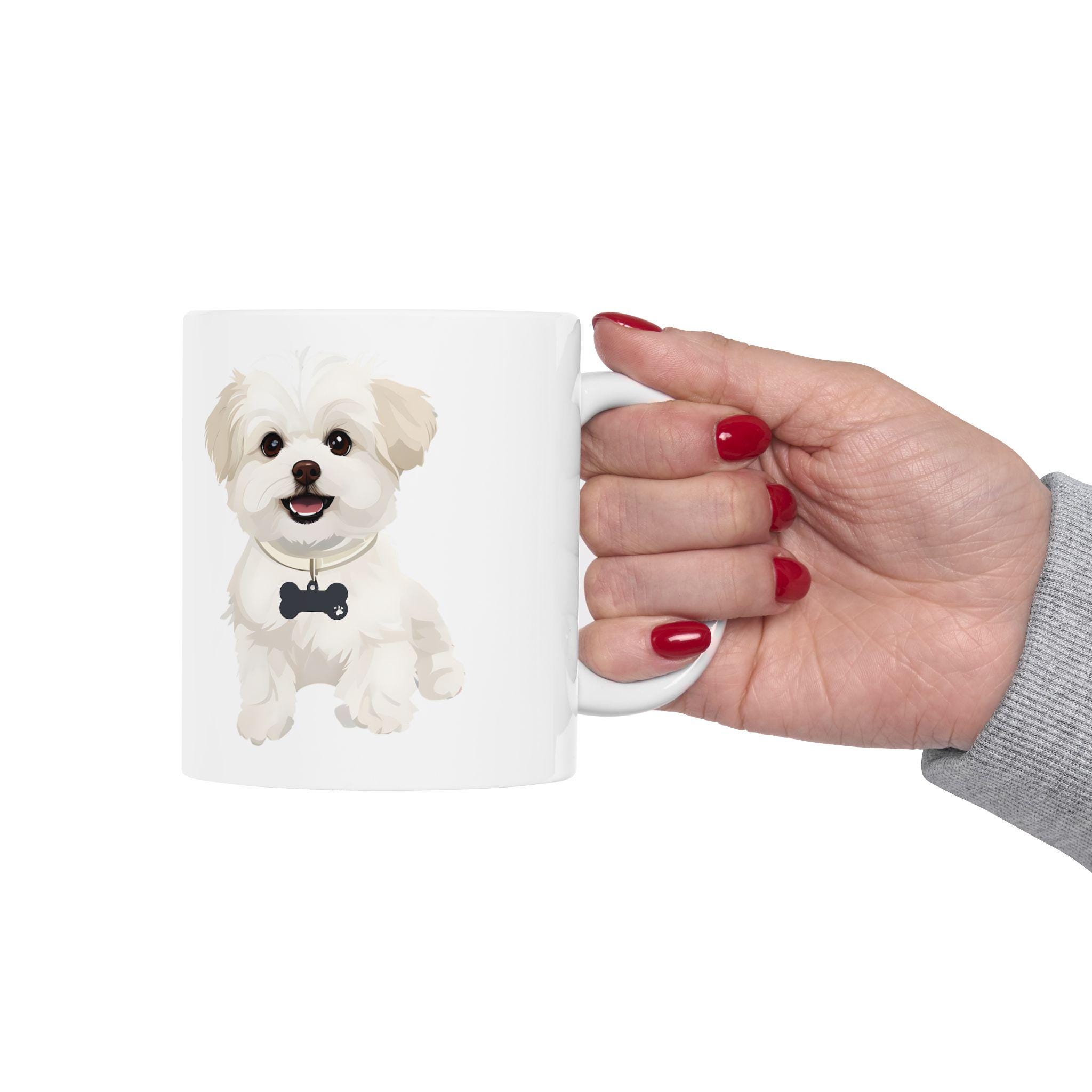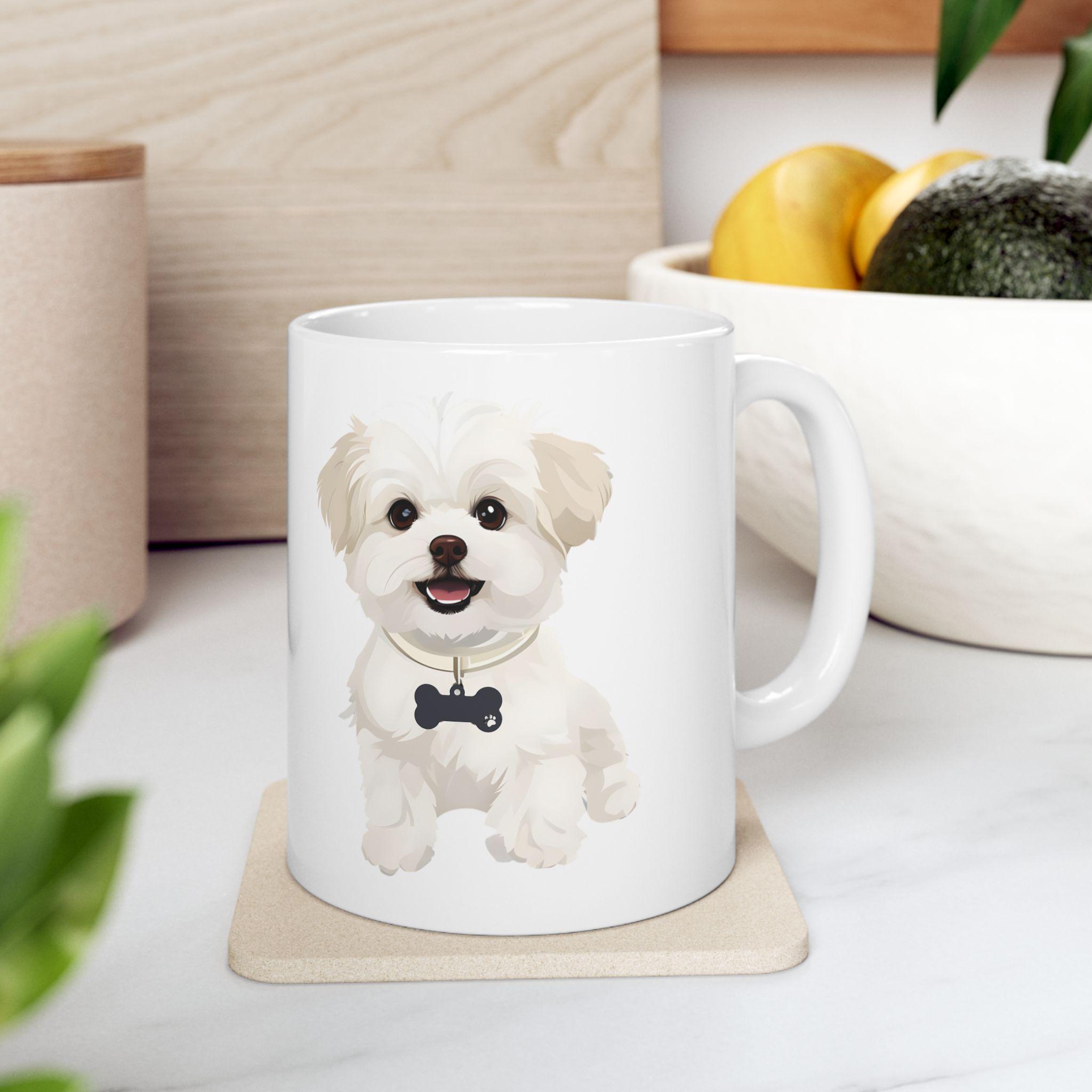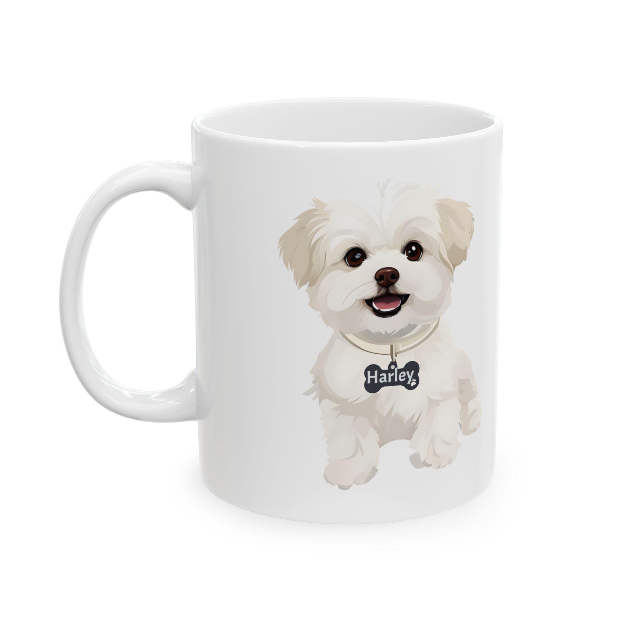 Personalized Maltese Ceramic Mug, Custom Dog Lover Coffee Cup, Pet Name Tag Gift, 11oz 15oz Tea Mug, Puppy Owner Present, Pet Memorial Cup
