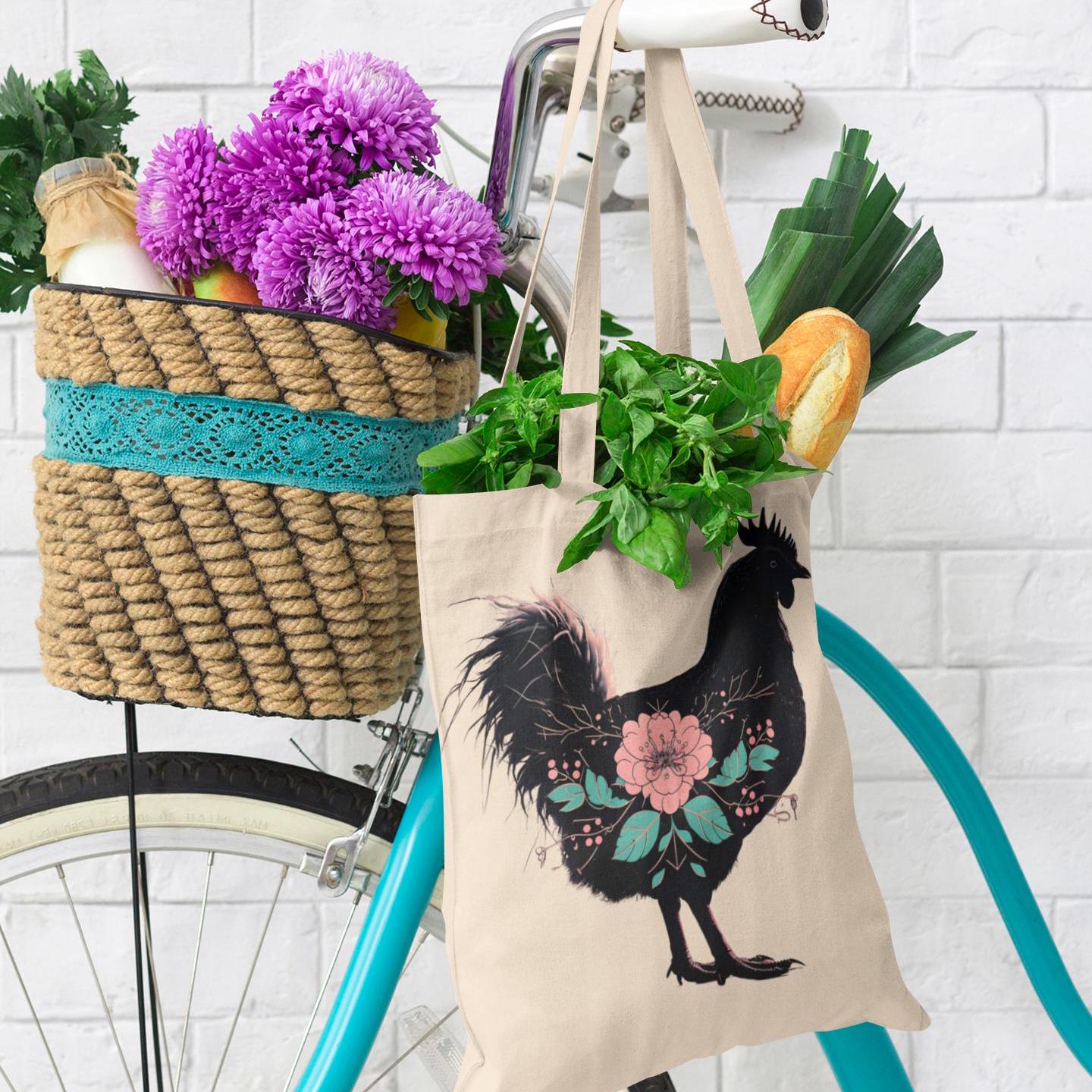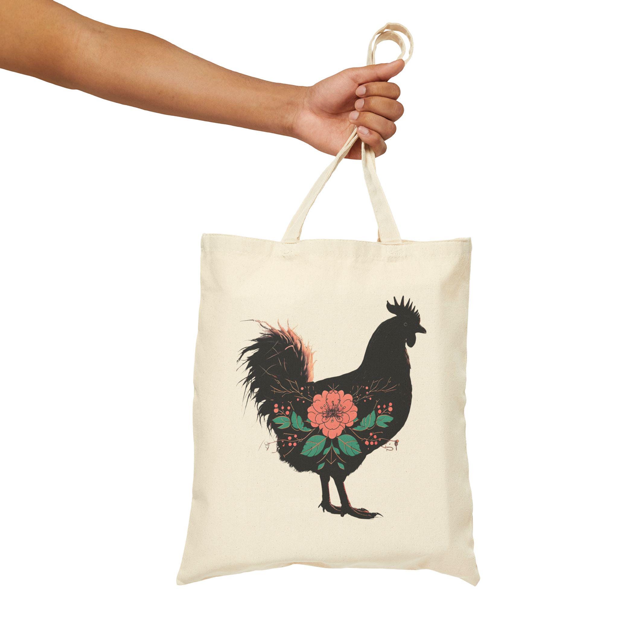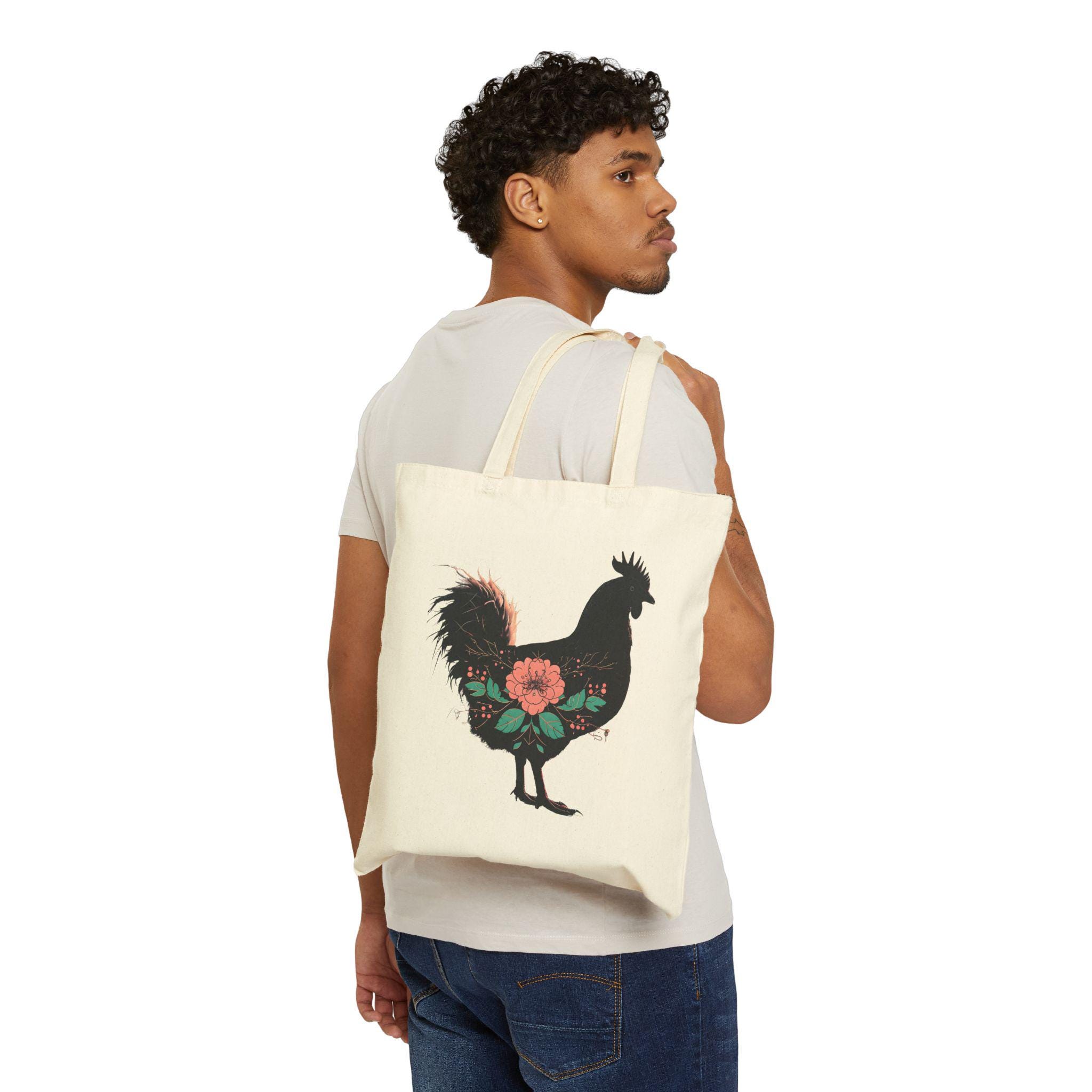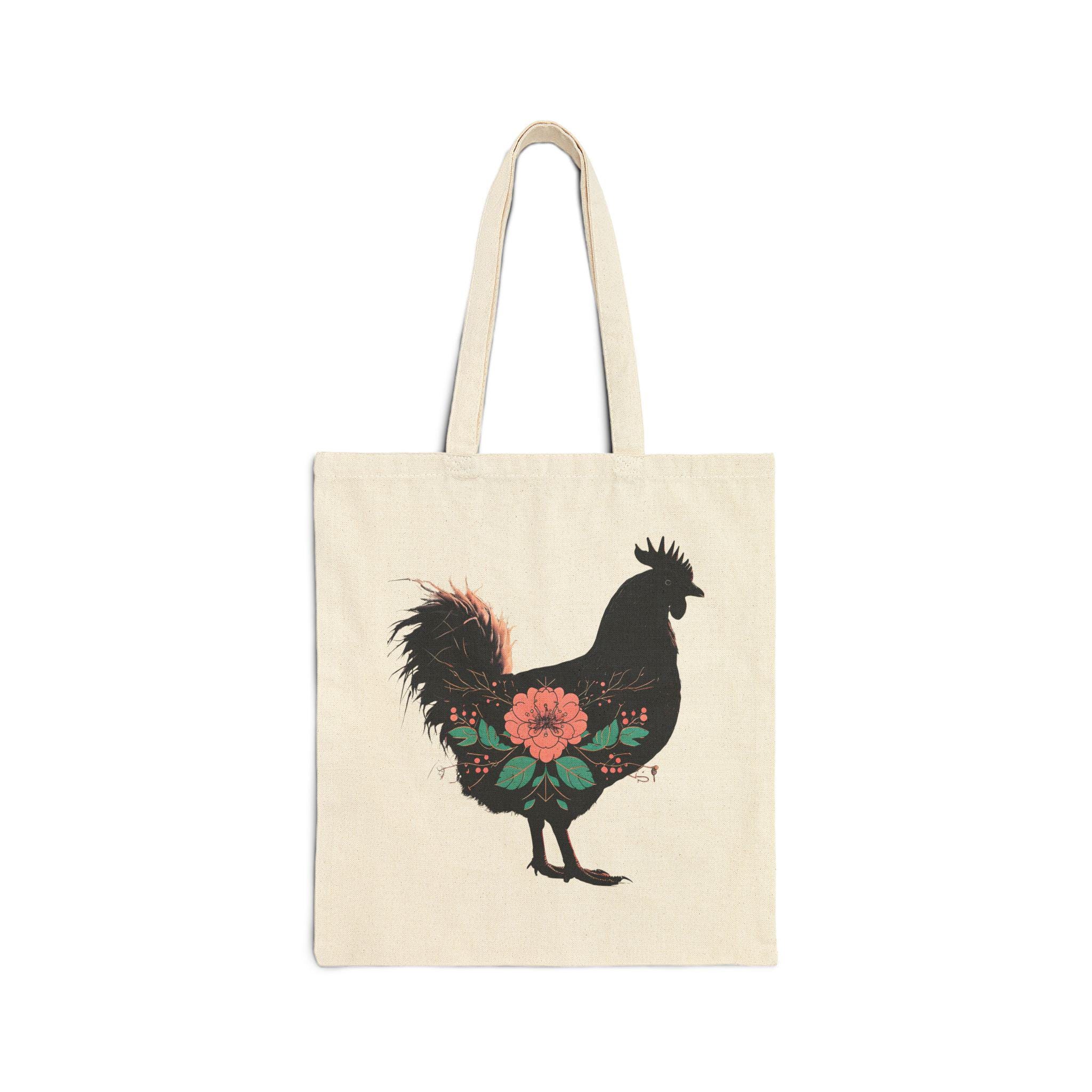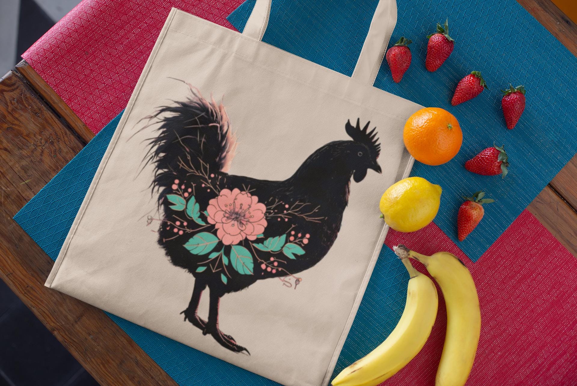 Flowerful Chicken Tote Bag, Floral Chick Grocery Bag, Farmhouse Market Tote, Spring Chicken Canvas Tote, Cute Rooster Handbag, Country