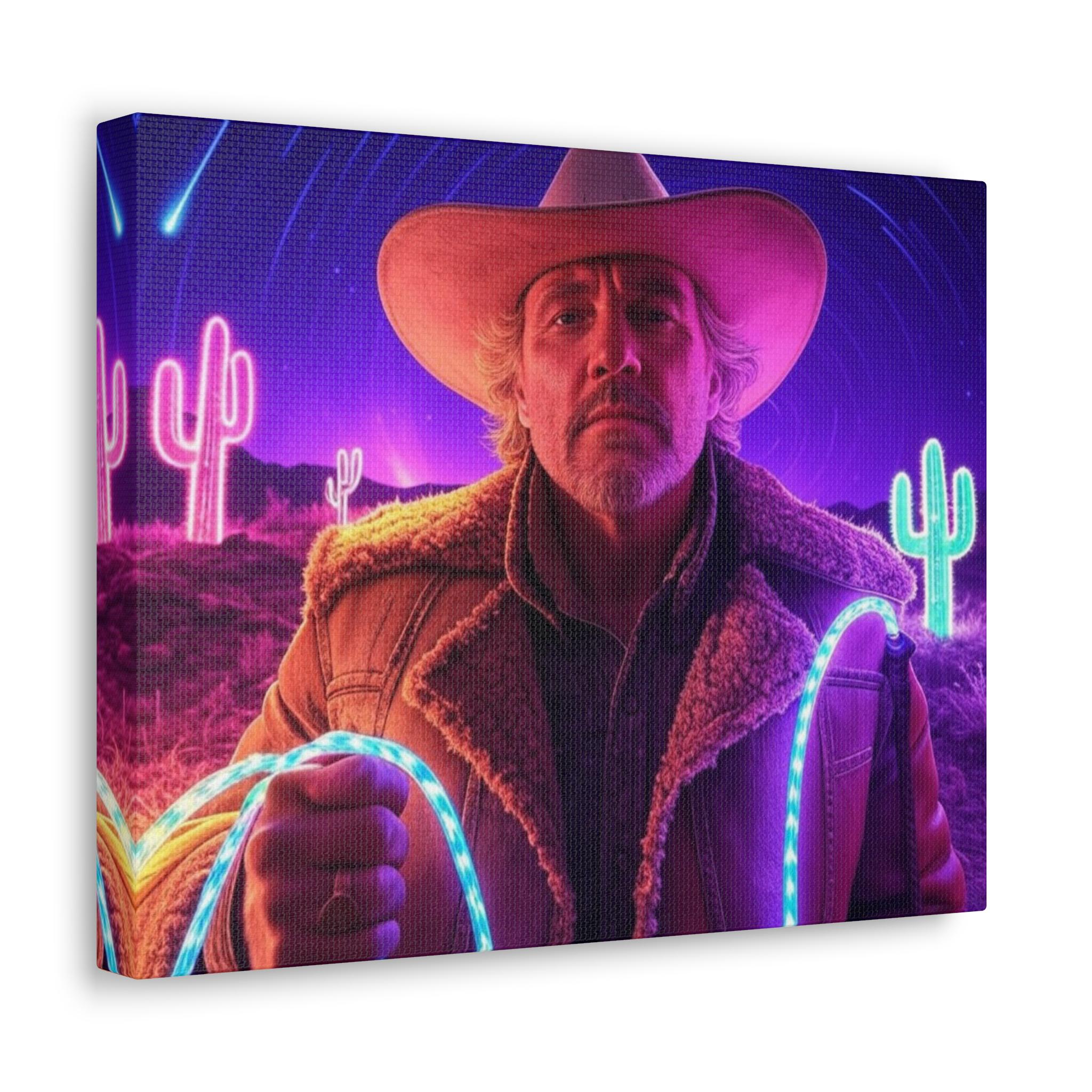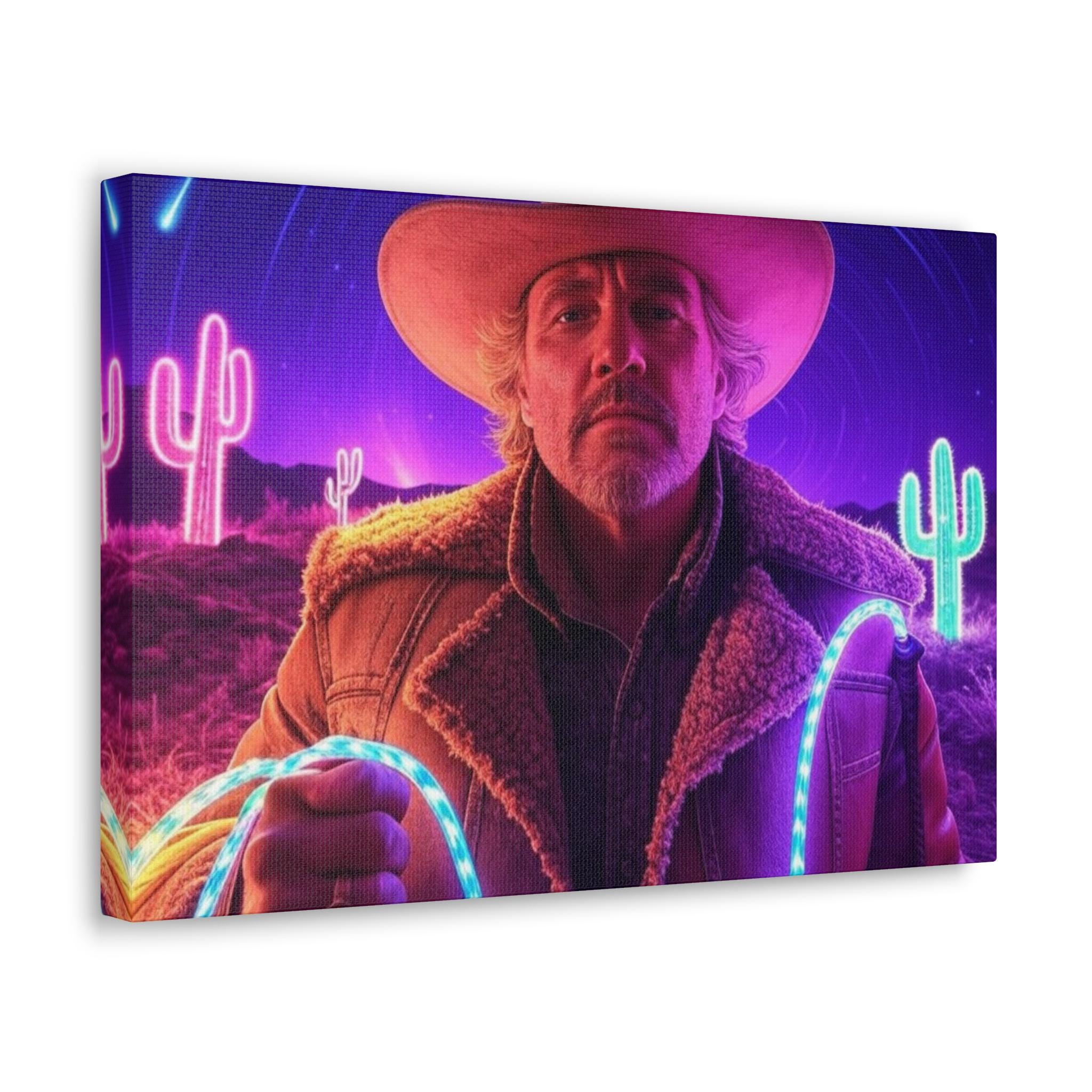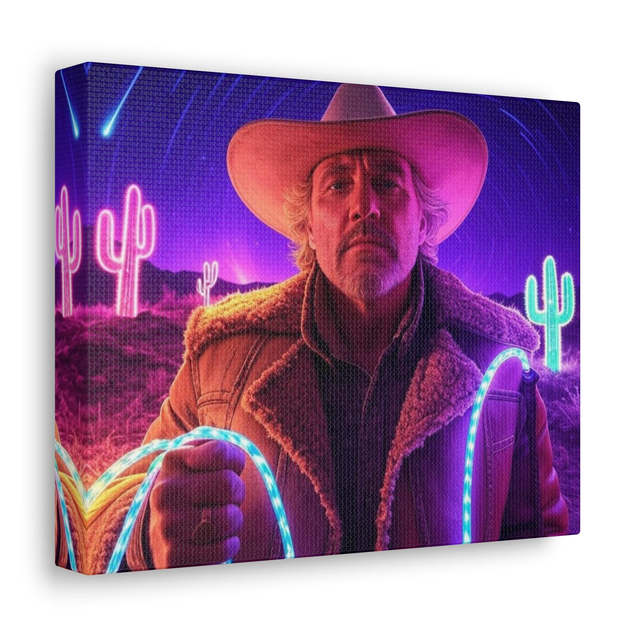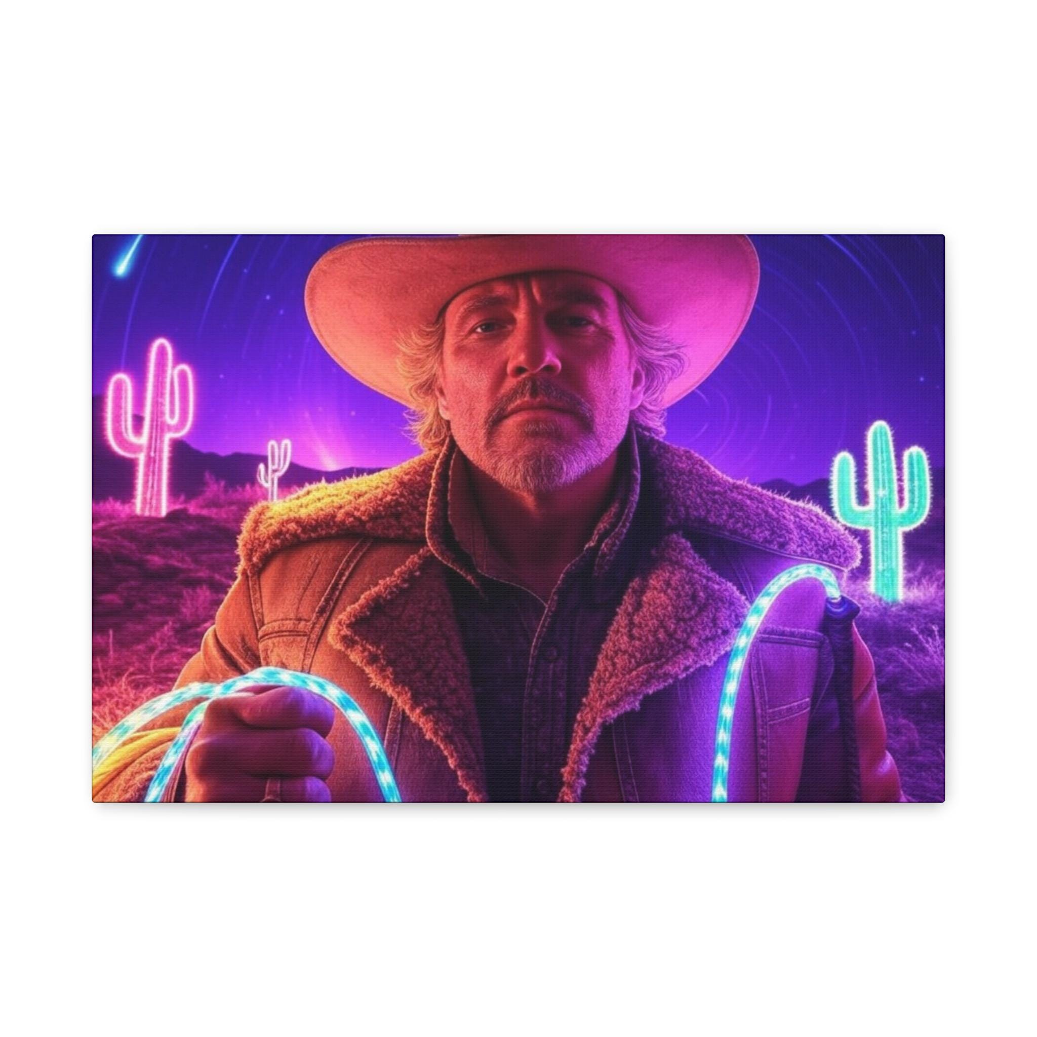 Neon Cowboy Canvas Print, Retro Futurism Cosmic Western Wall Art