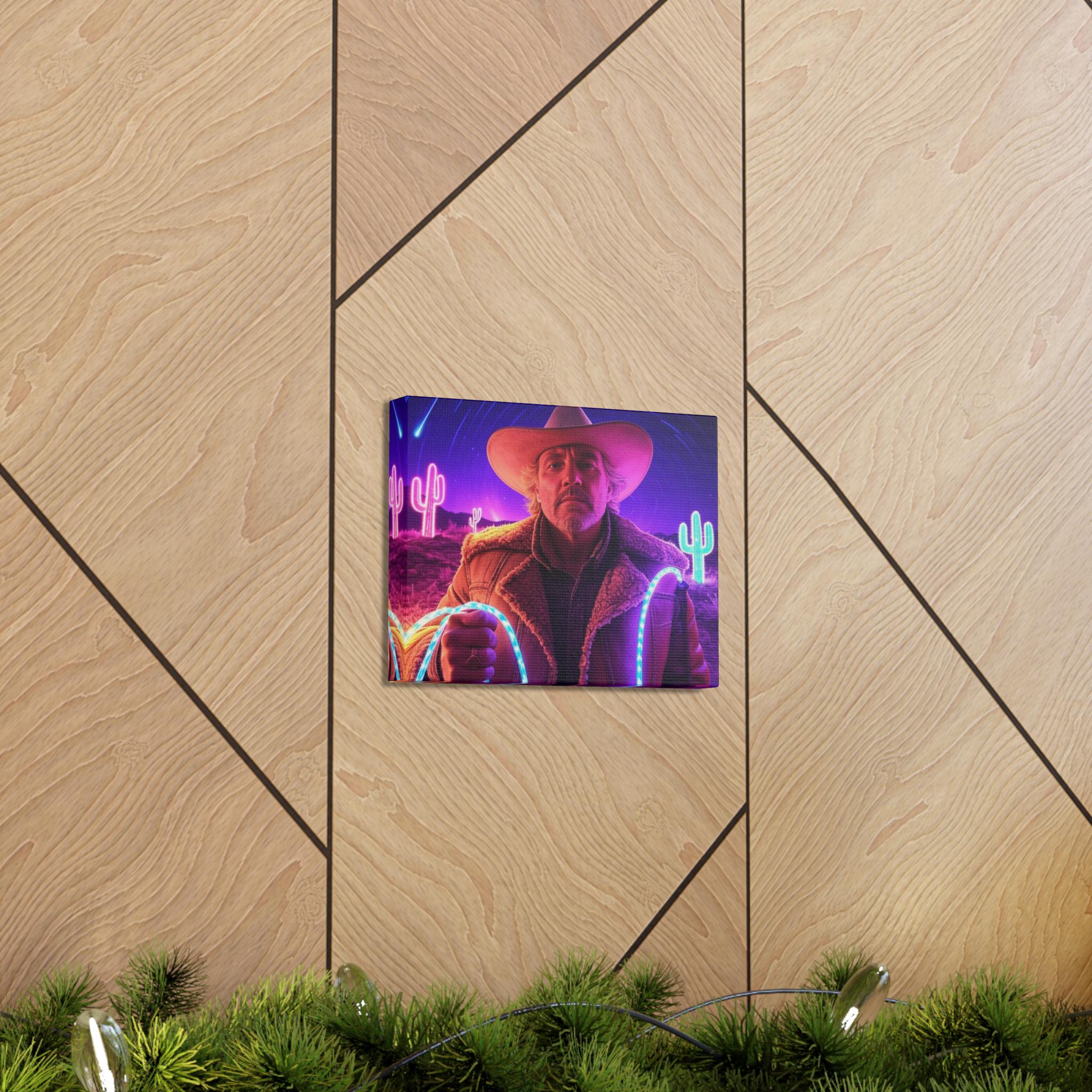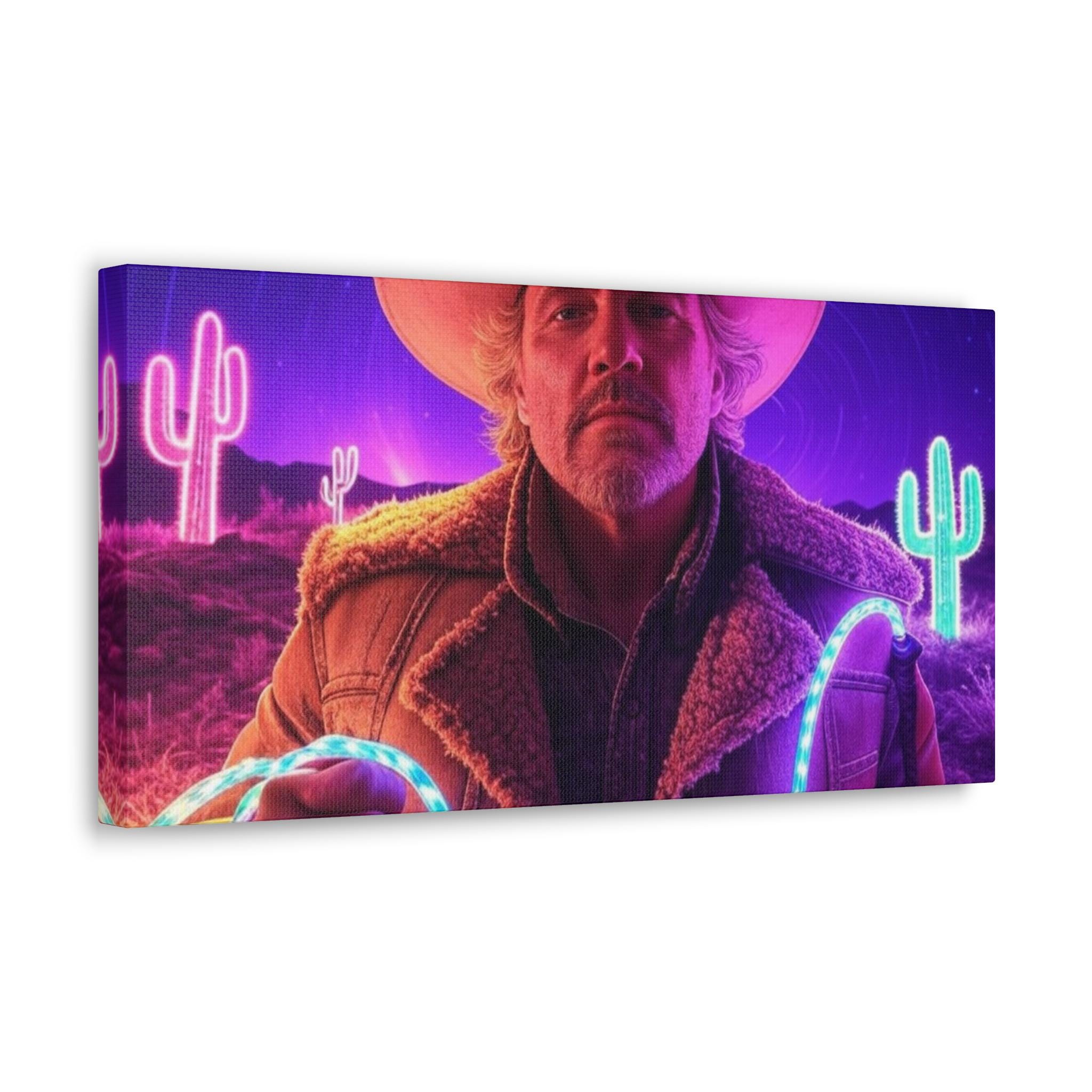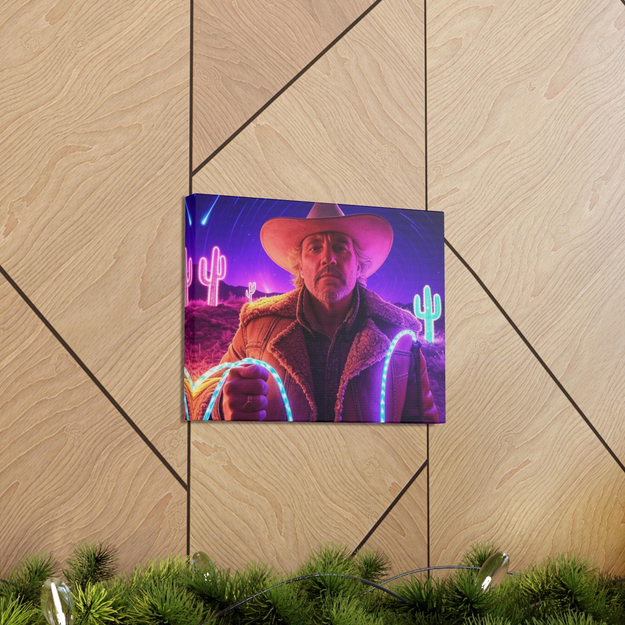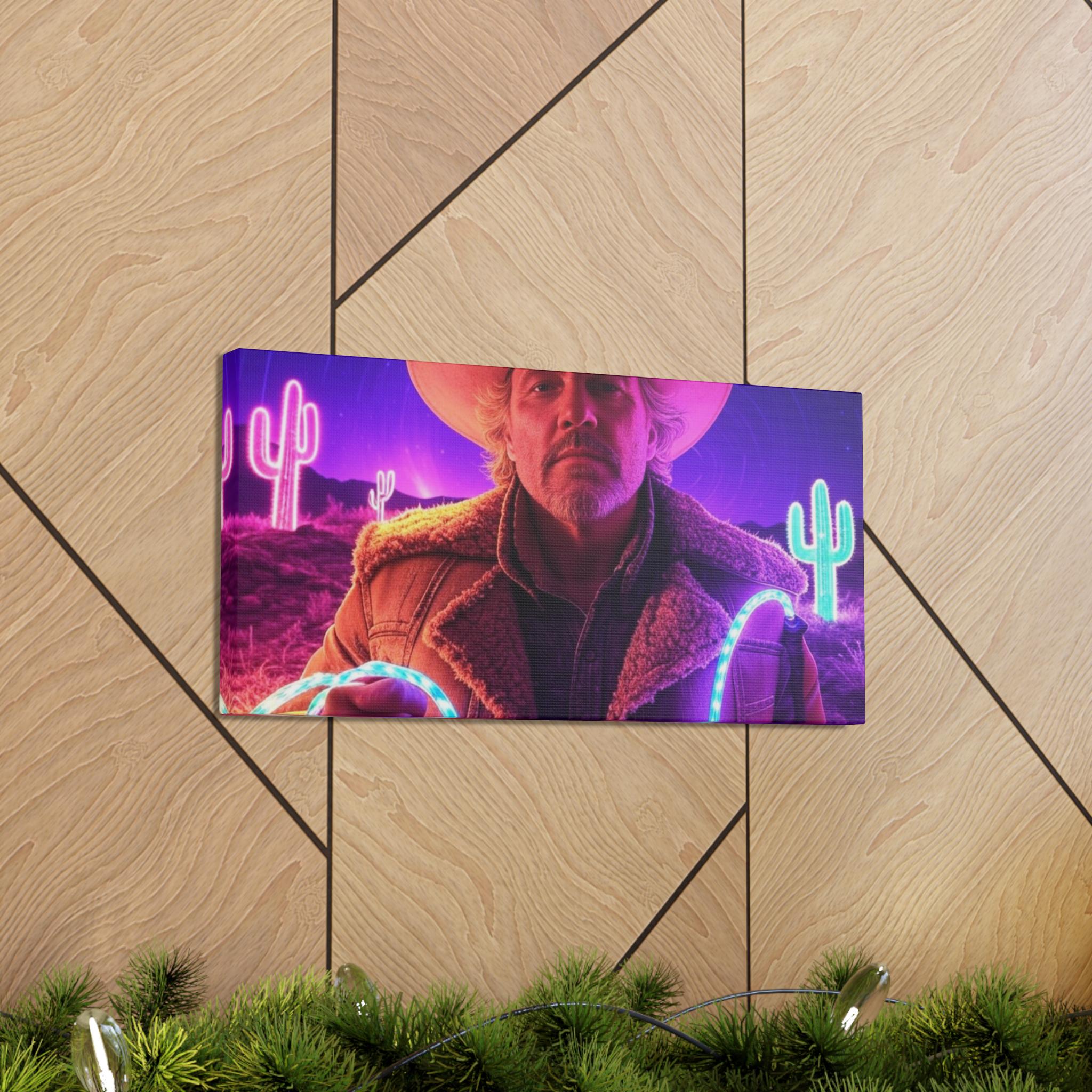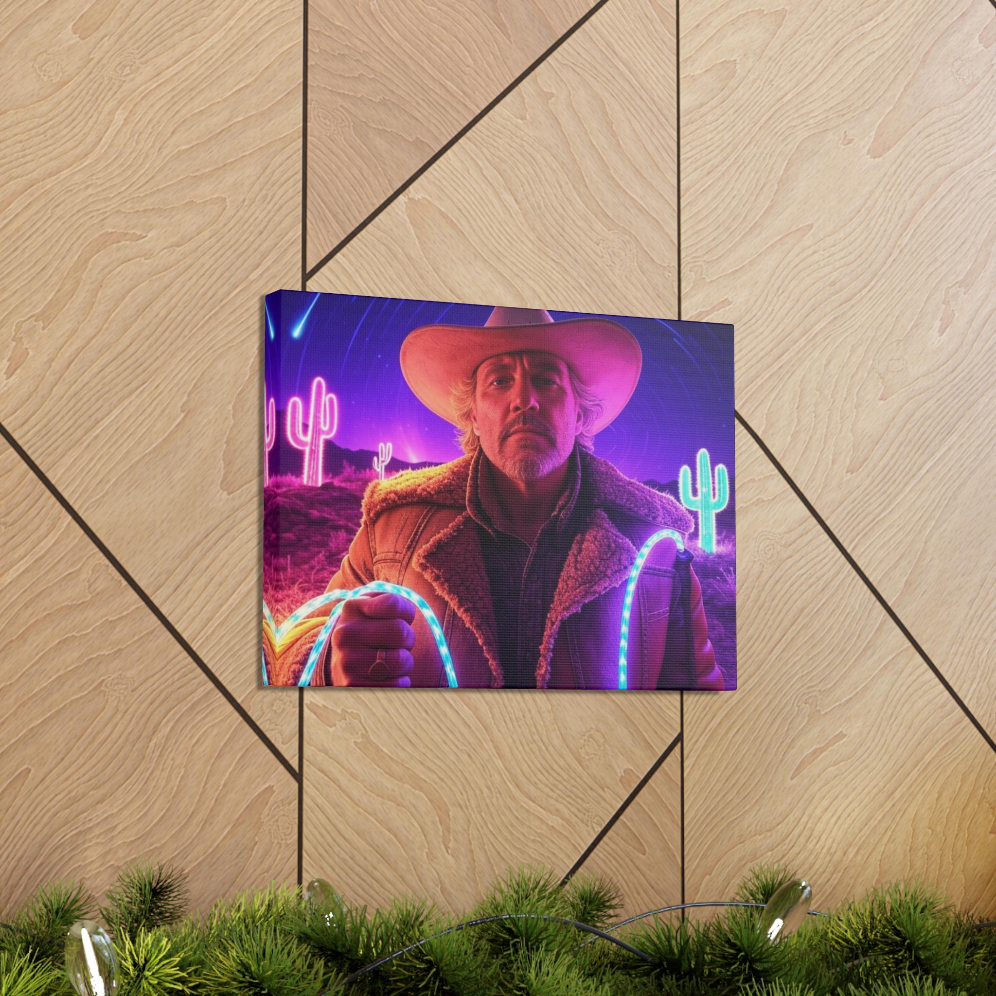 Neon Cowboy Canvas Print, Retro Futurism Cosmic Western Wall Art