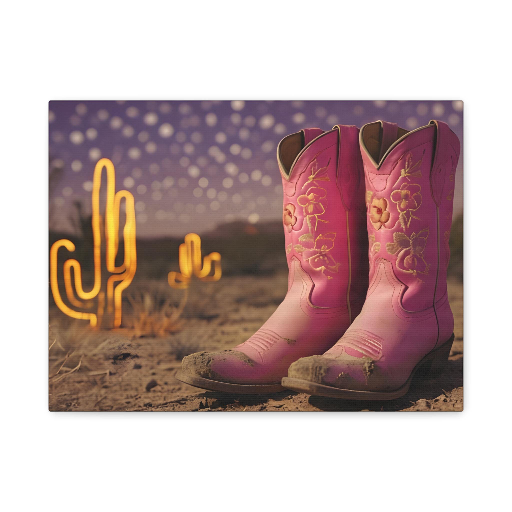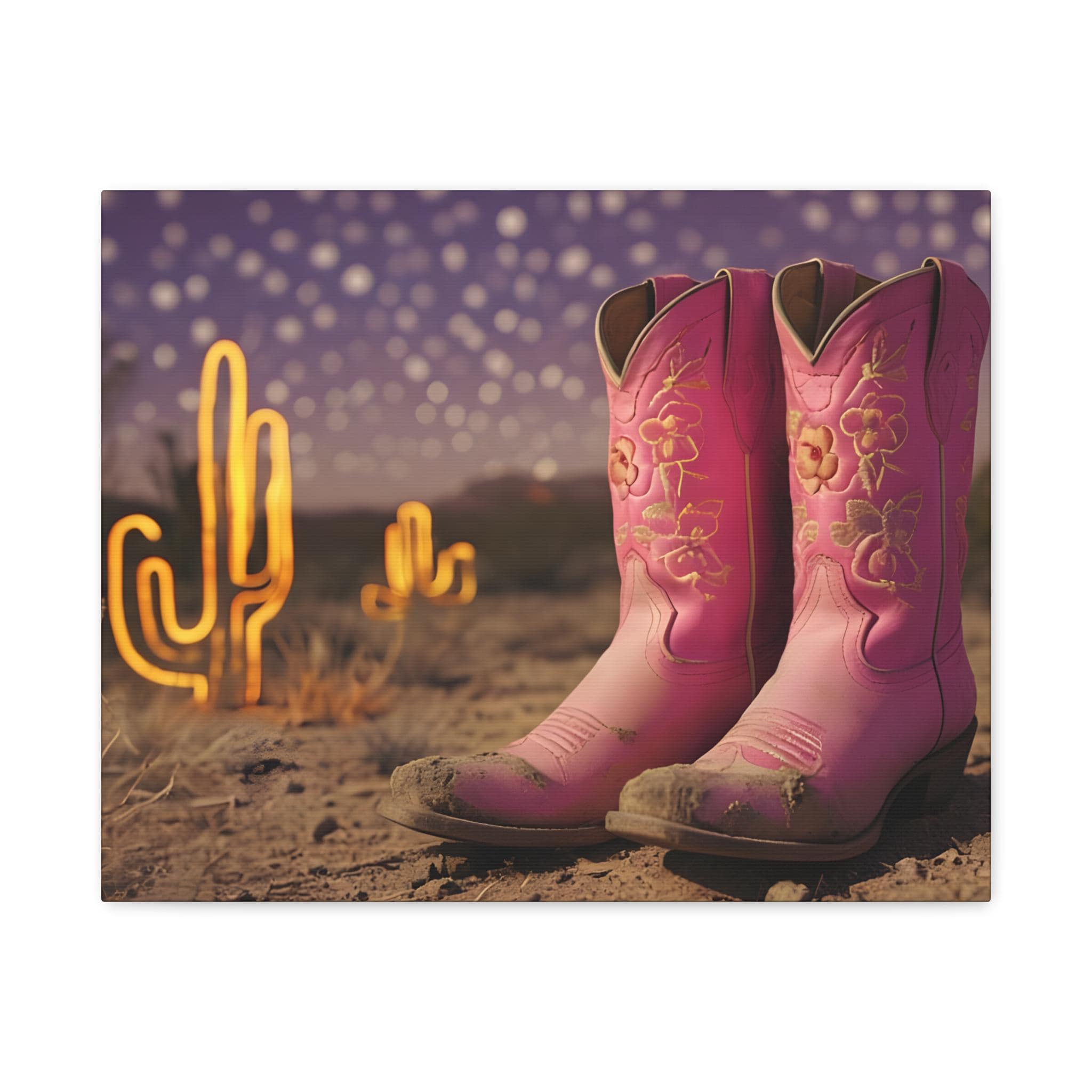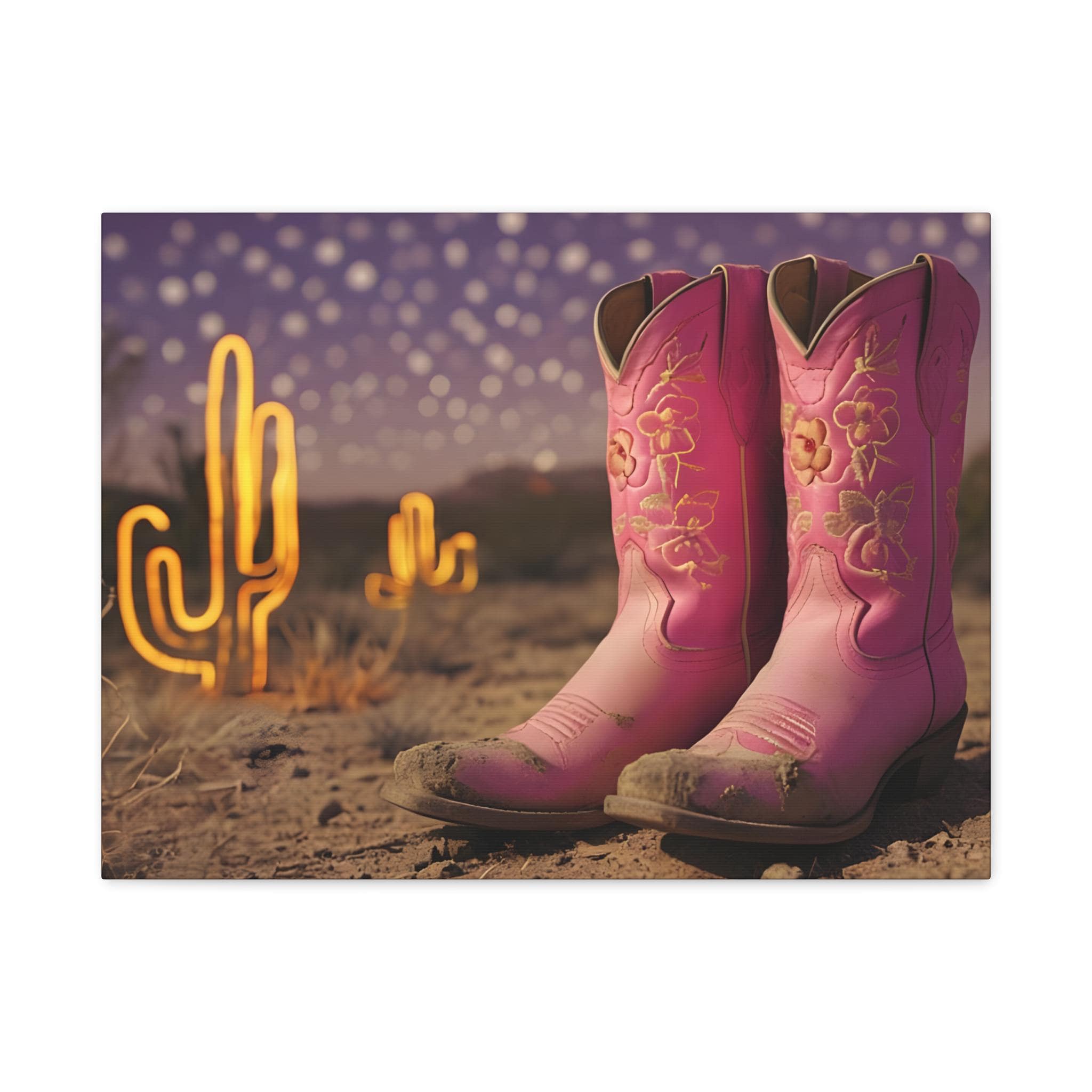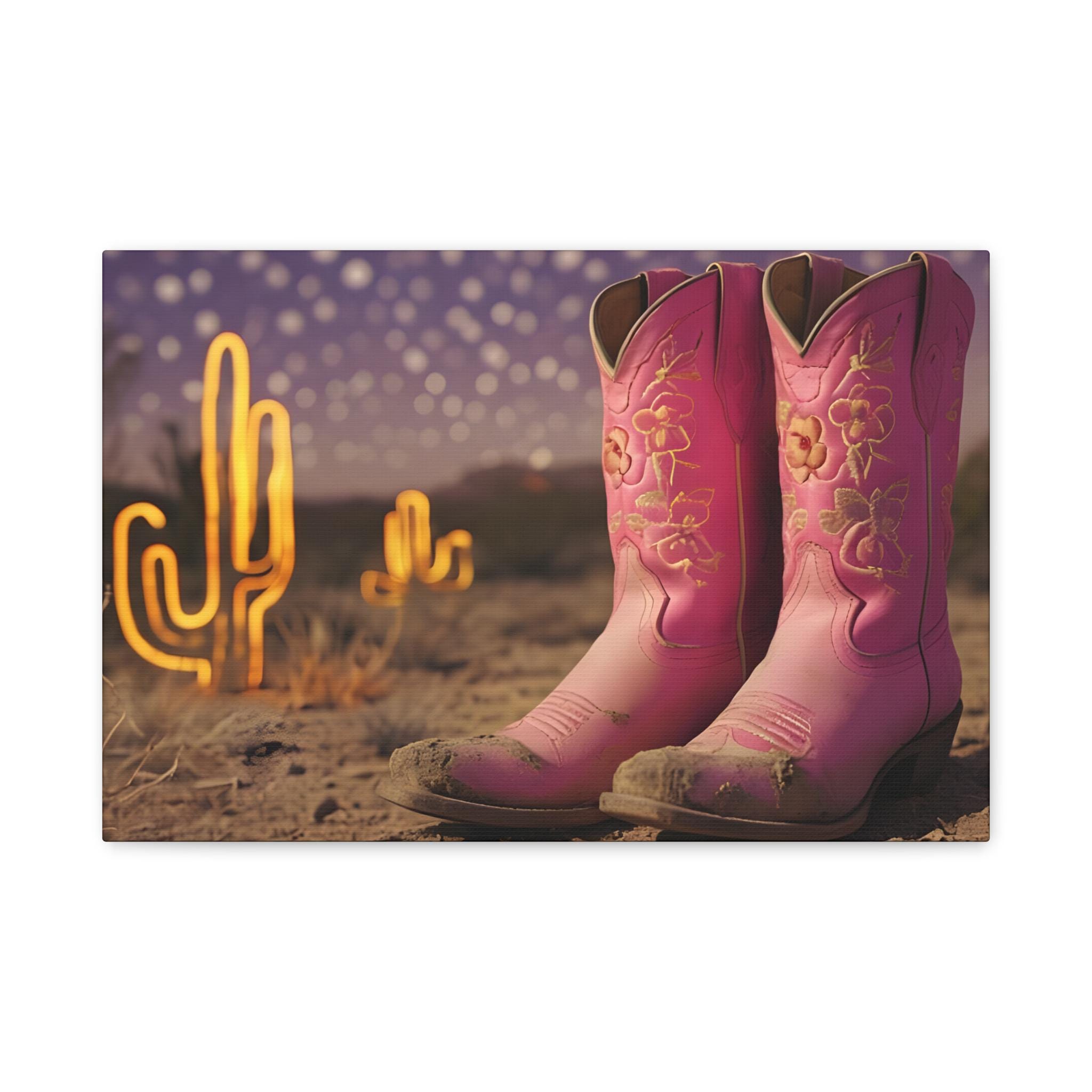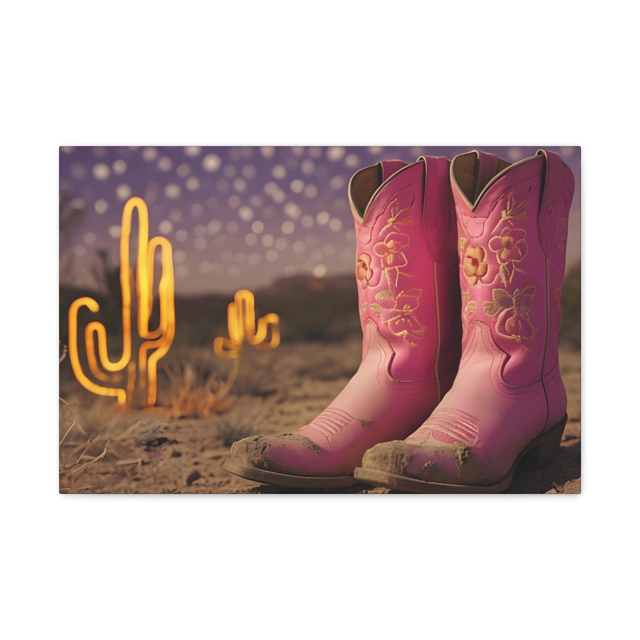 Desert Decor Canvas Wall Art Neon Cactus and Cowboy Boots Southwestern Decor, Boho Chic Room Accent, Western Cowgirl Gift, Matte Finish