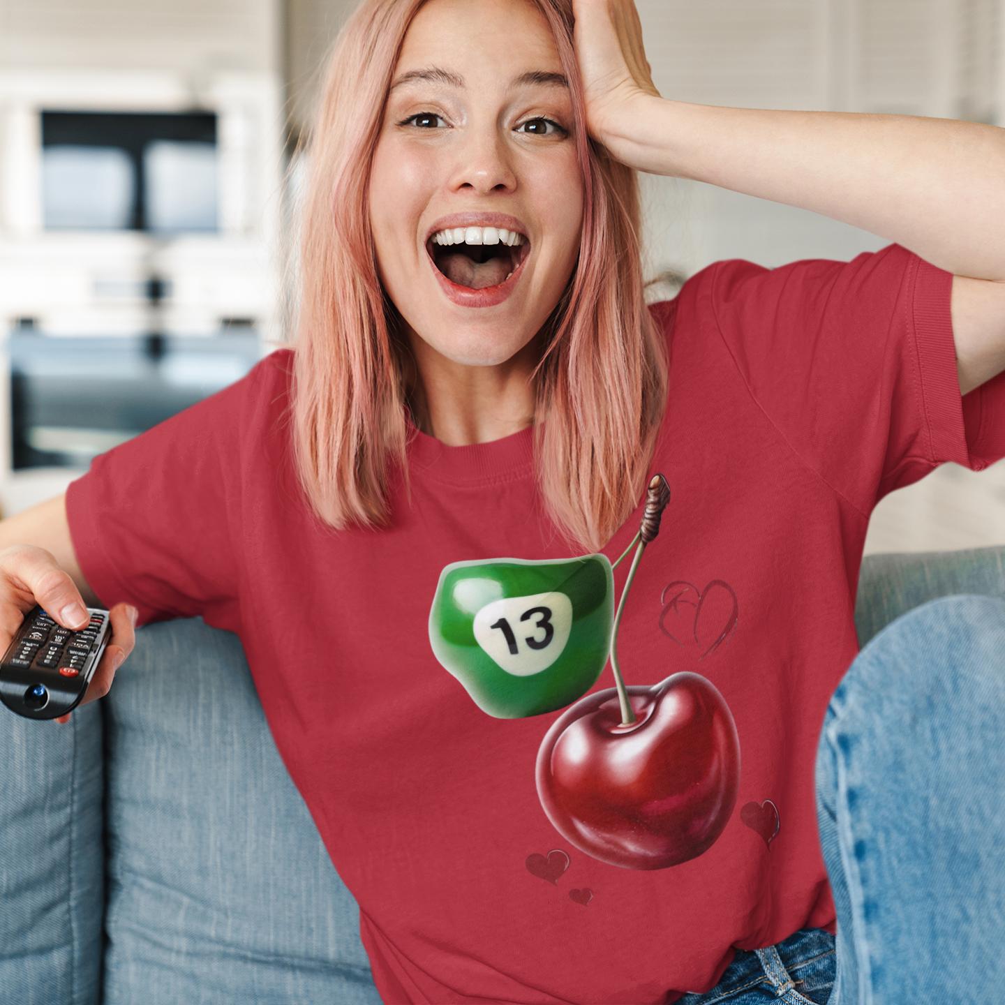 Show Your Love for Billiards with this Unique and Funny Cherry 13-Ball Pun T-Shirt