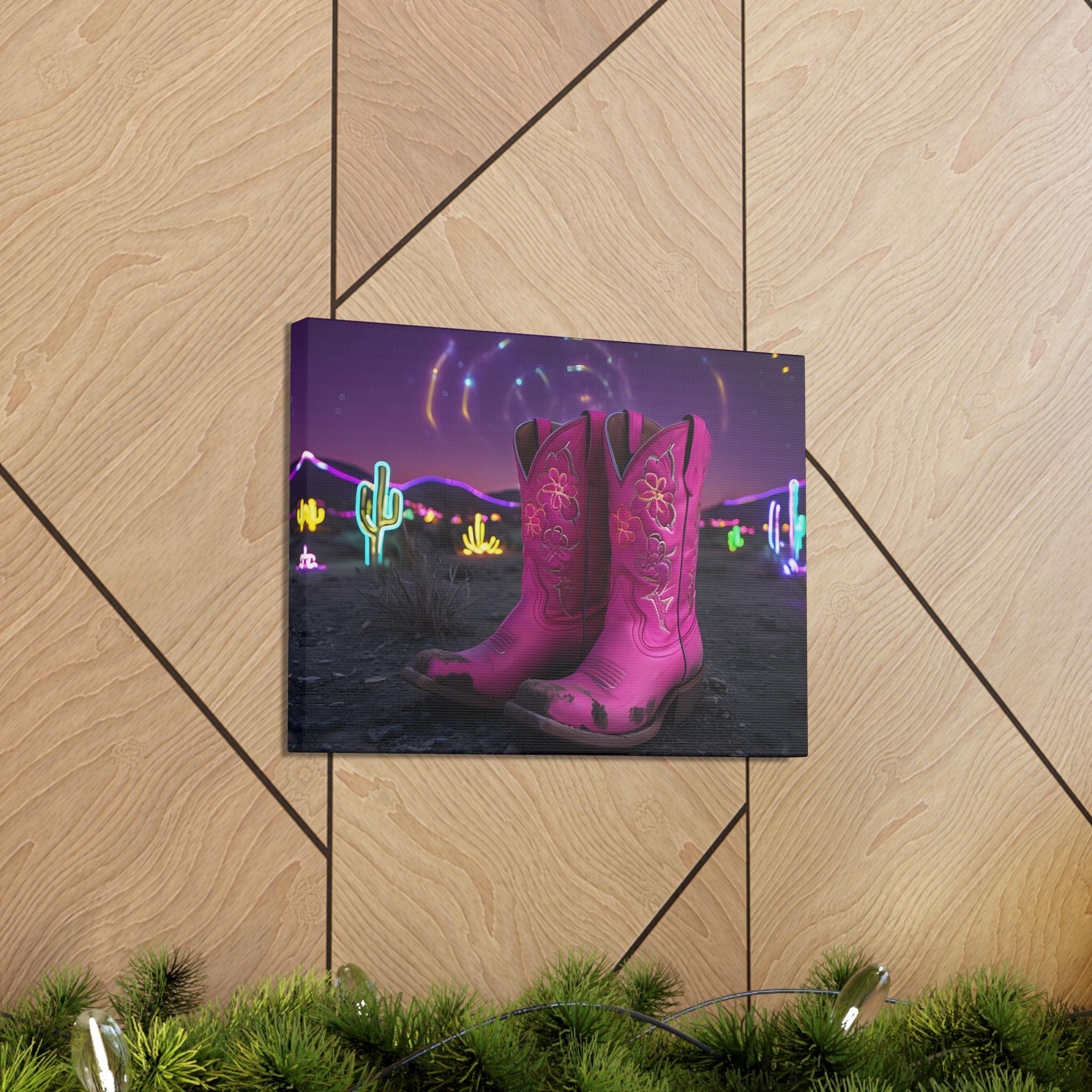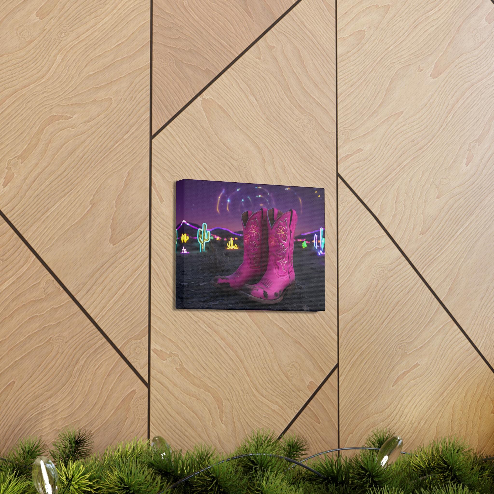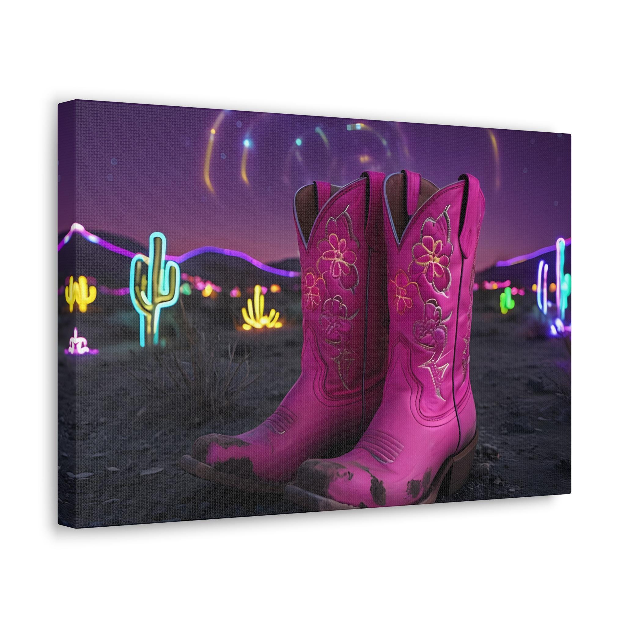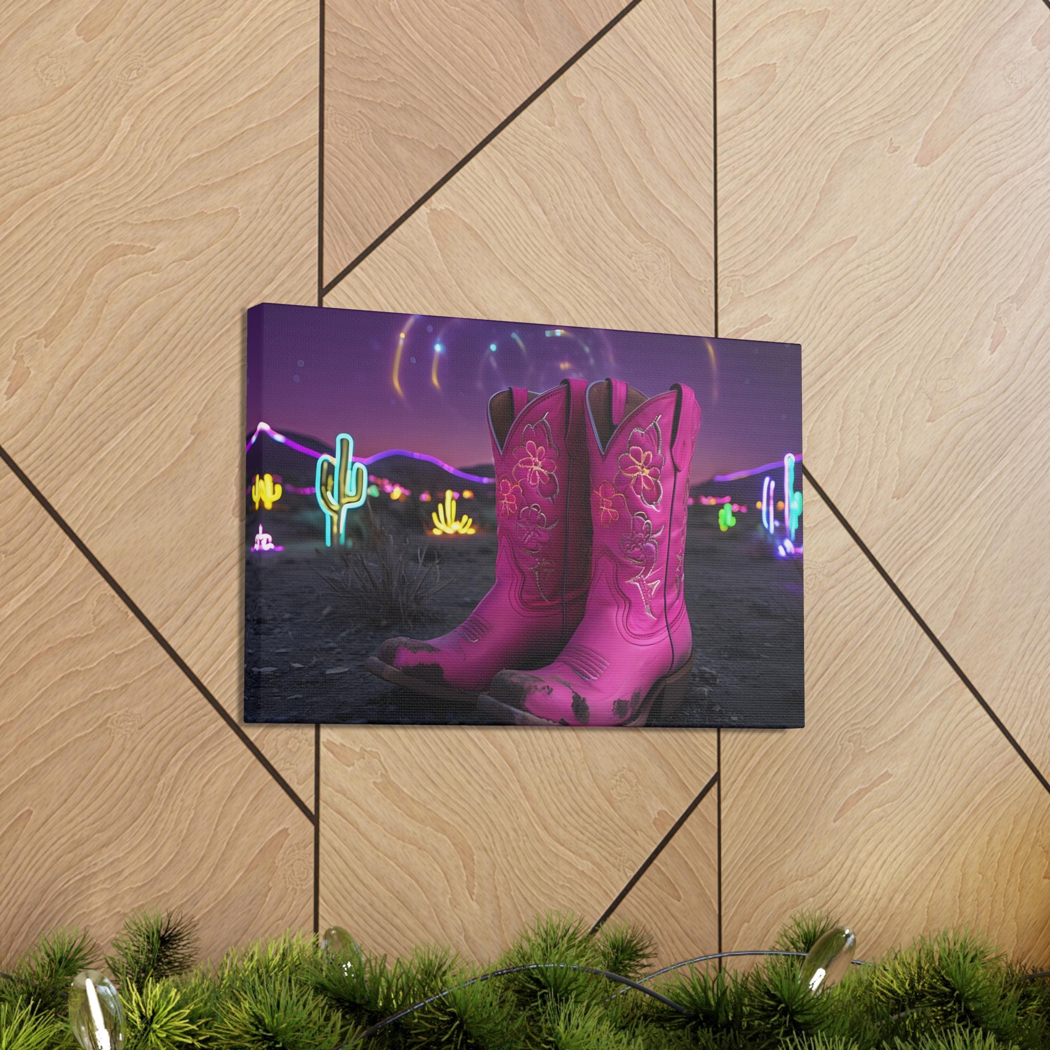 Cowgirl Boots and Neon Cactus Canvas Wraps, Western Cowgirl Decor, Southwestern Wall Art, Pink Desert Cactus Print, Boho Chic Gallery Wrap,
