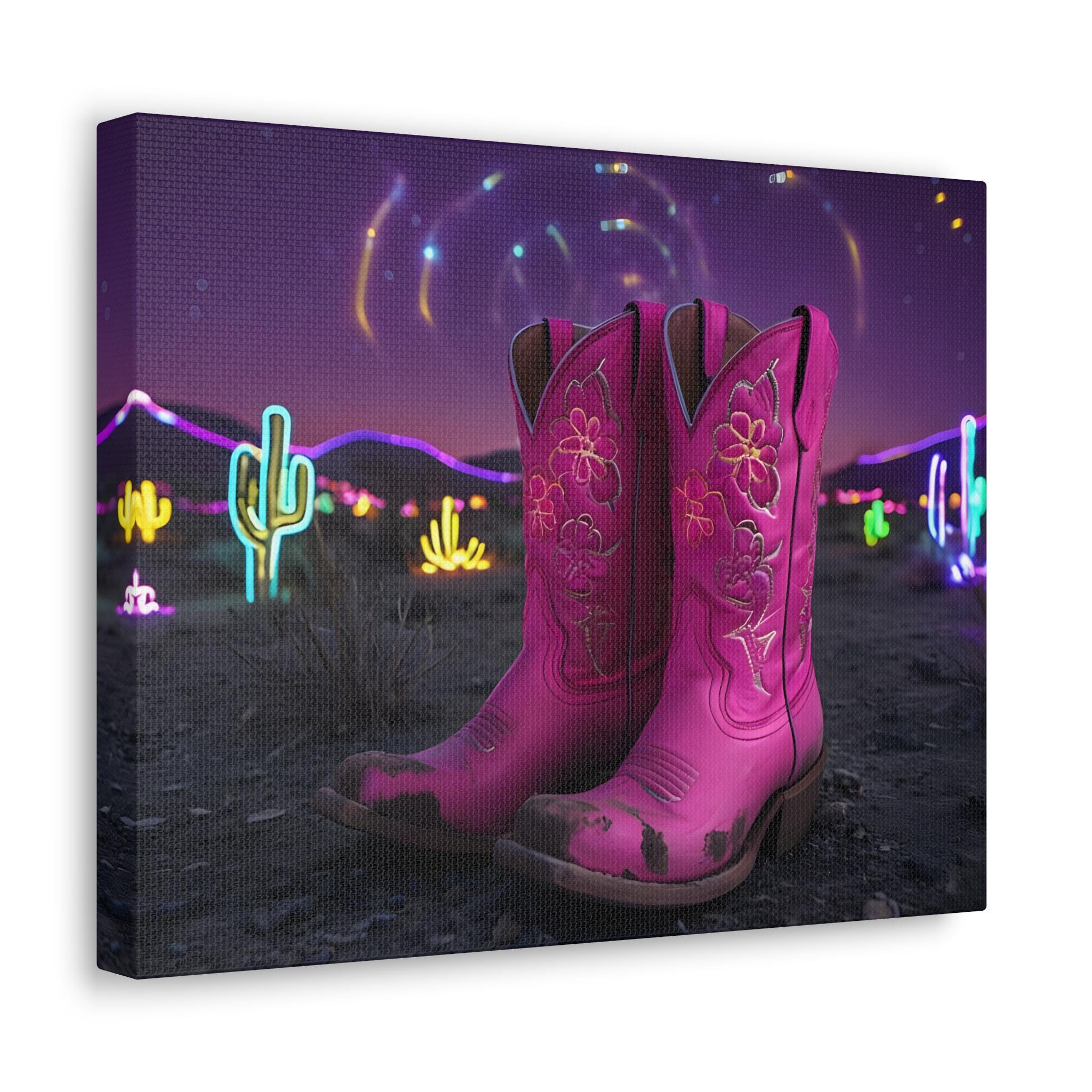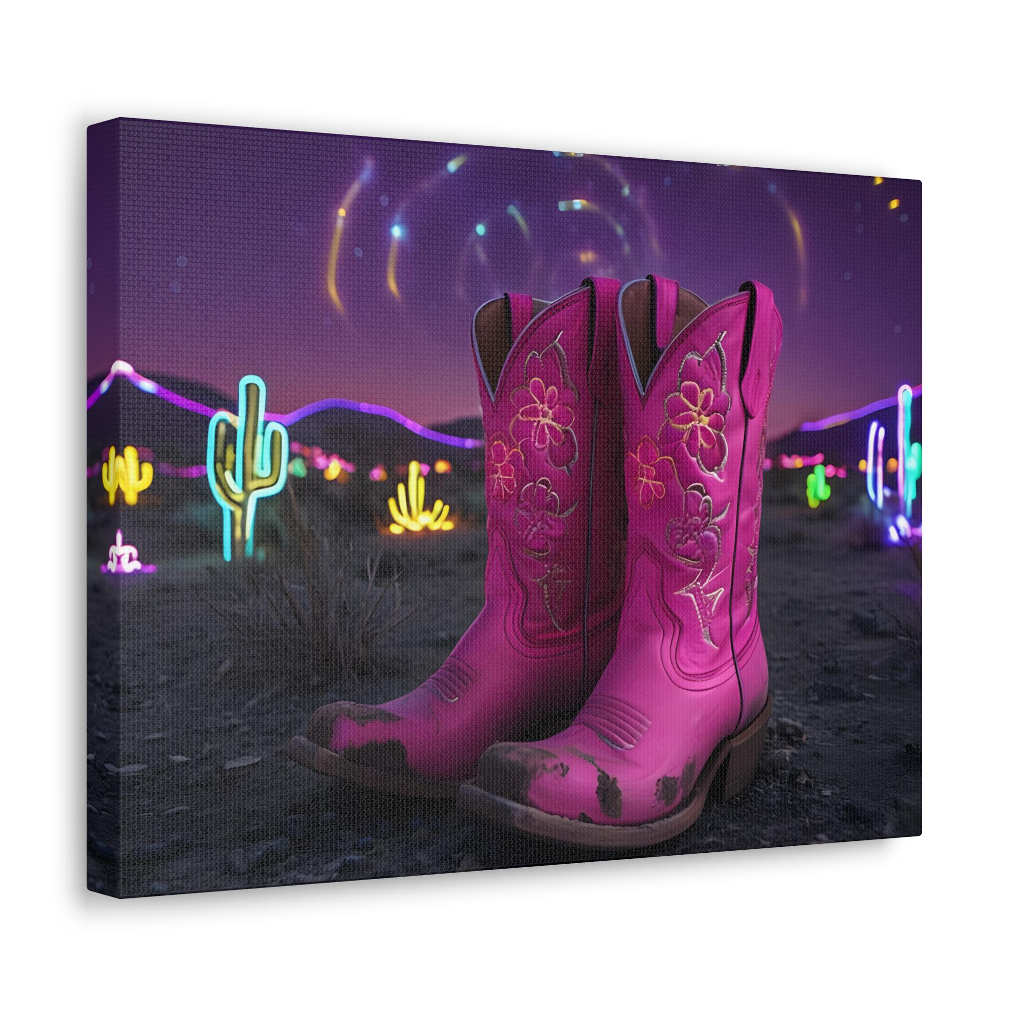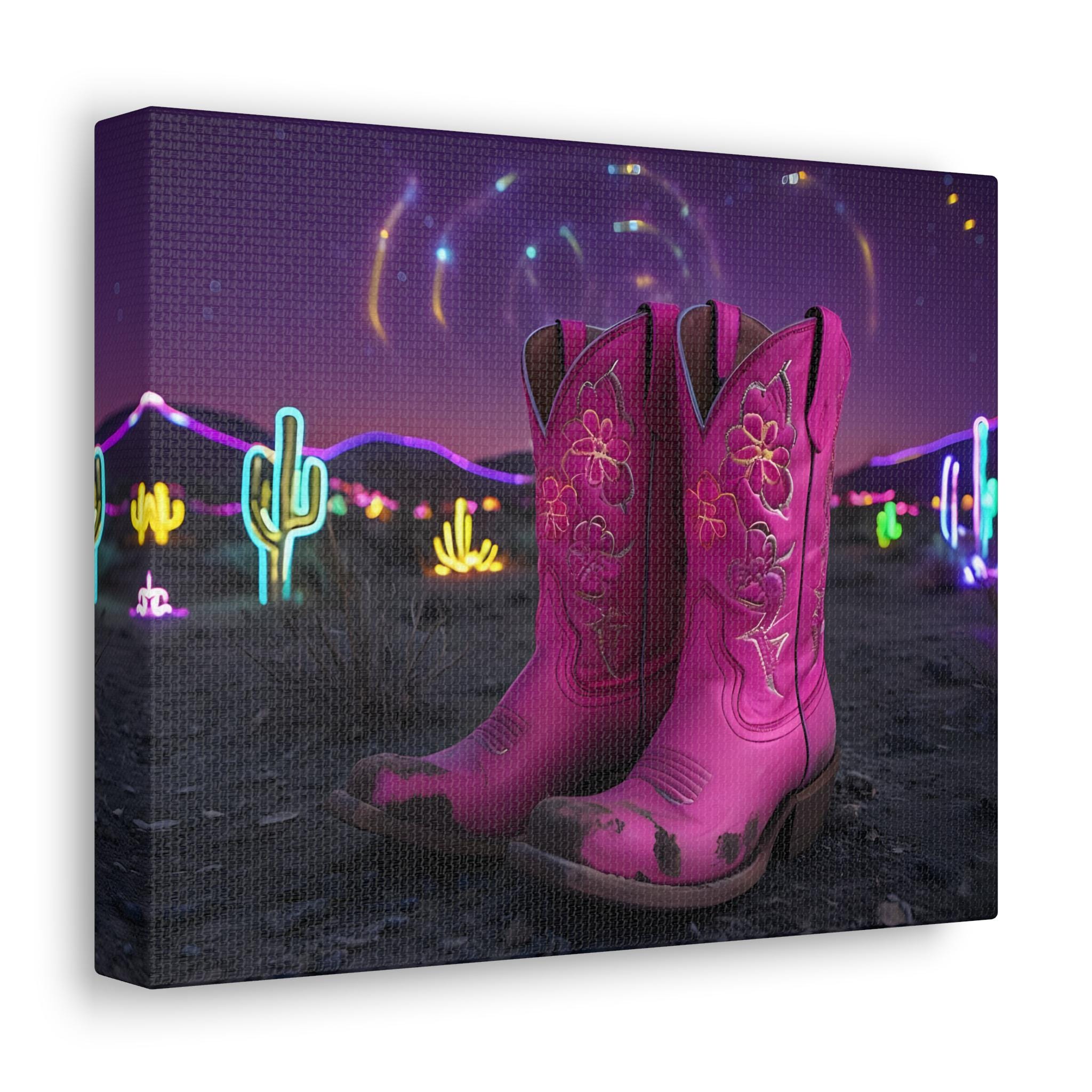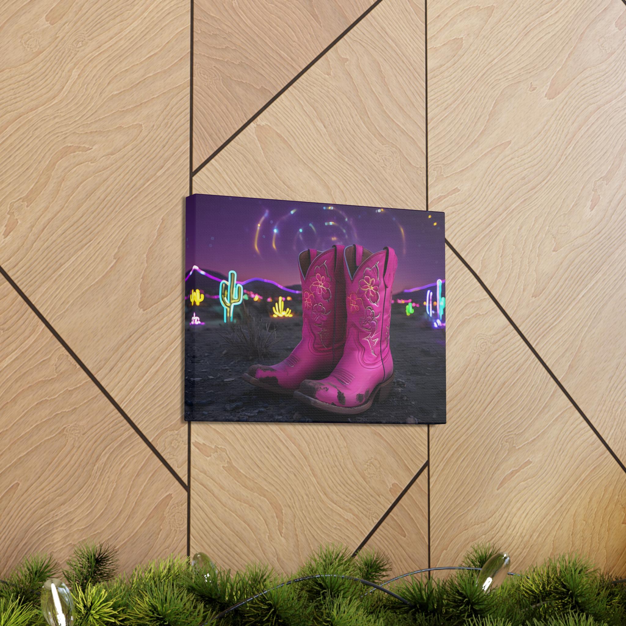 Cowgirl Boots and Neon Cactus Canvas Wraps, Western Cowgirl Decor, Southwestern Wall Art, Pink Desert Cactus Print, Boho Chic Gallery Wrap,