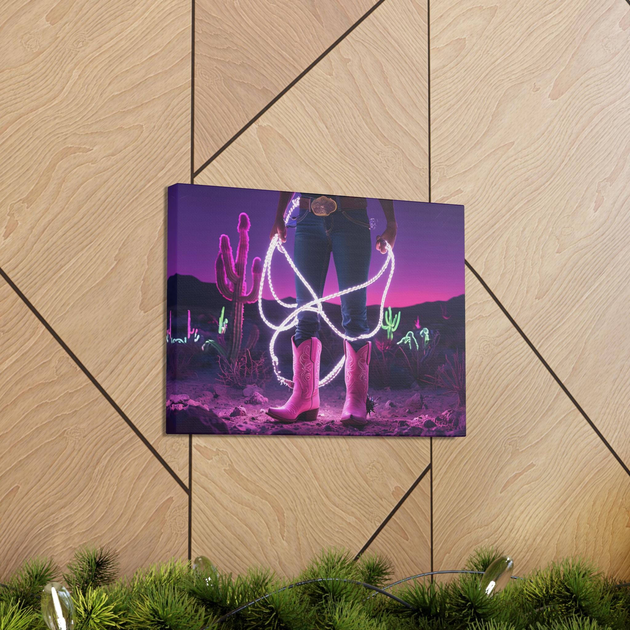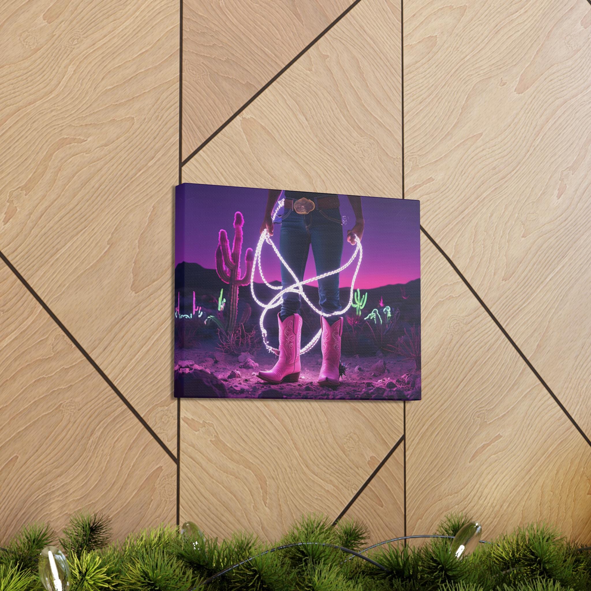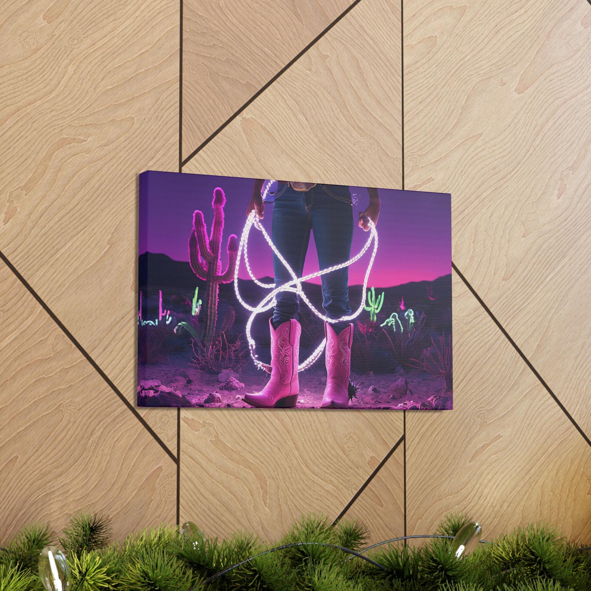 Canvas Gallery Wraps - Pink Cowboy Boots in the Neon Cactus Desert Wall Art, Southwestern Home Decor, Western Style Gift, Desert Vibes