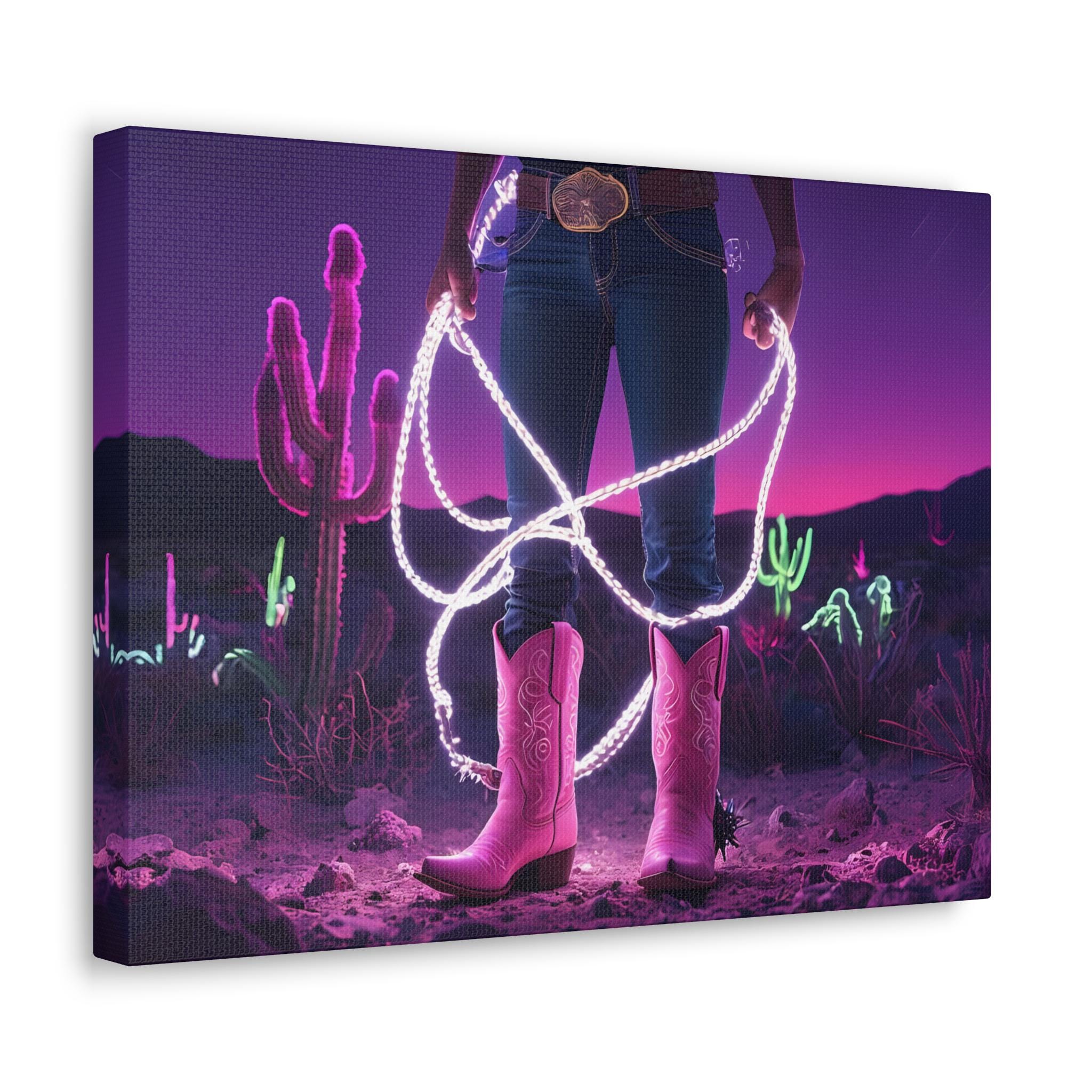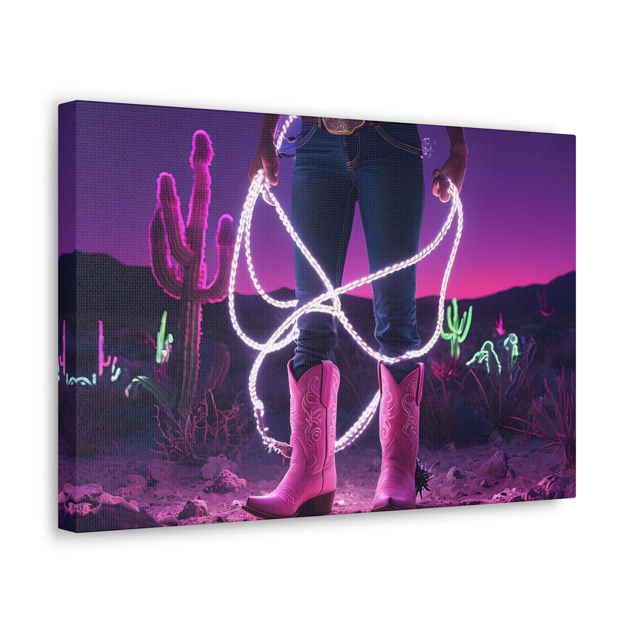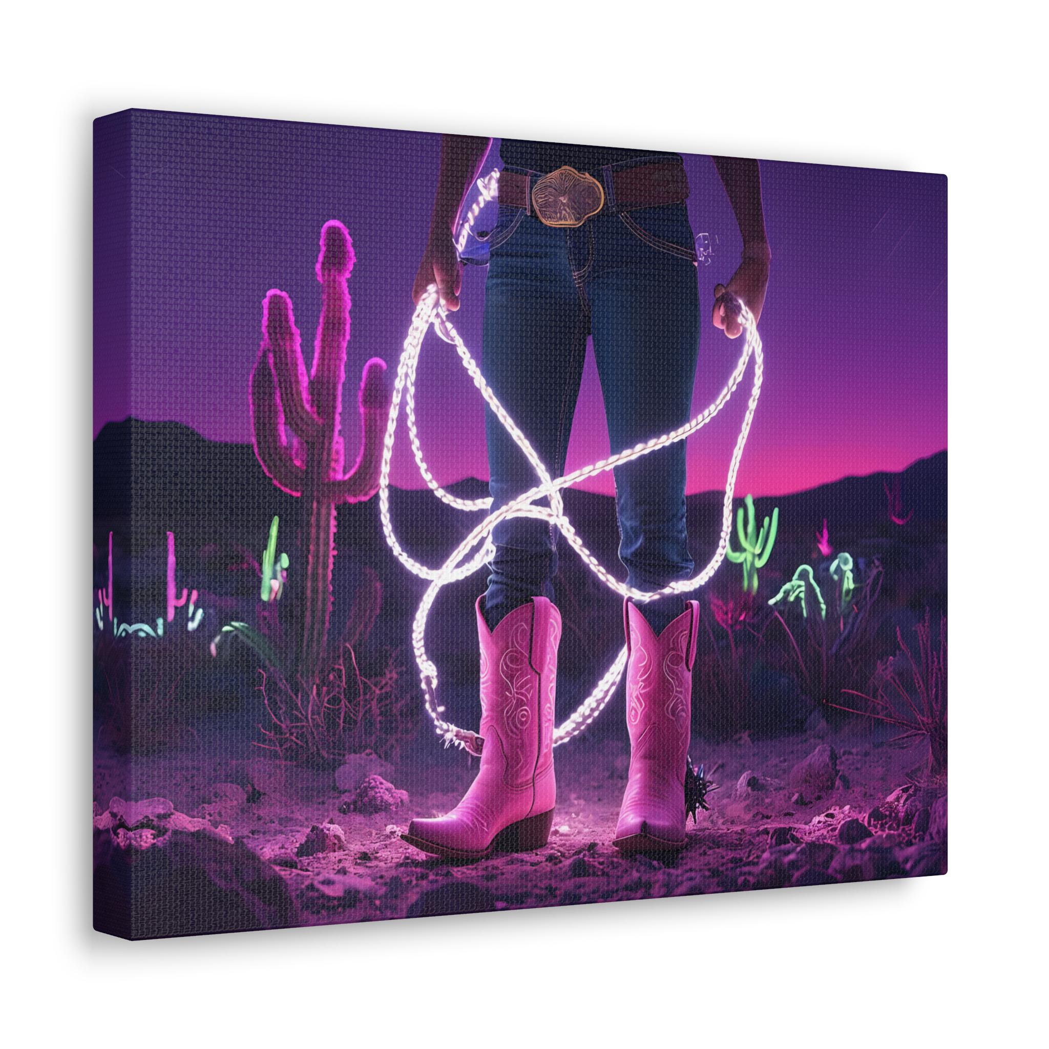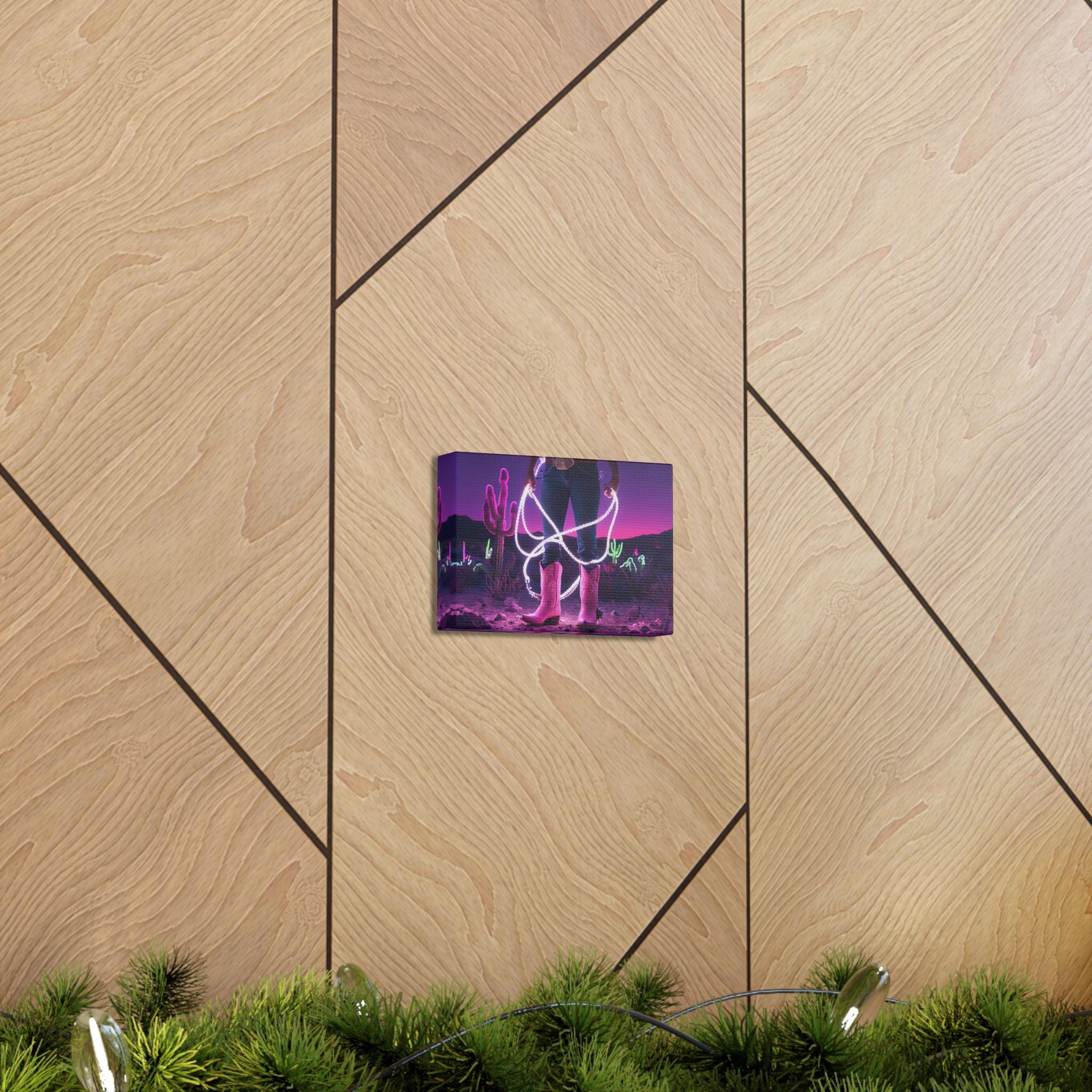 Canvas Gallery Wraps - Pink Cowboy Boots in the Neon Cactus Desert Wall Art, Southwestern Home Decor, Western Style Gift, Desert Vibes