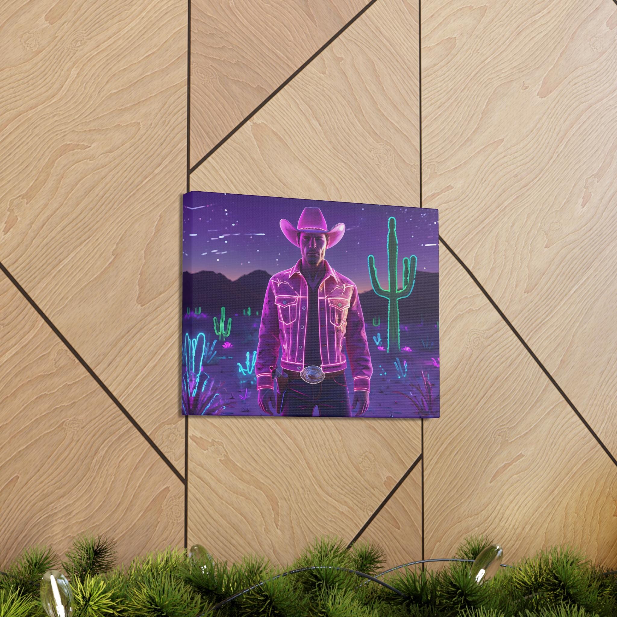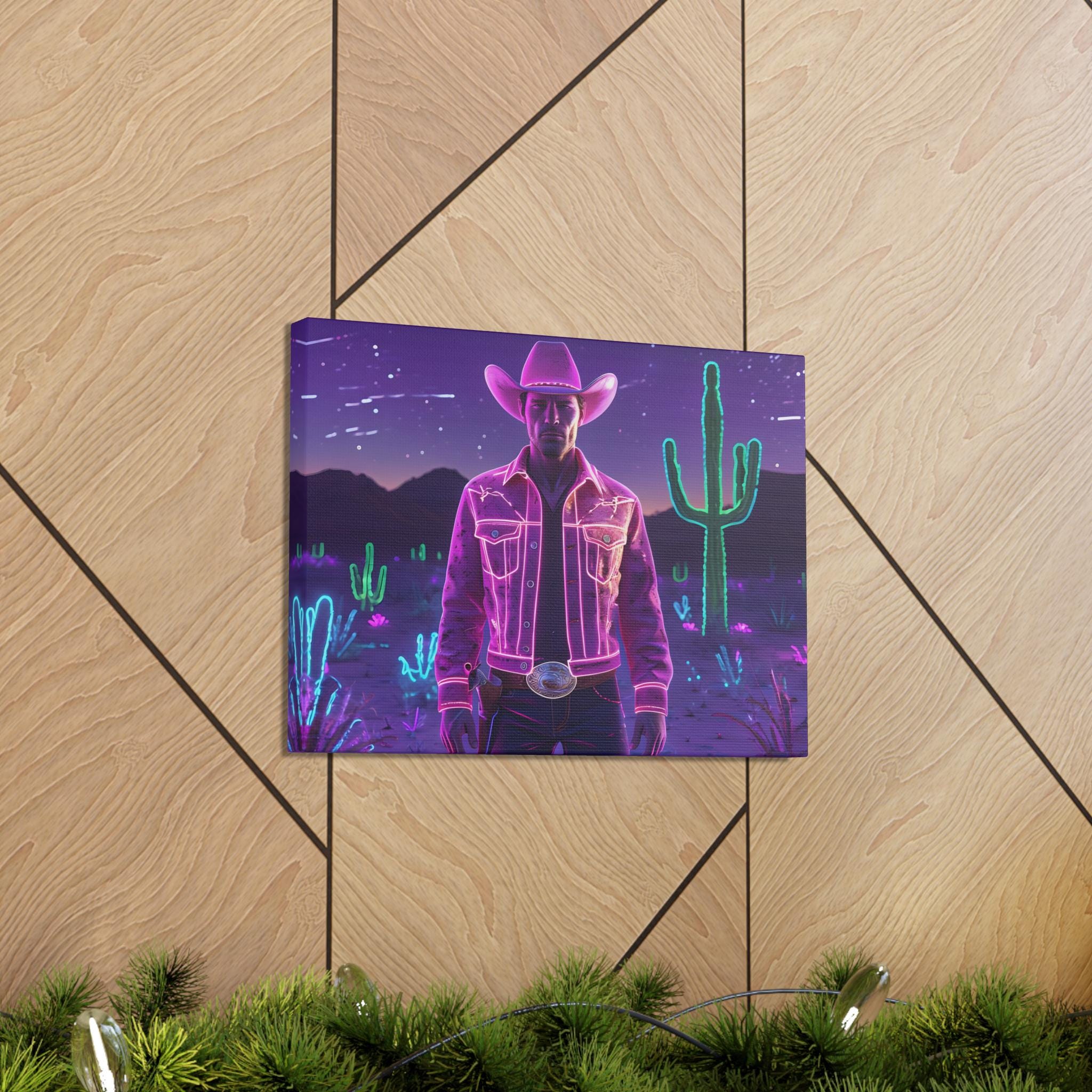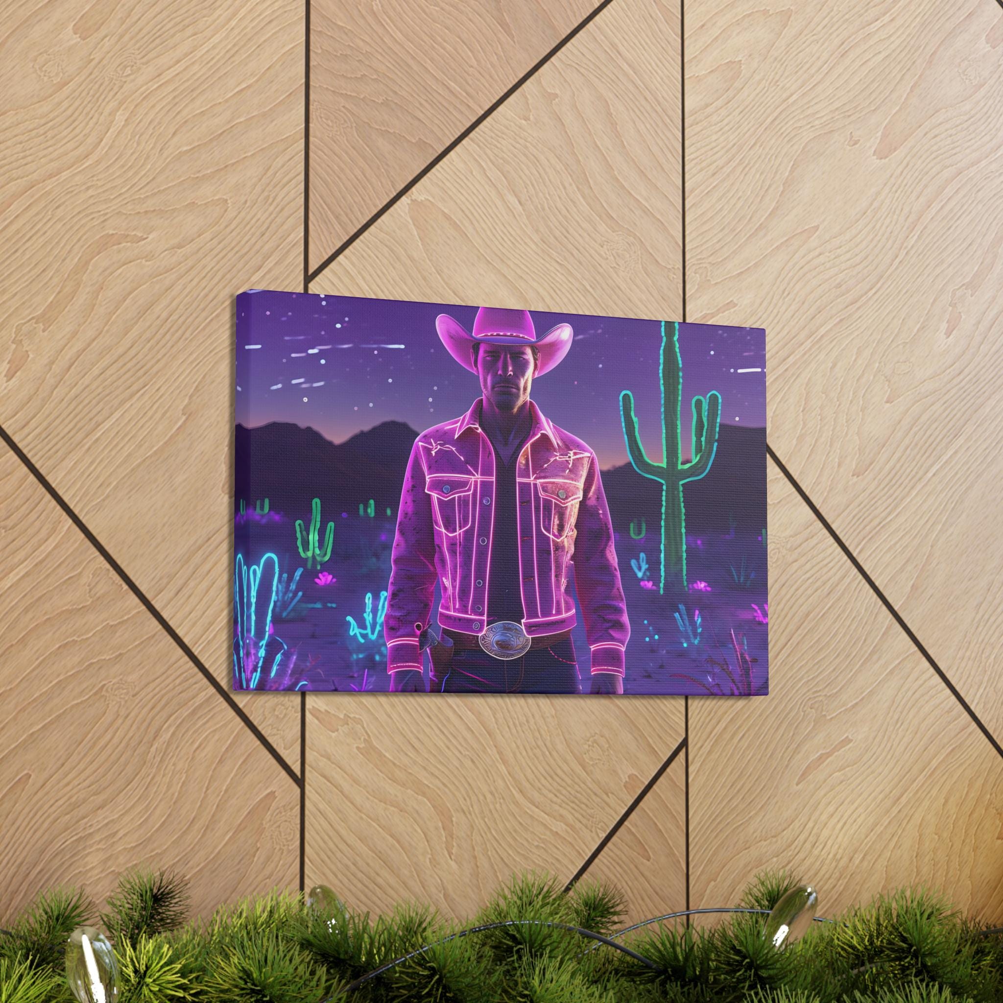 Neon Cowboy Canvas Wall Art, Western Neon Decor, Cowboy Wall Canvas, Vibrant Indoor Home Decor, Canvas Gallery Wraps, Modern Western Artwork
