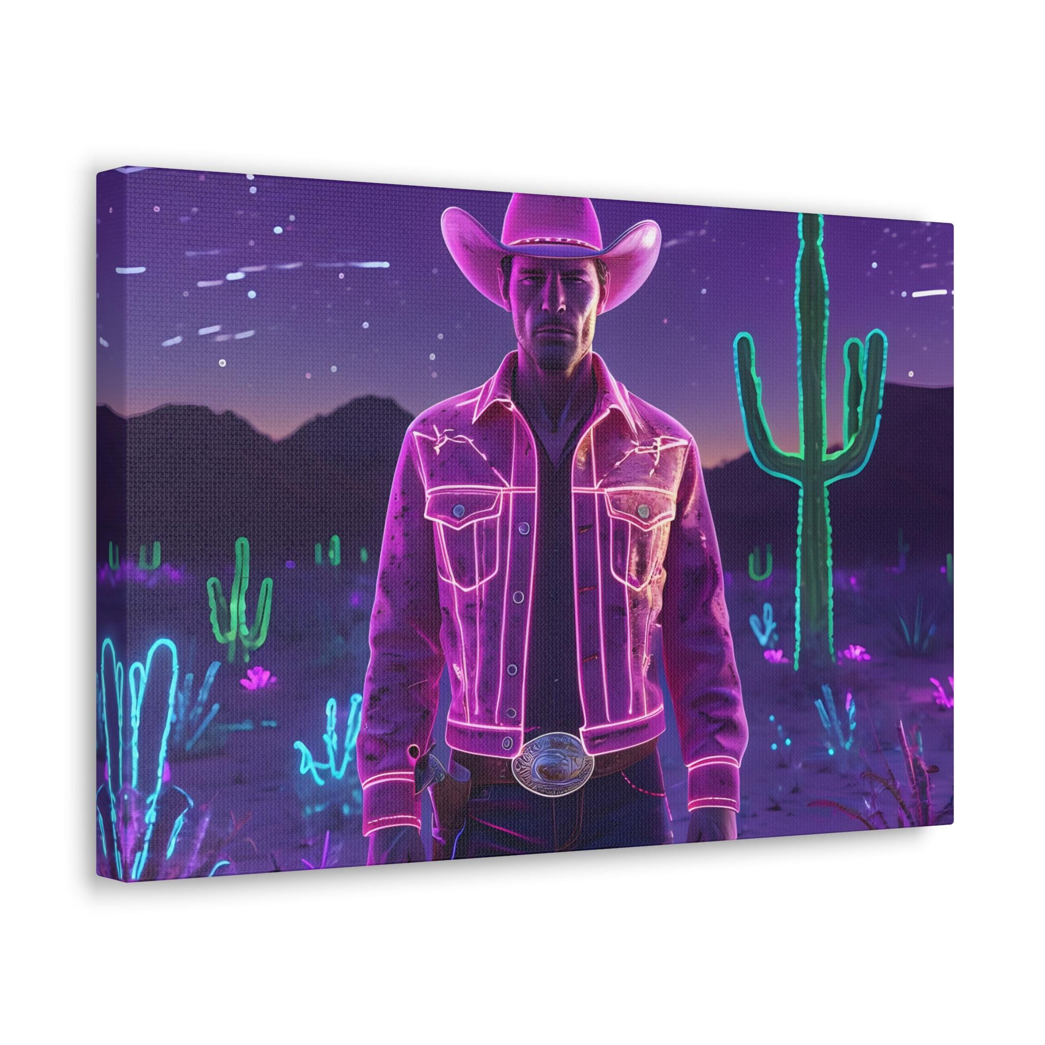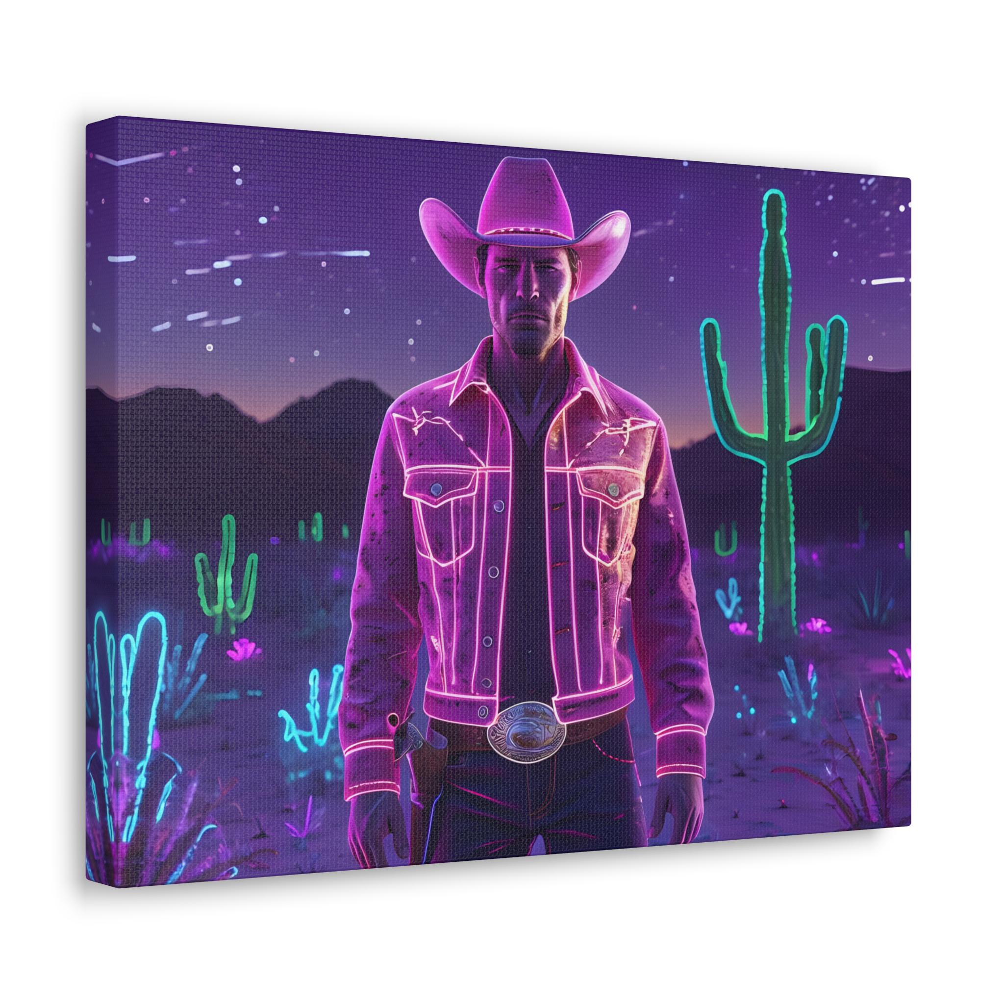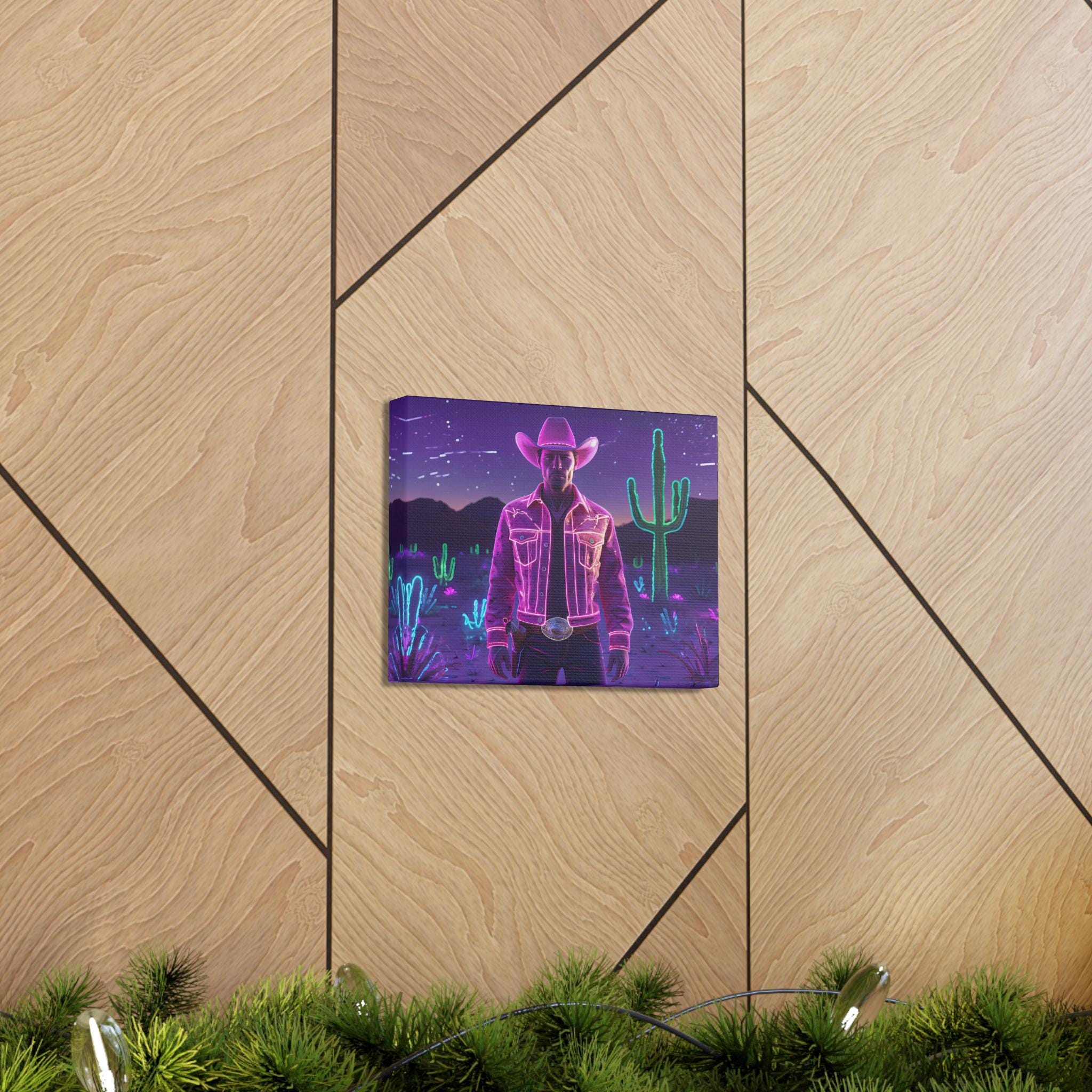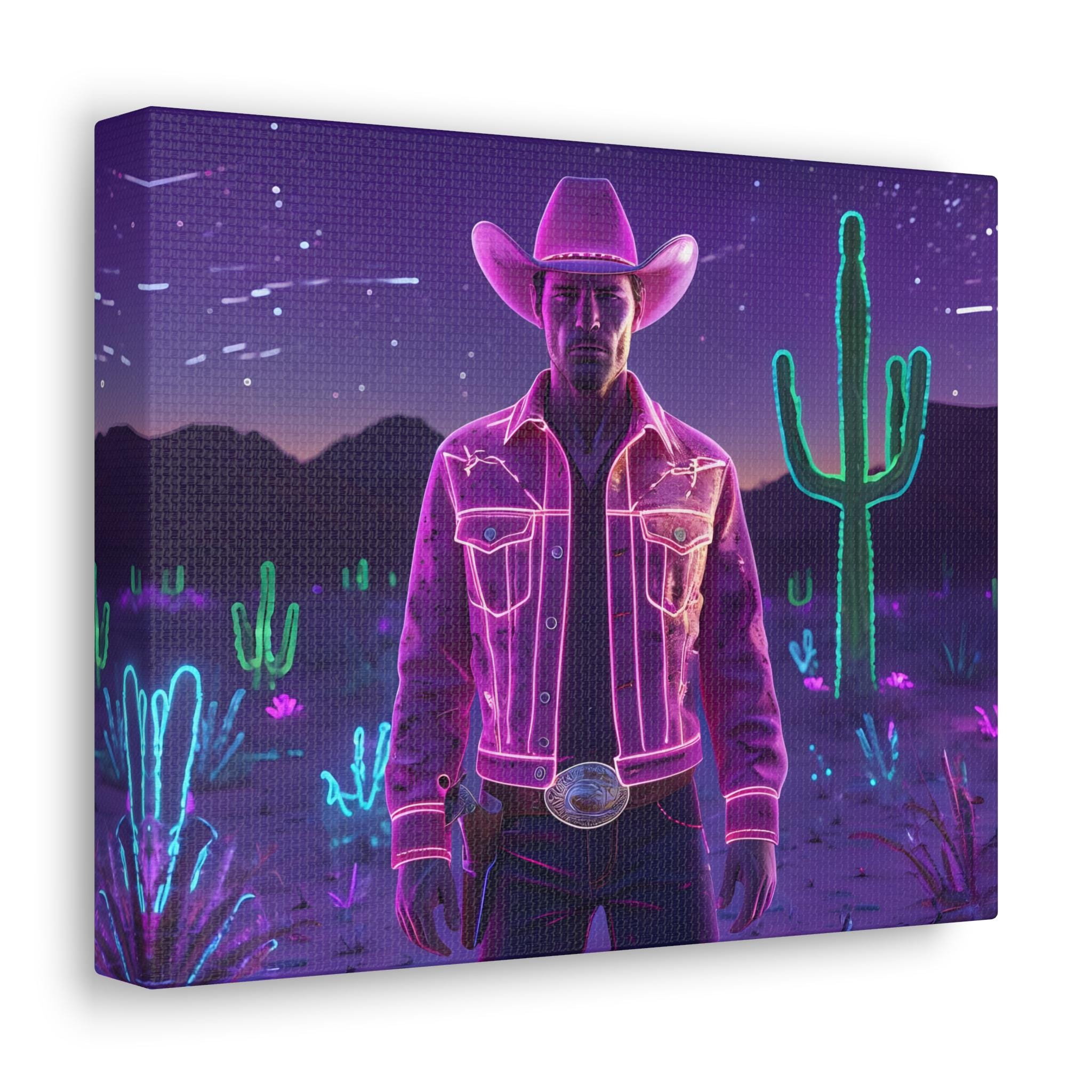Neon Cowboy Canvas Wall Art, Western Neon Decor, Cowboy Wall Canvas, Vibrant Indoor Home Decor, Canvas Gallery Wraps, Modern Western Artwork