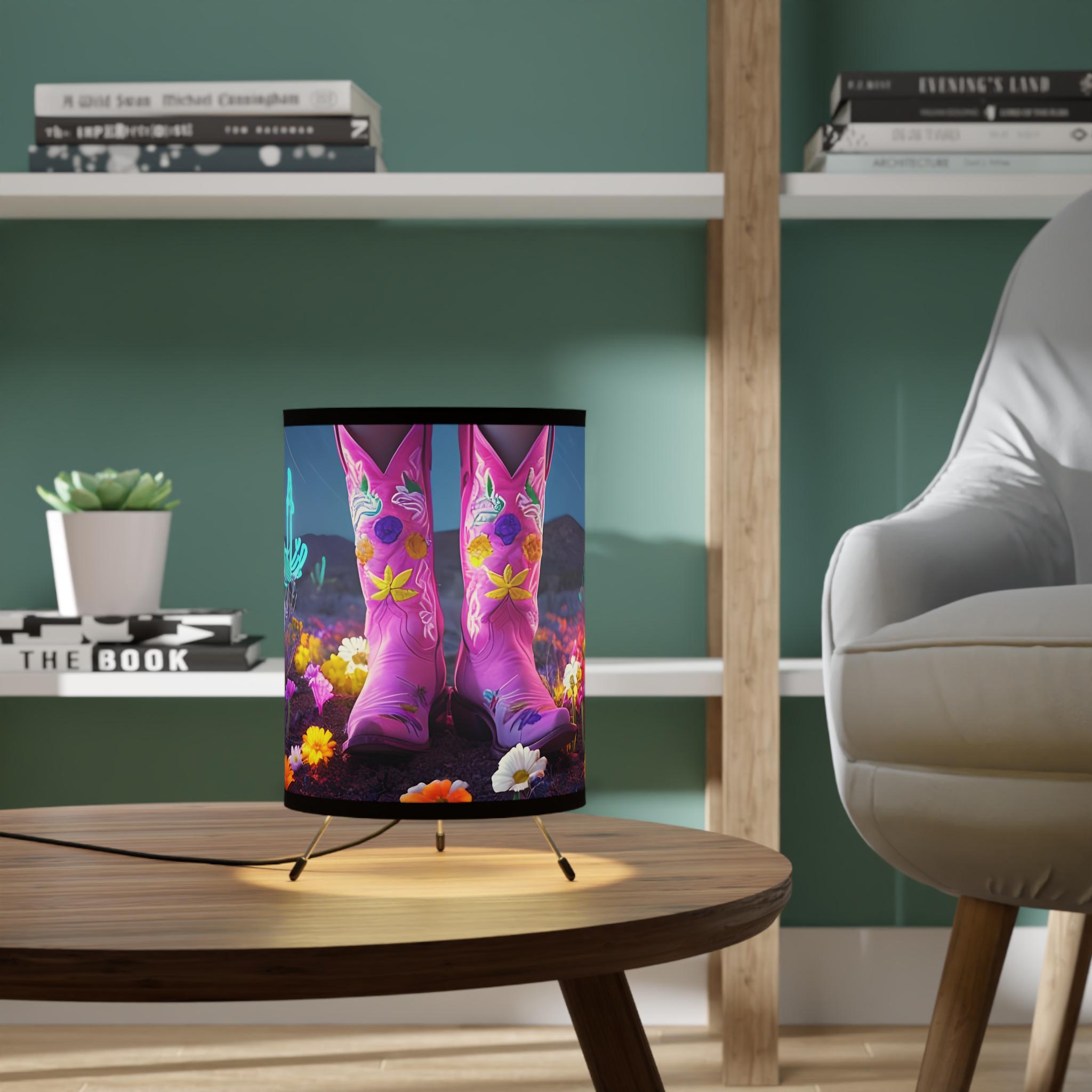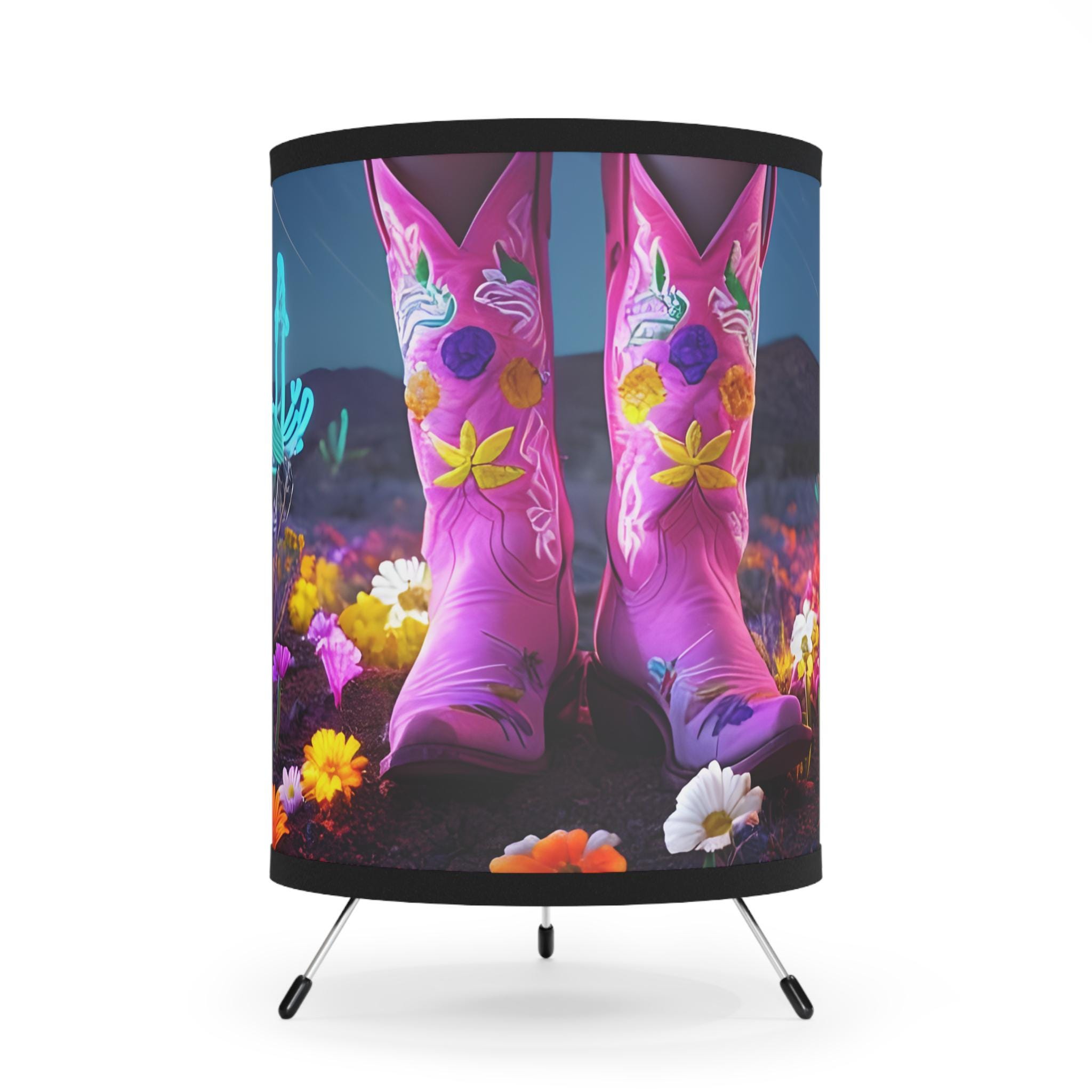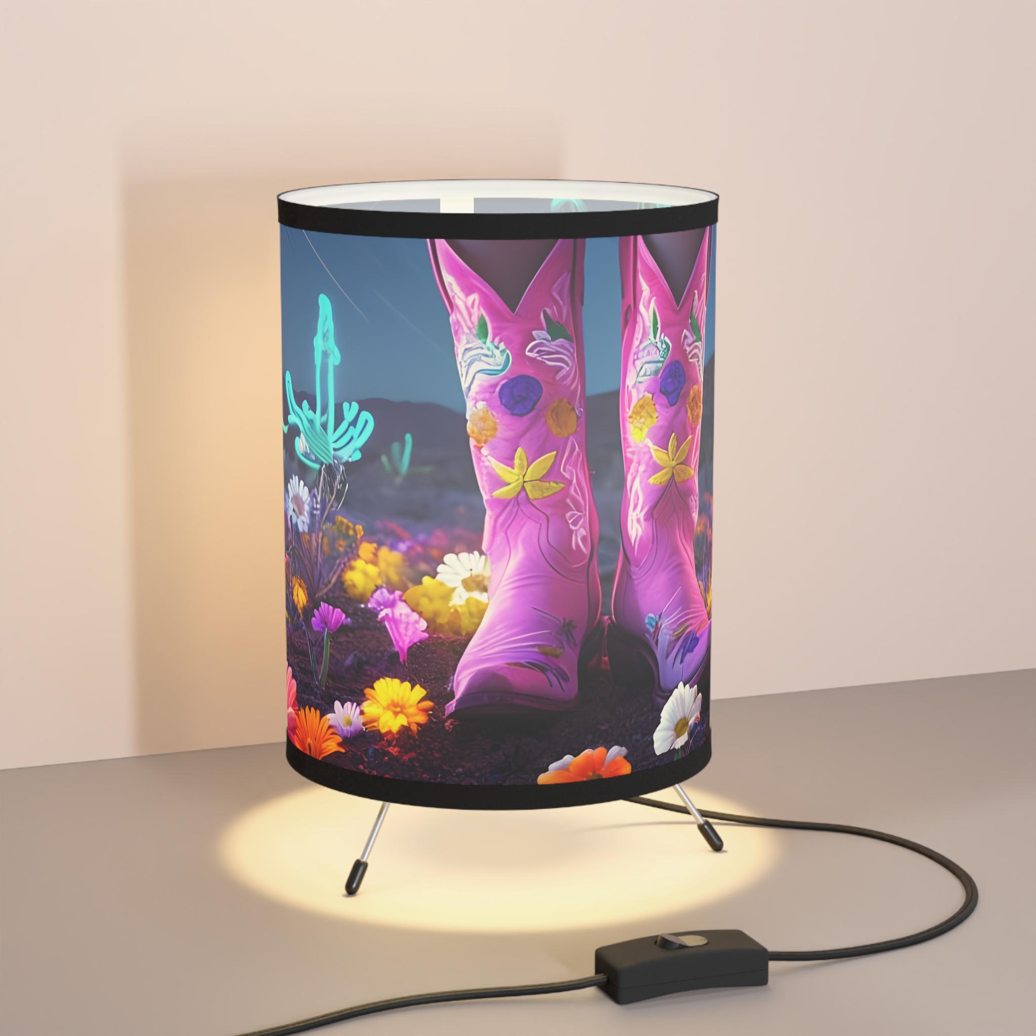 Pink Neon Flowered Cowboy boots Tripod Lamp with High-Res Printed Shade, US\CA plug