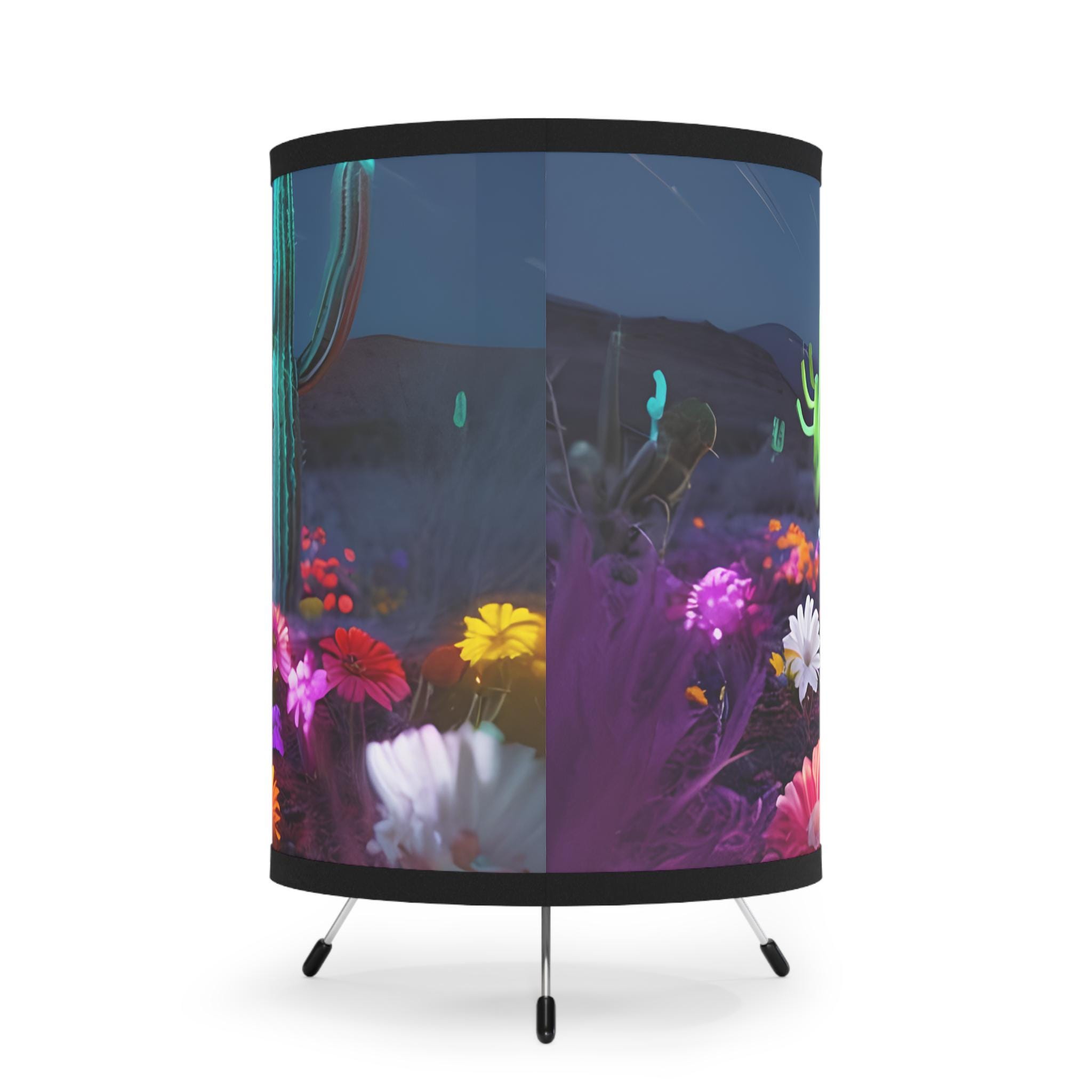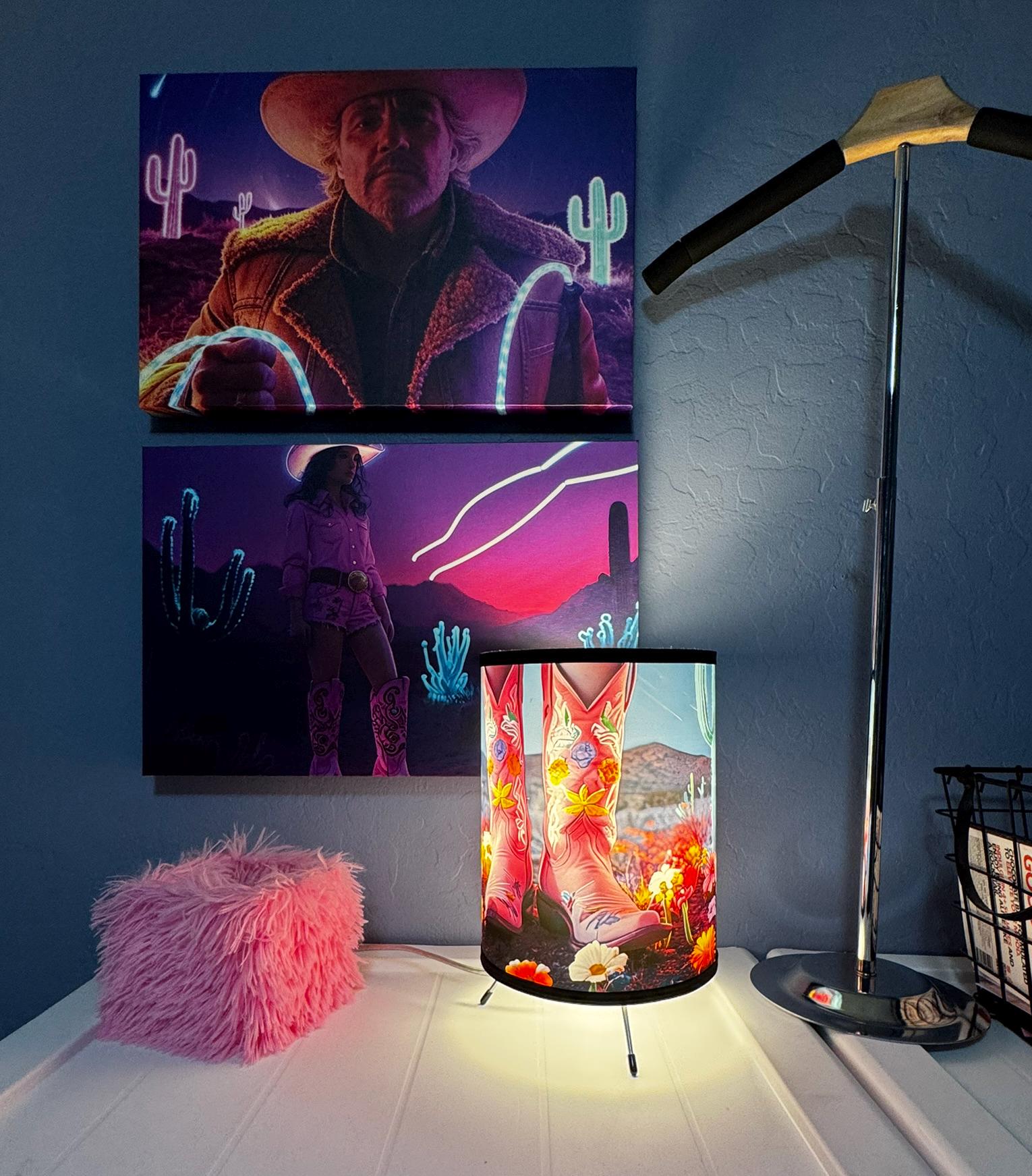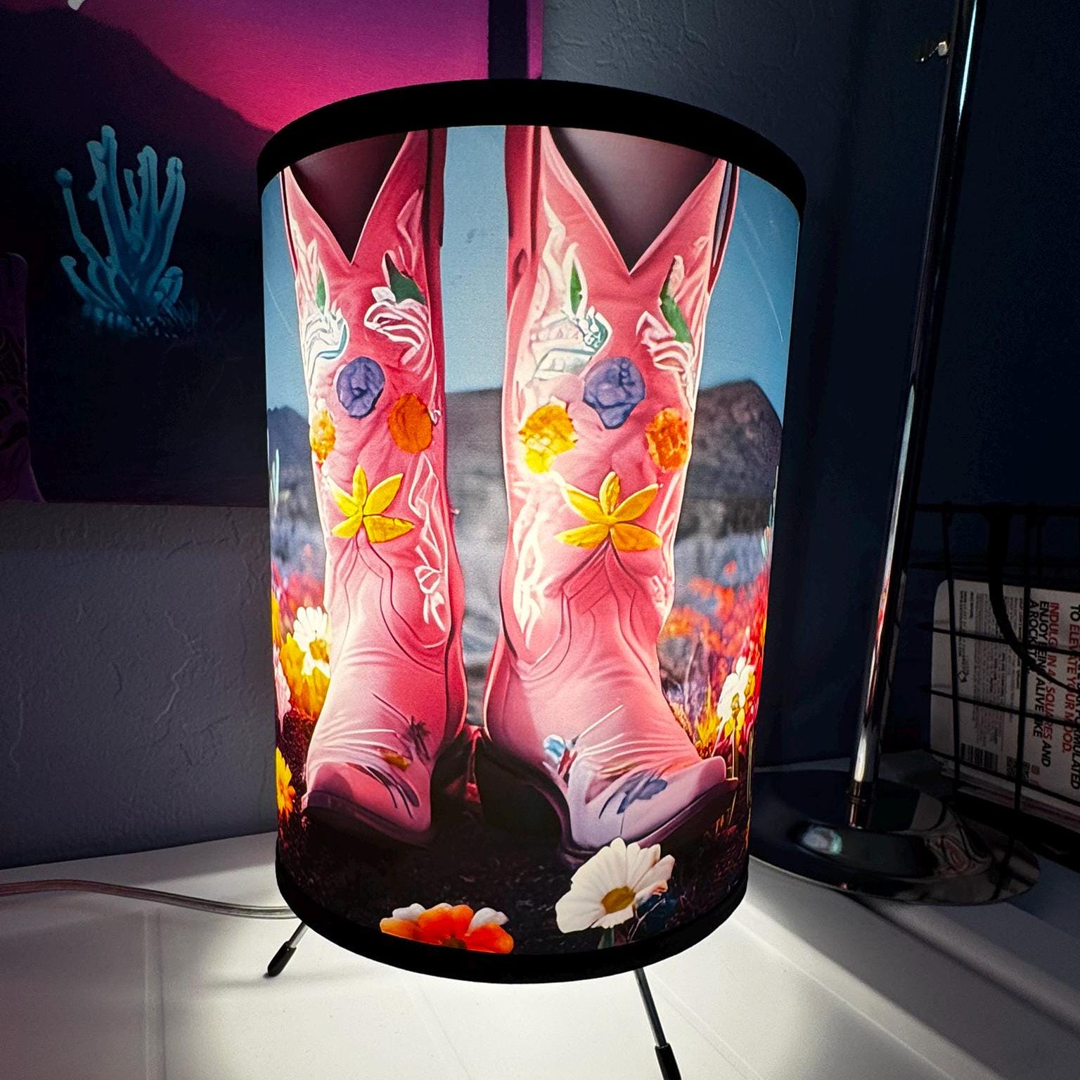 Pink Neon Flowered Cowboy boots Tripod Lamp with High-Res Printed Shade, US\CA plug