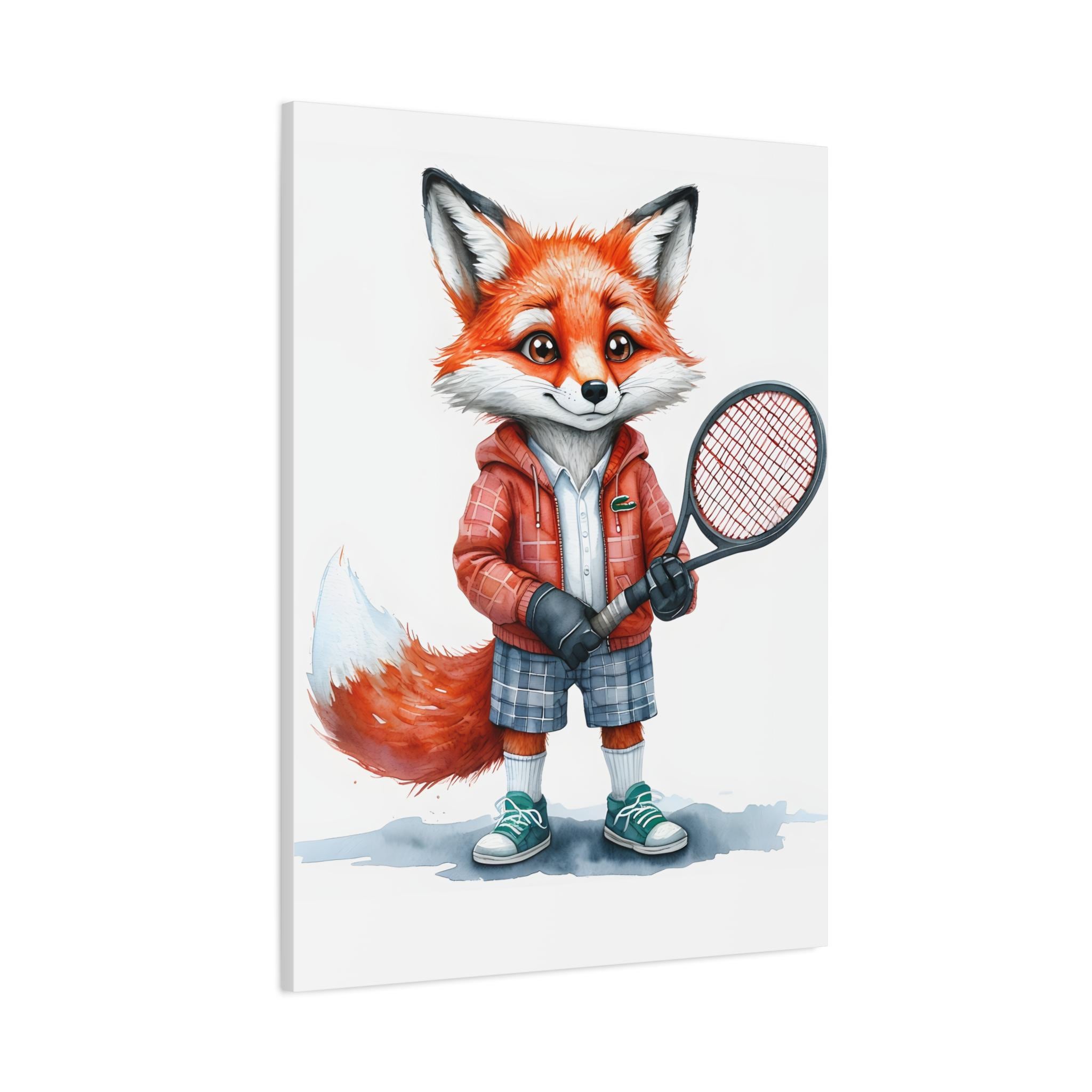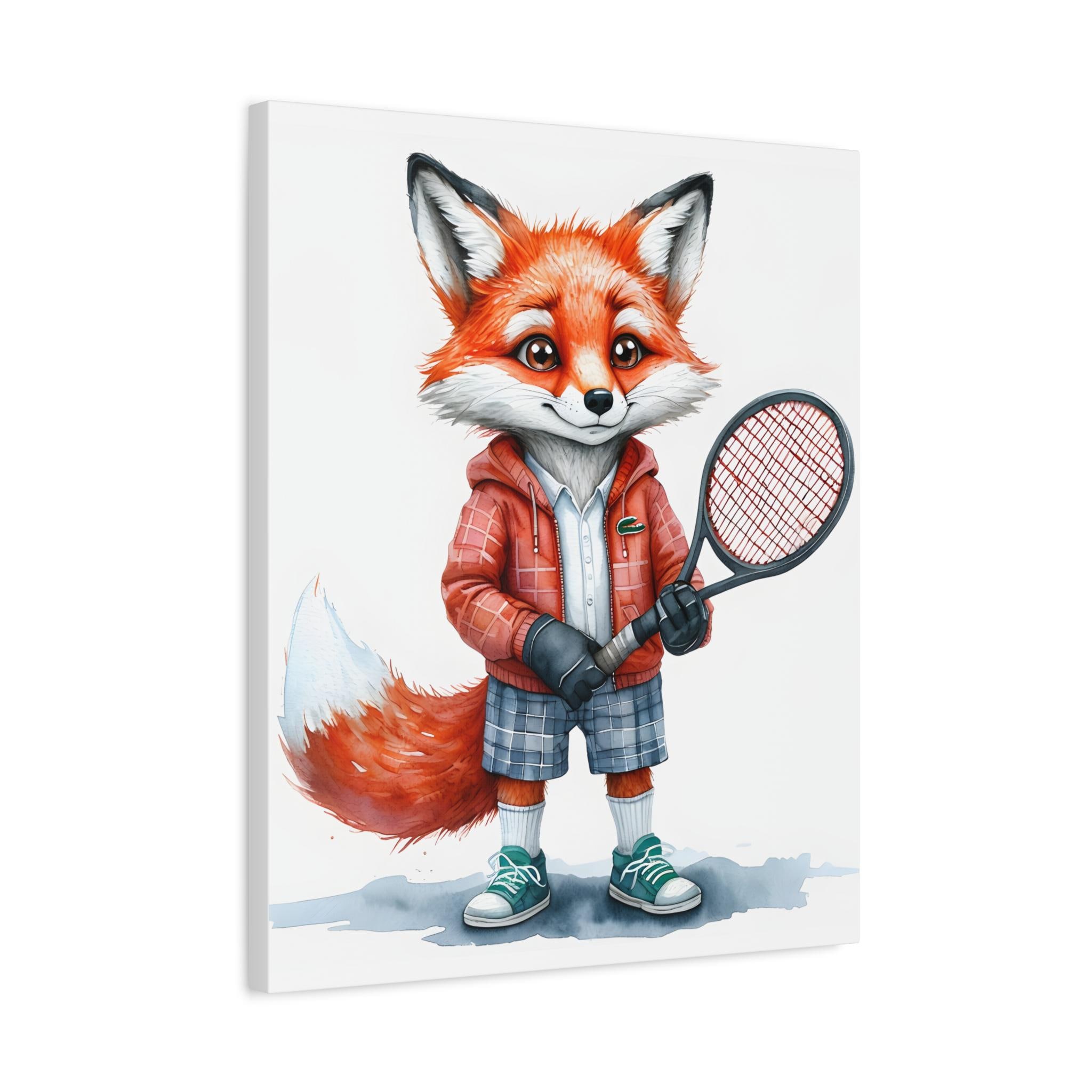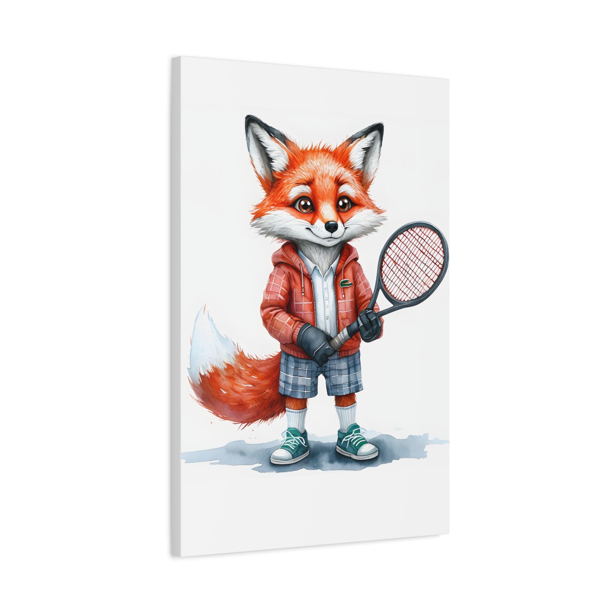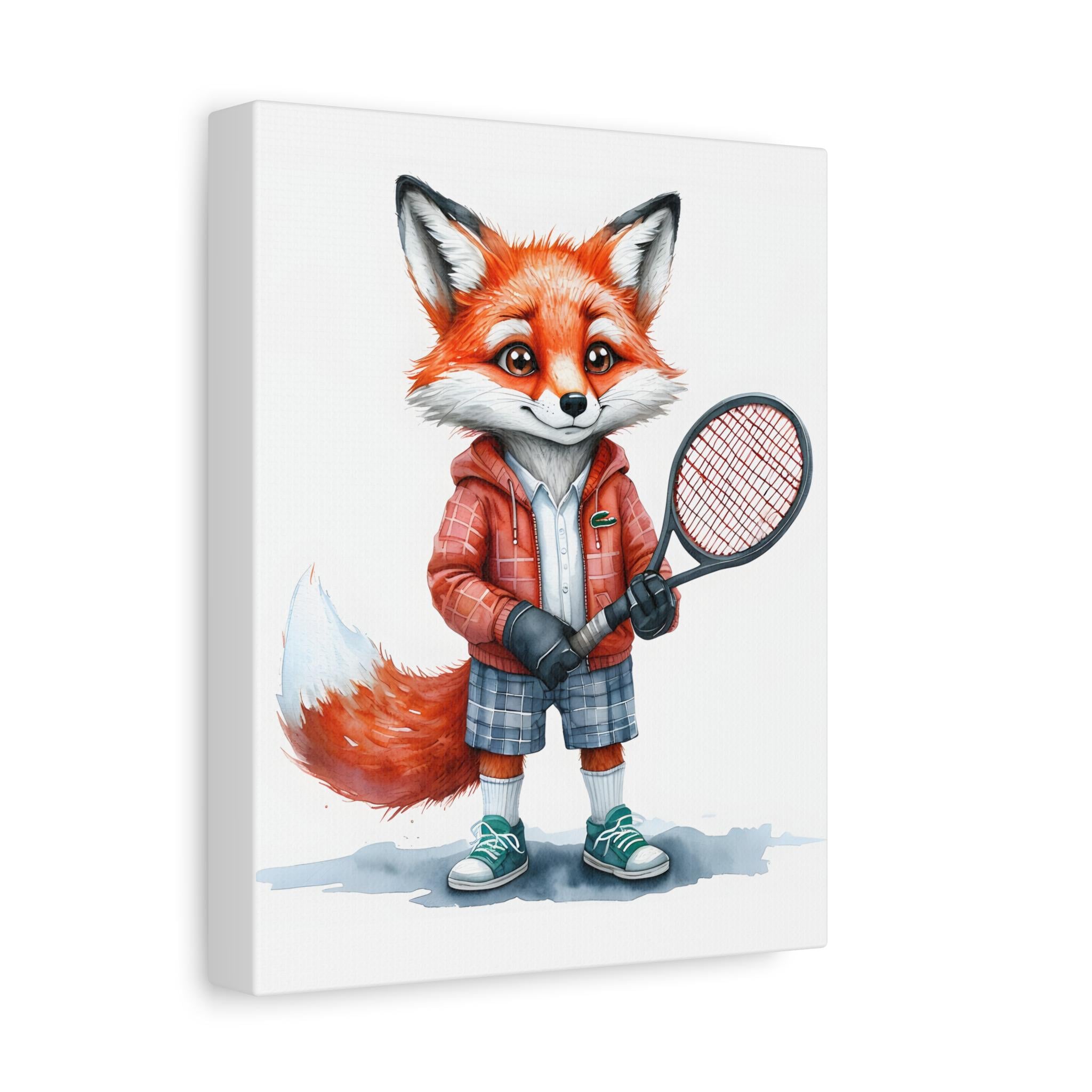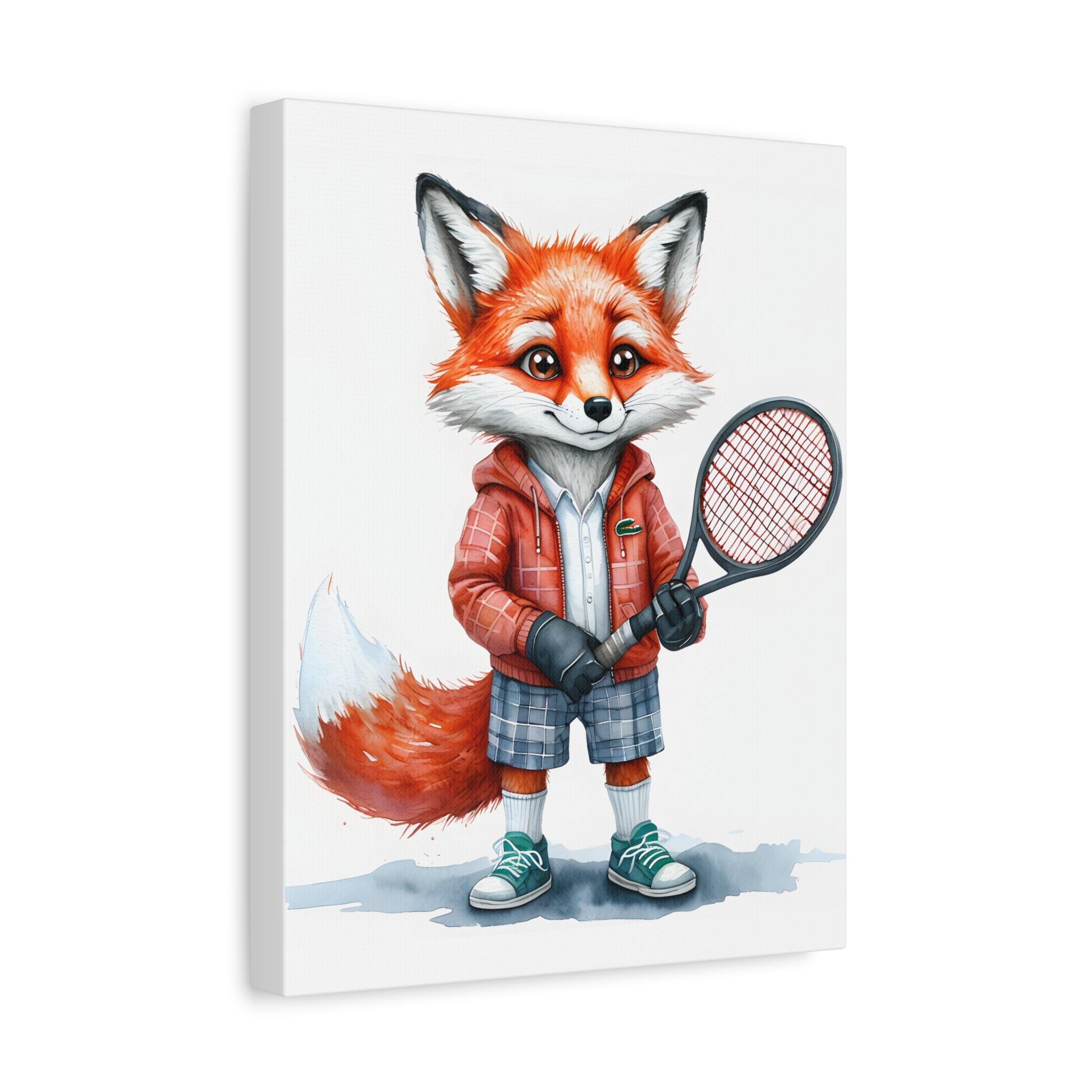 Fox with Tennis Racket Canvas Print: Whimsical Nursery Decor