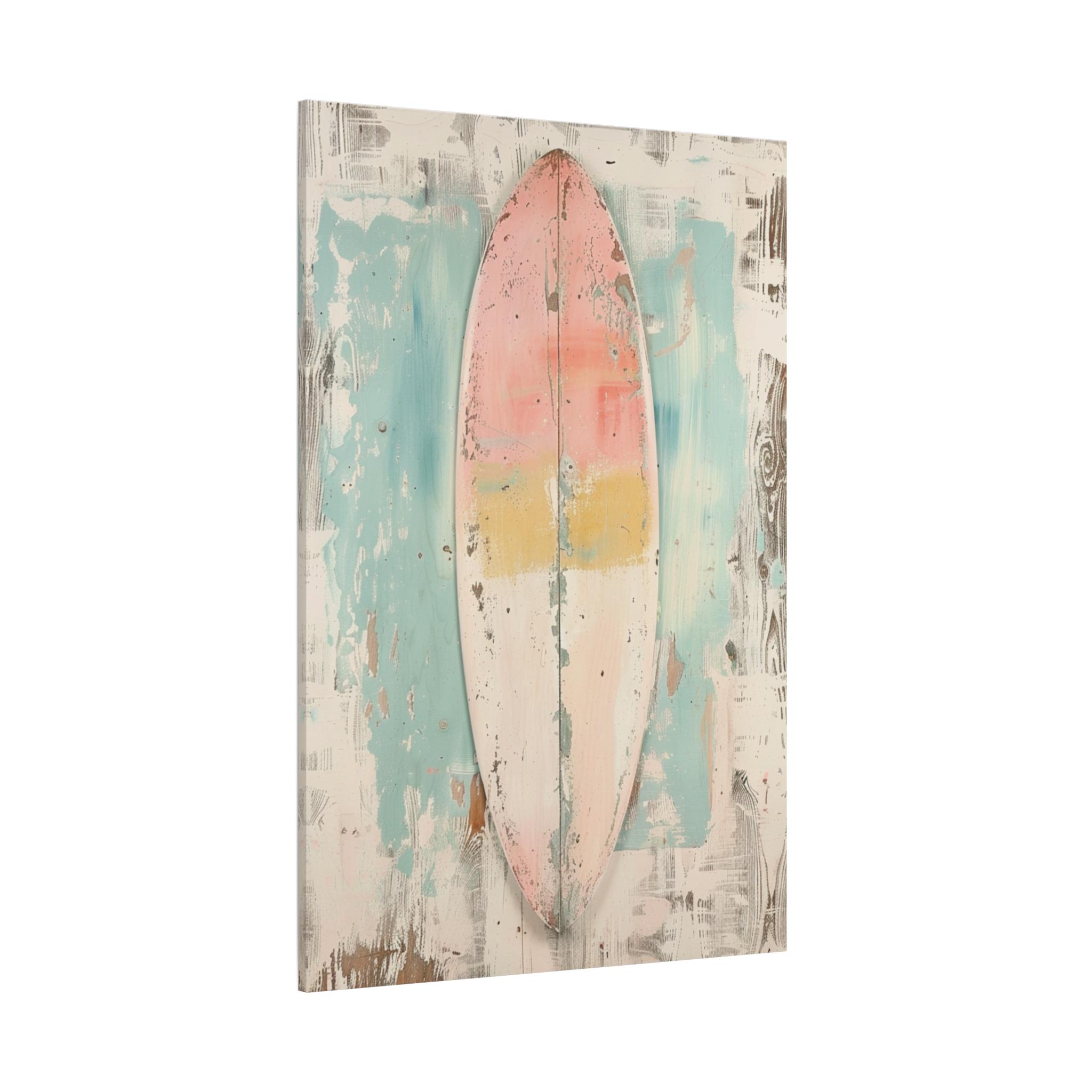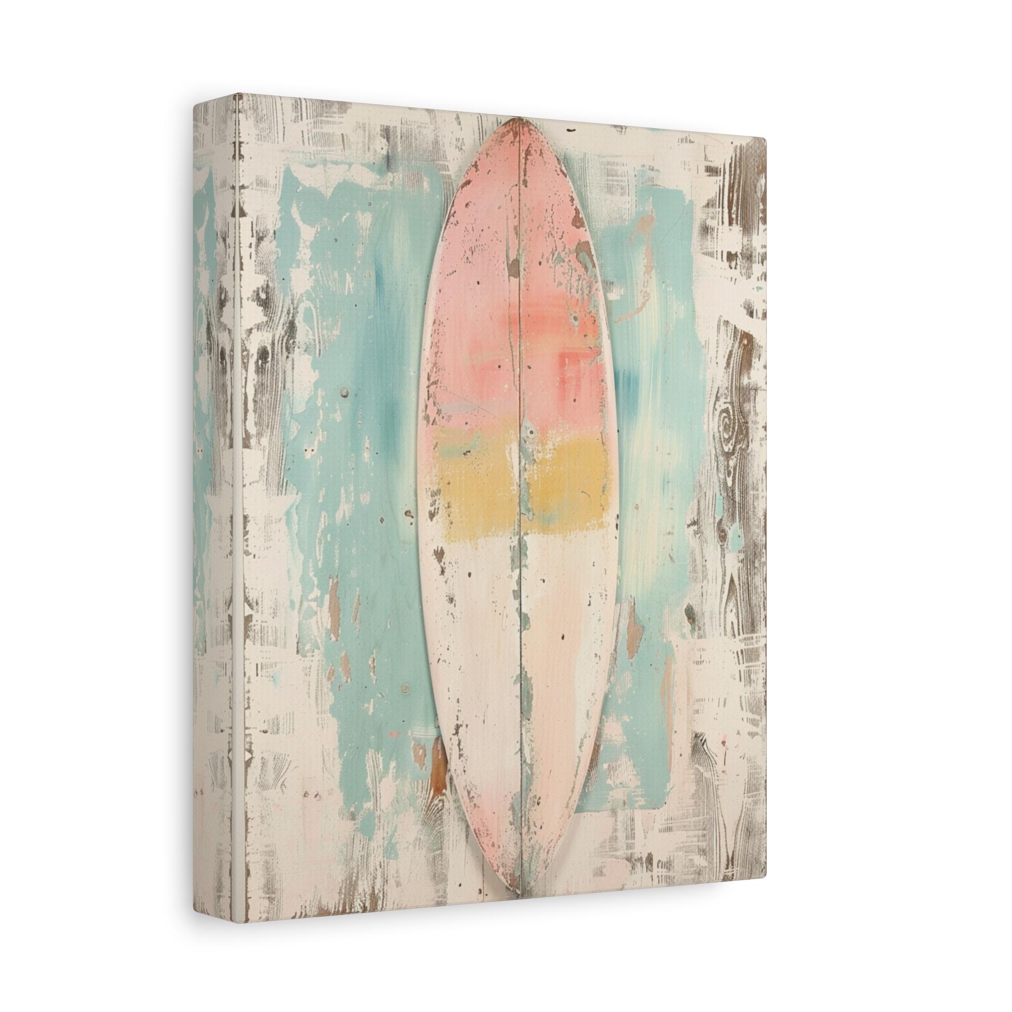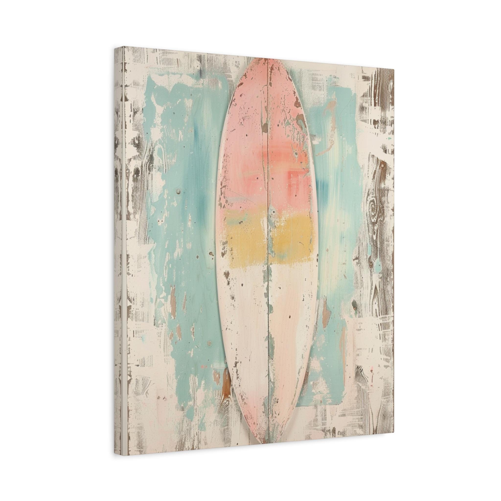 Add a touch of shabby chic charm to your space with this surfboard canvas print. Perfect for those who love a relaxed beachy vibe, this canvas can easily fit into a coastal-themed decor or serve as a reminder of sunny days by the ocean. It is ideal for beach lovers, surf enthusiasts, or those looking to bring a bit of the seaside into their home. Great for decorating a beach house, summer home, or vacation rental. Perfect for summer decor, beach-themed parties, coastal celebrations, or any occasion with a desired laid-back atmosphere.