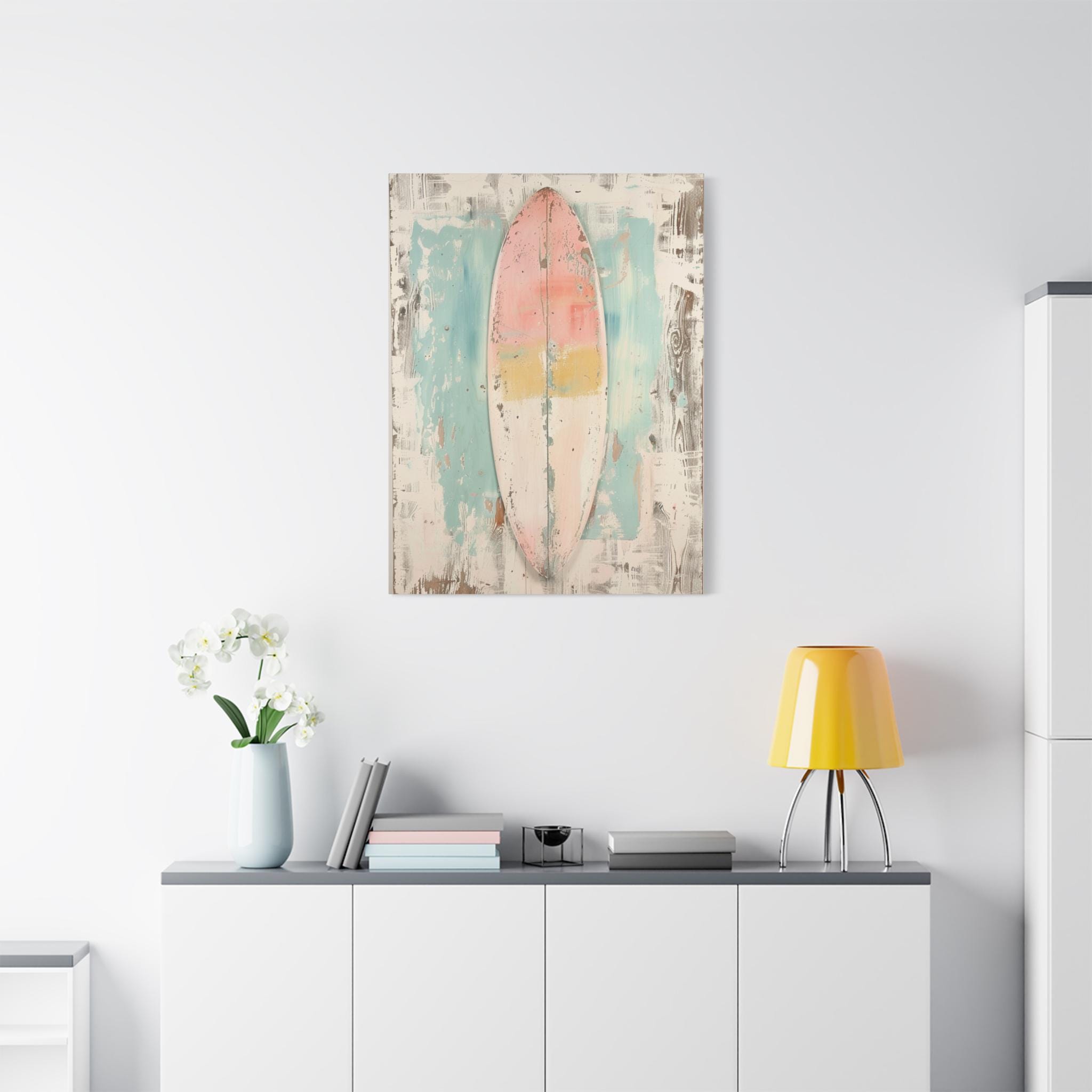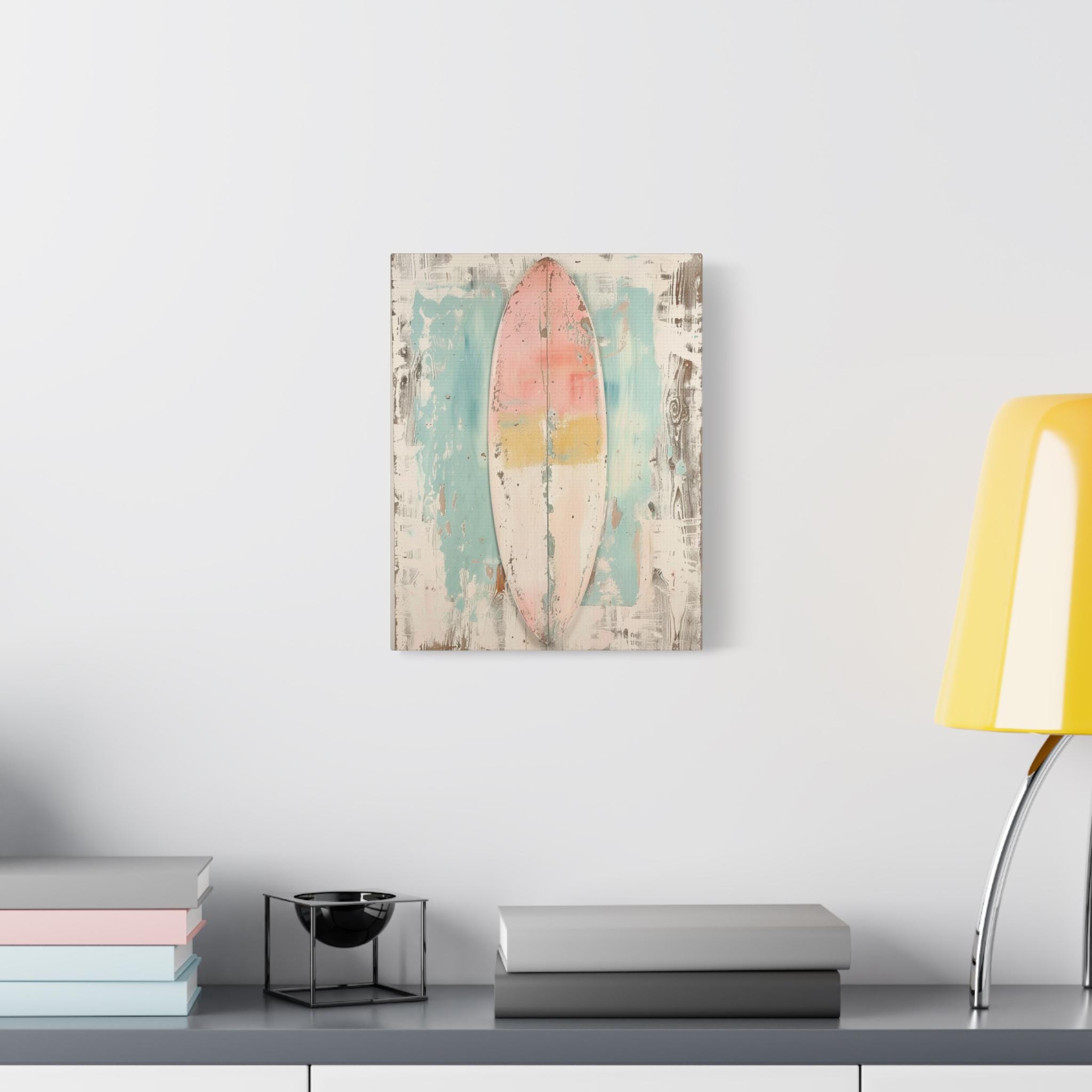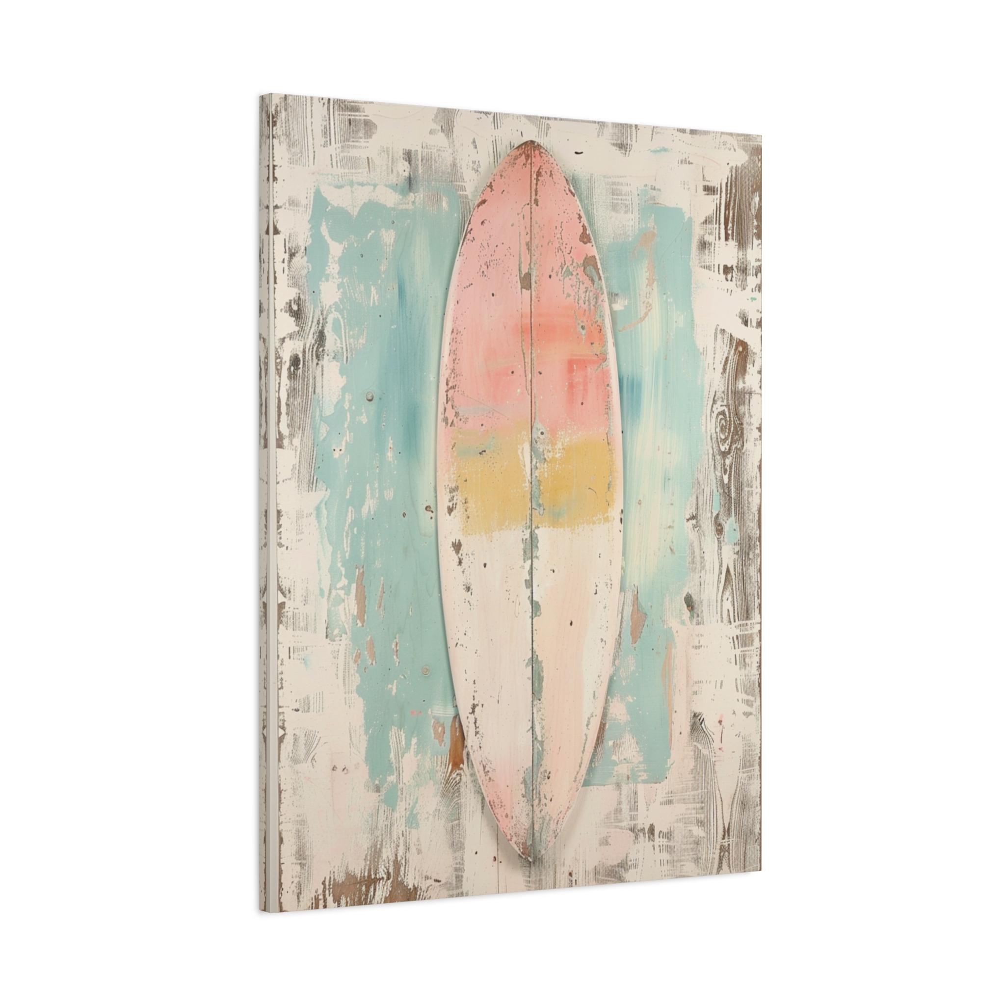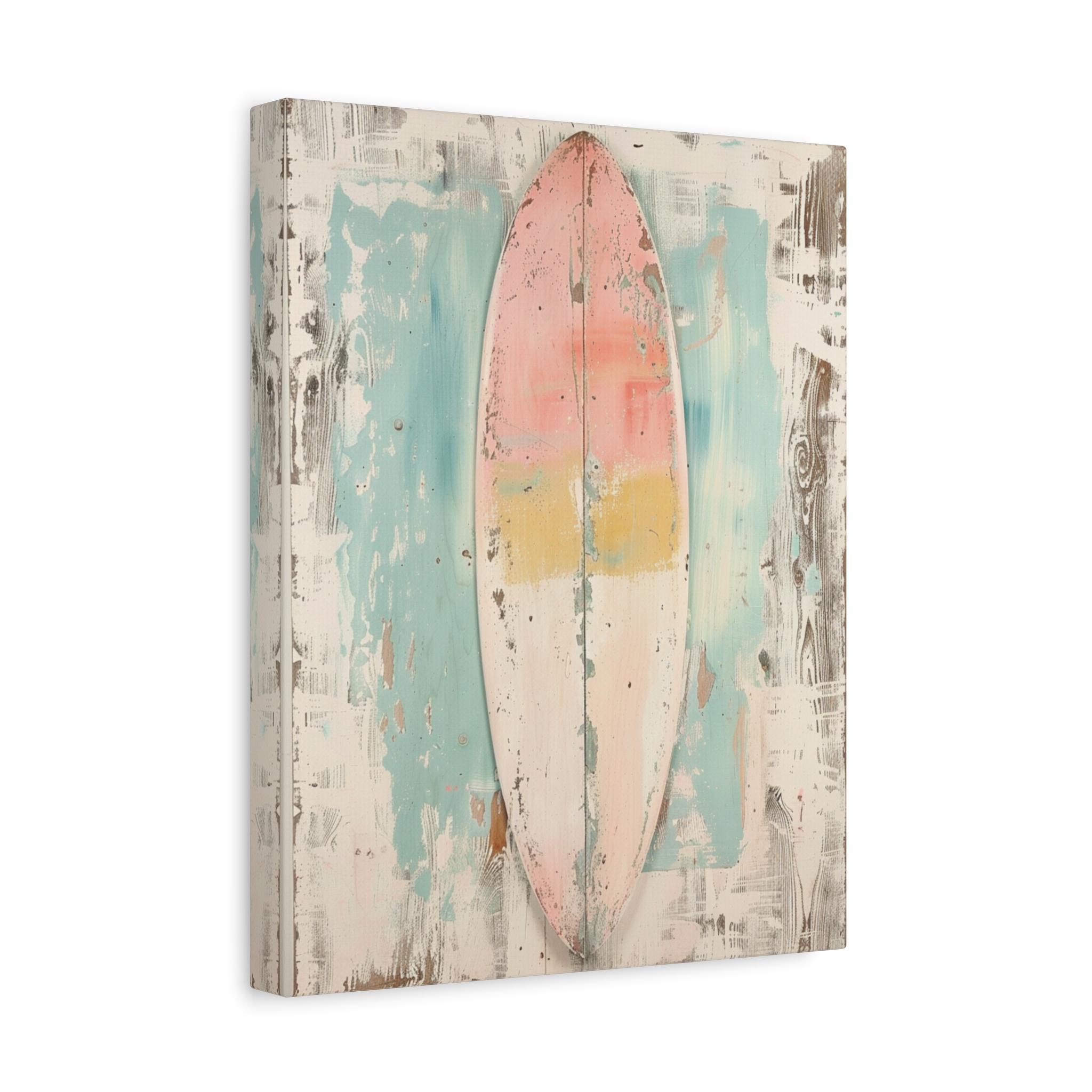 Add a touch of shabby chic charm to your space with this surfboard canvas print. Perfect for those who love a relaxed beachy vibe, this canvas can easily fit into a coastal-themed decor or serve as a reminder of sunny days by the ocean. It is ideal for beach lovers, surf enthusiasts, or those looking to bring a bit of the seaside into their home. Great for decorating a beach house, summer home, or vacation rental. Perfect for summer decor, beach-themed parties, coastal celebrations, or any occasion with a desired laid-back atmosphere.