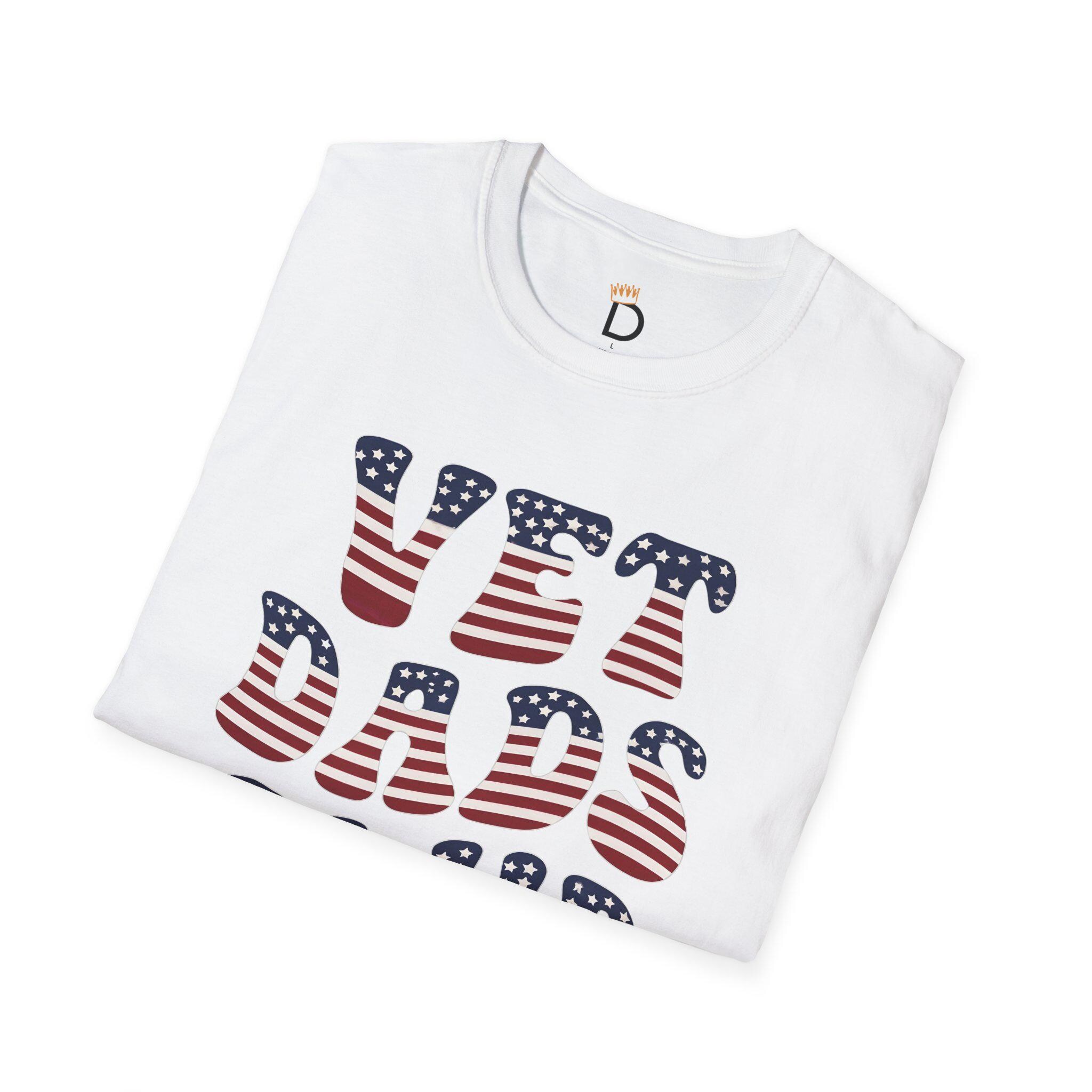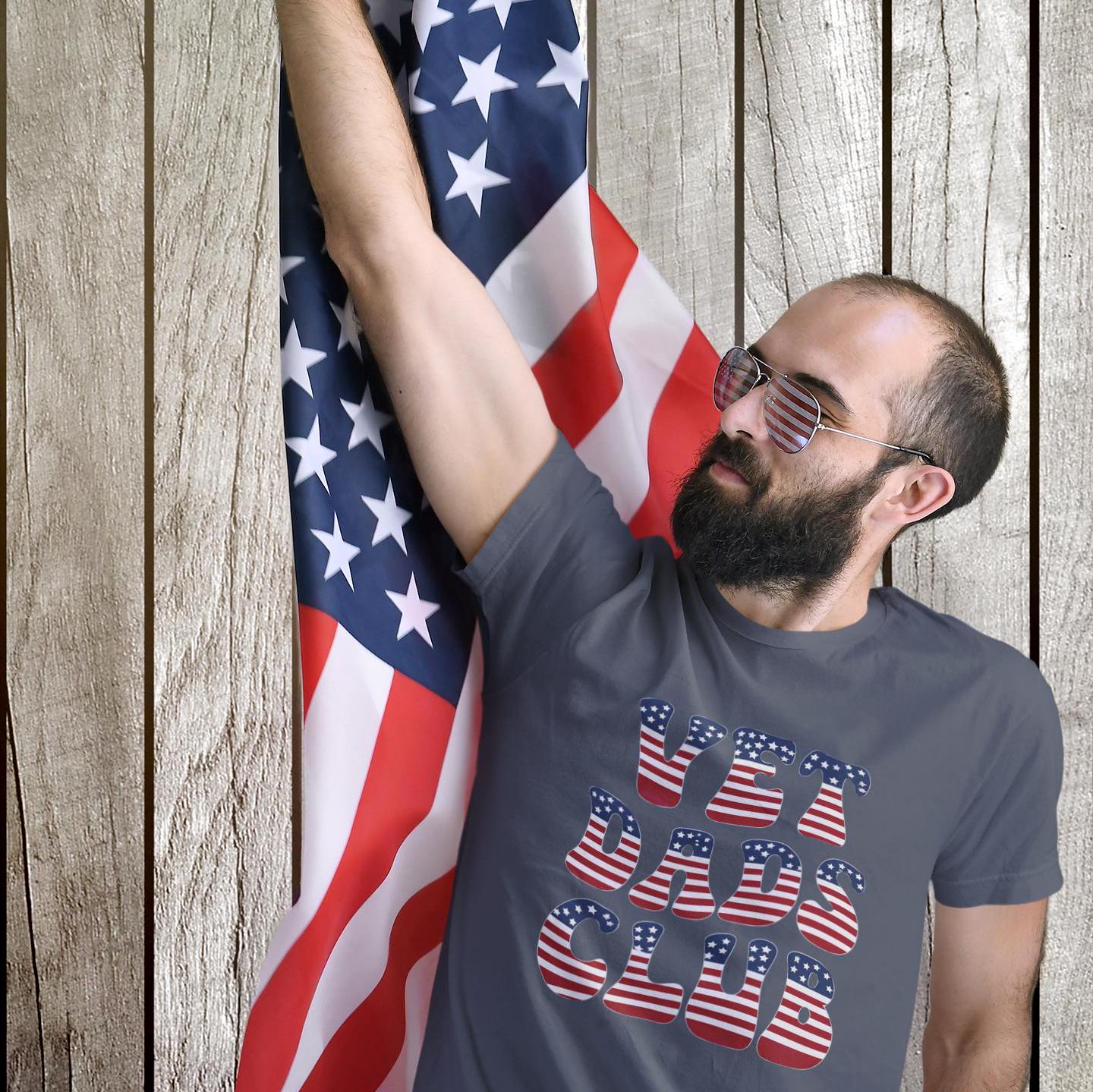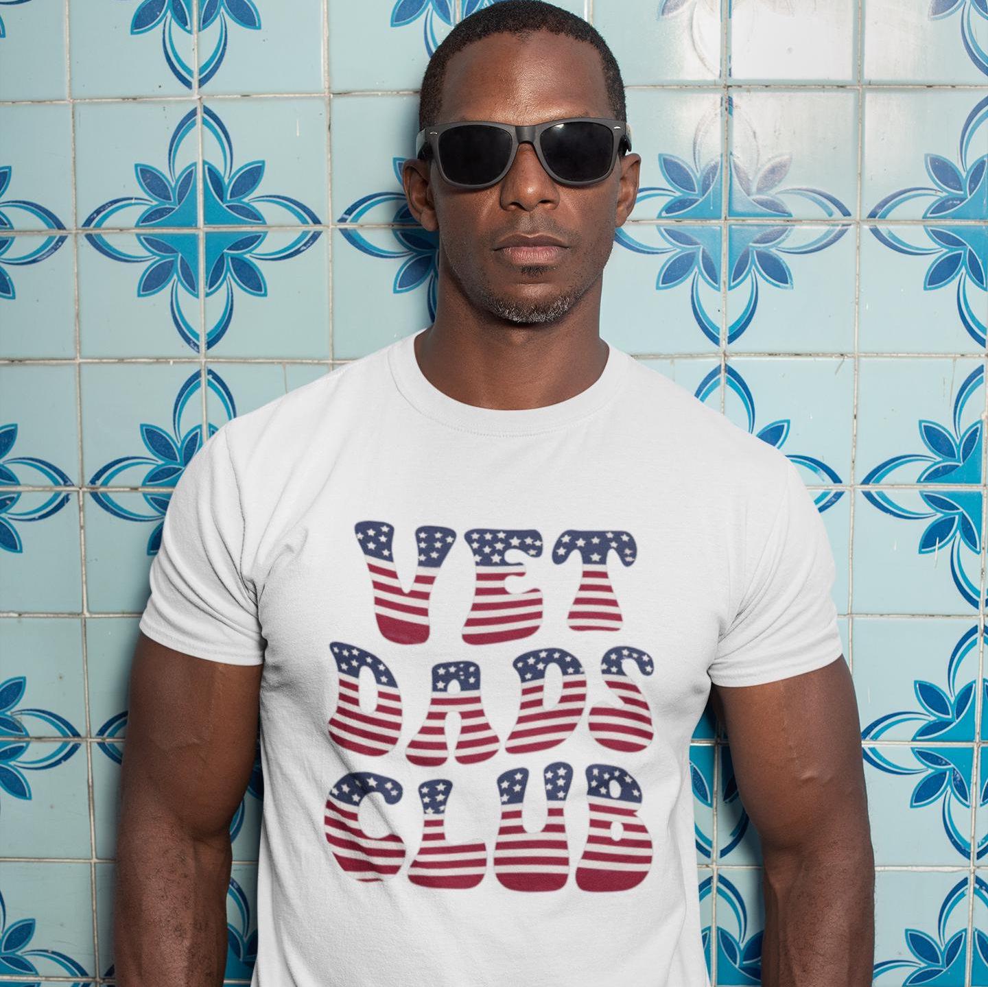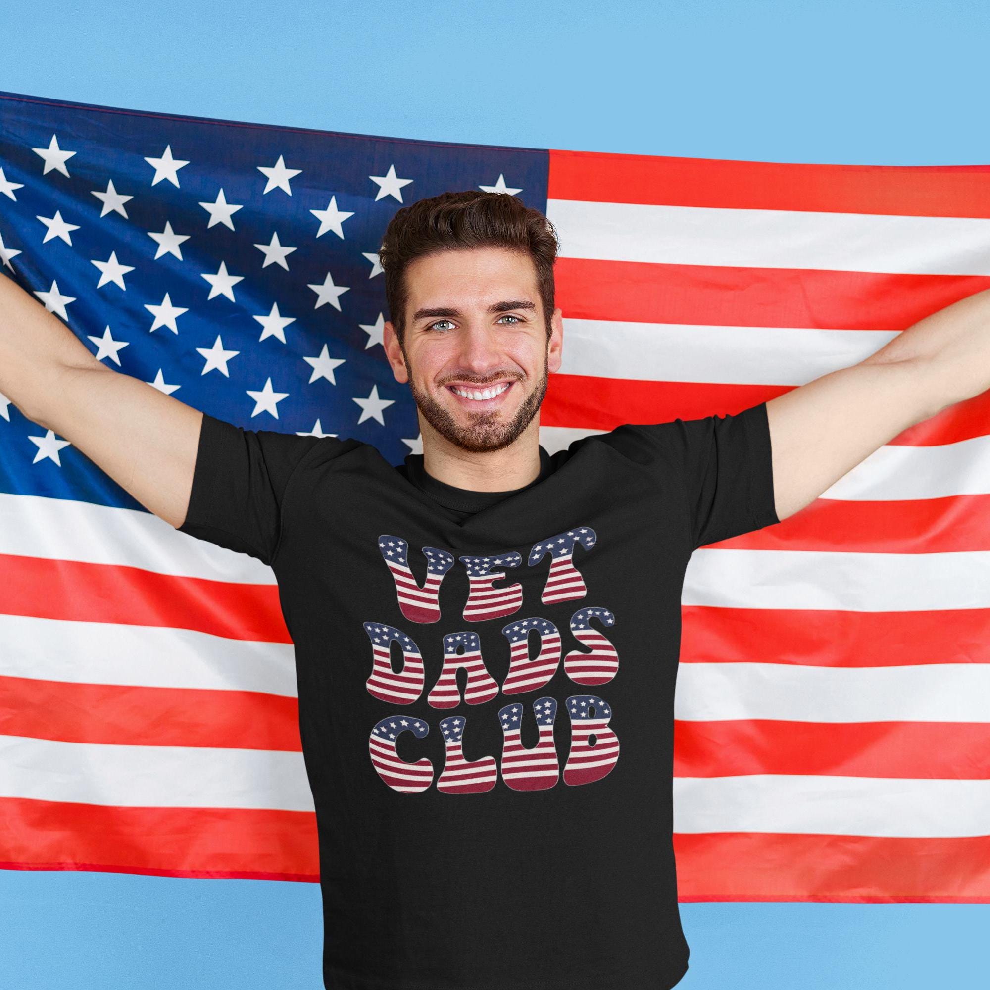 This Vet Dads Club T-Shirt in red, white, and blue letters exudes patriotism and support for veterans. It is perfect for those who have served in the military or have family members who are veterans. Ideal for Memorial Day, Fourth of July, Veterans Day, and any patriotic occasion.