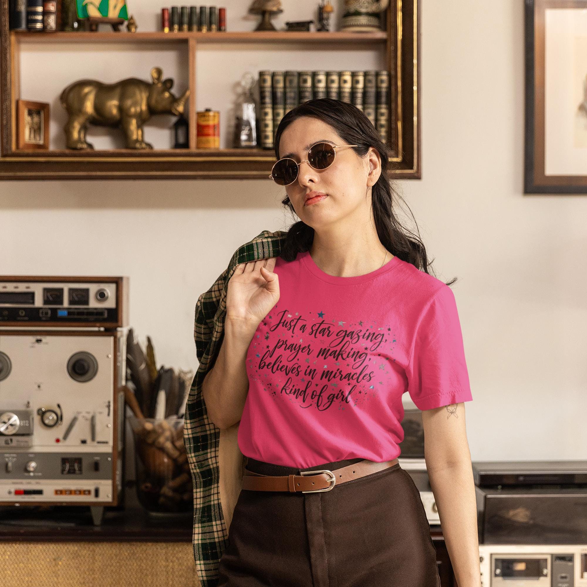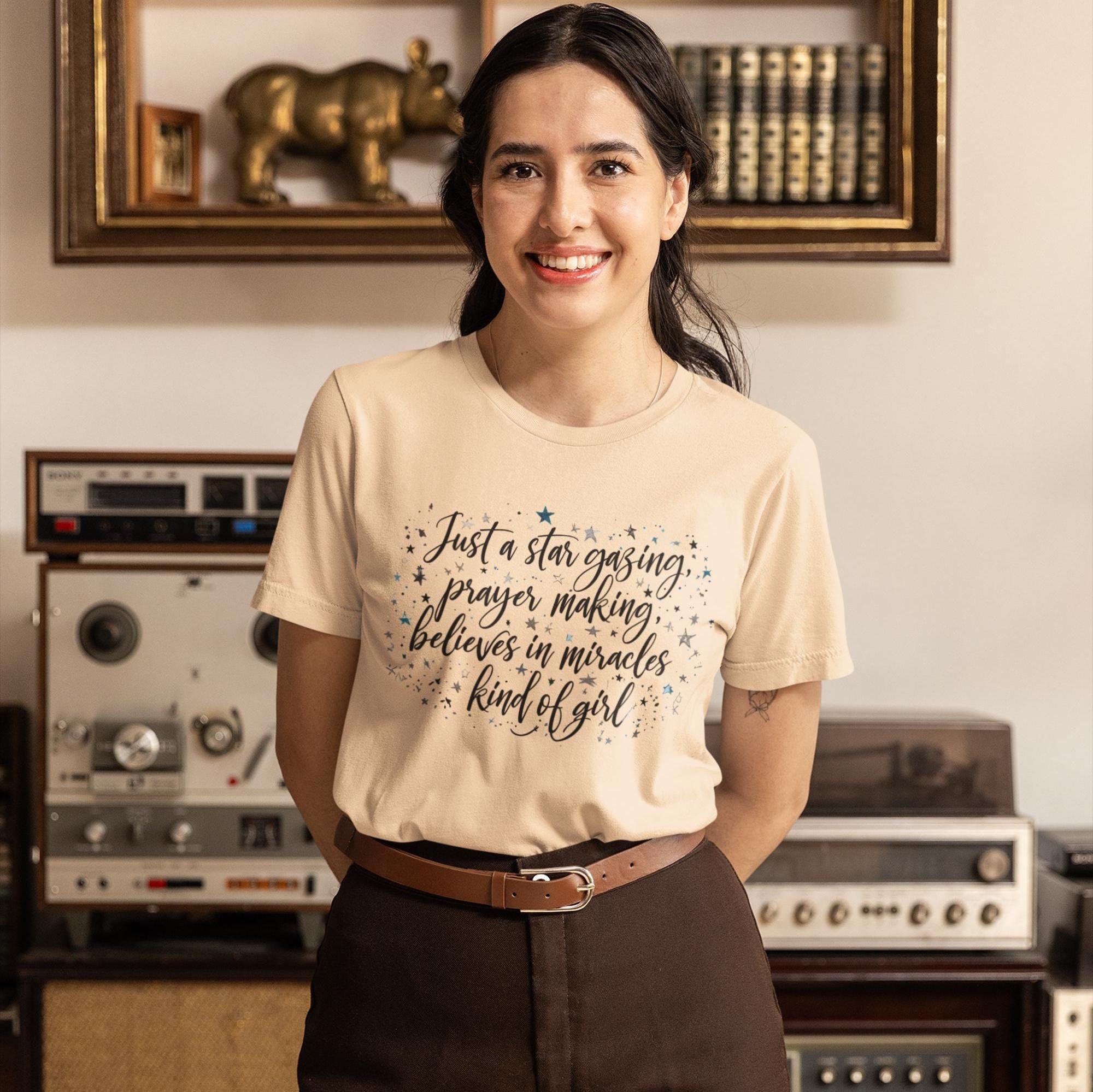 Star Gazing Christian T-Shirt: Miracle Believer, Girly Faith Gift