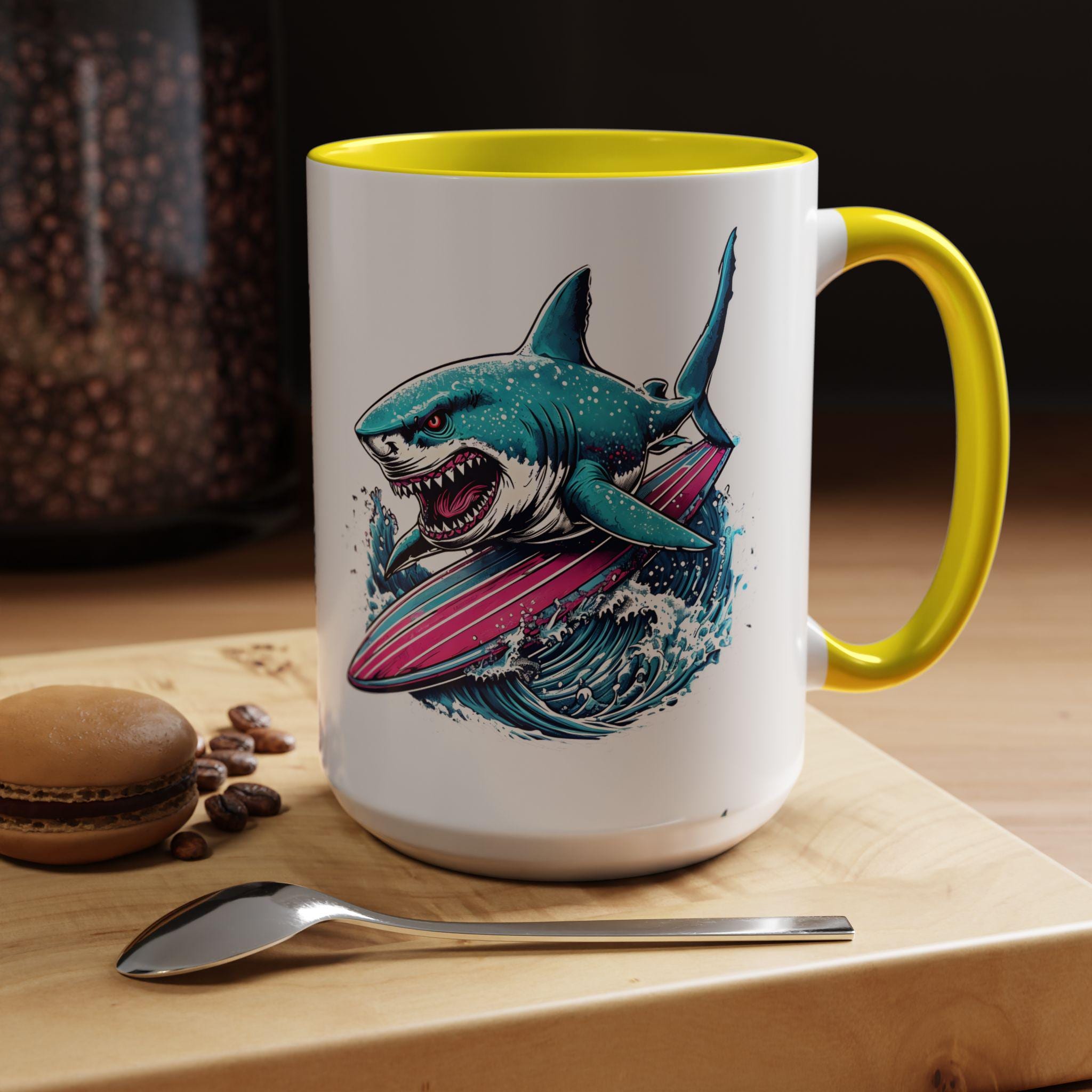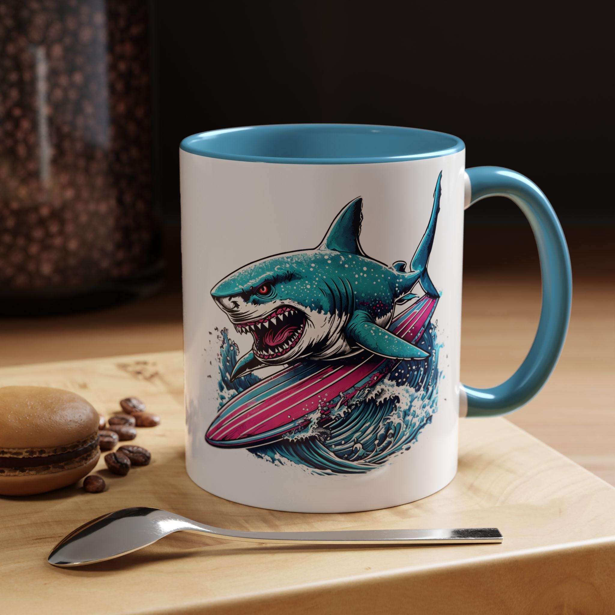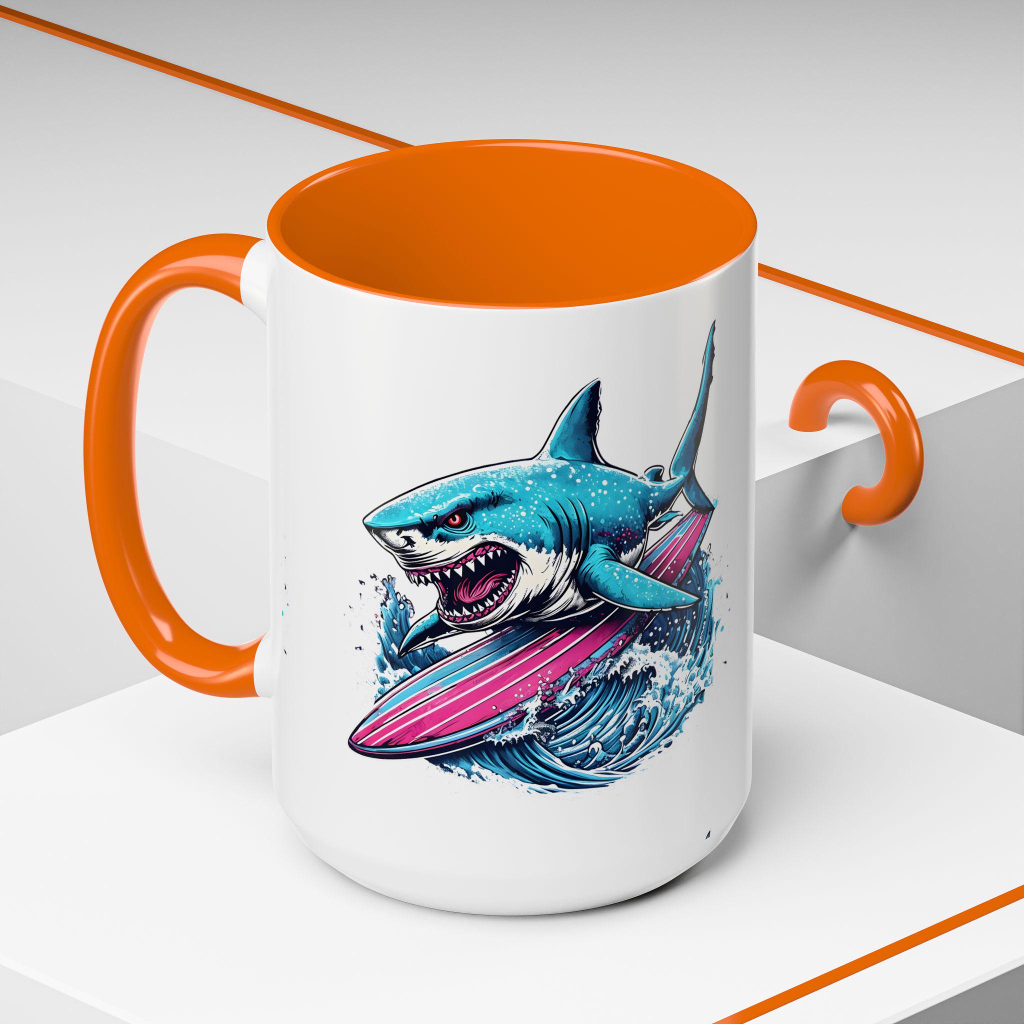 Start your day with a splash of fun and adventure with this vibrant shark mug featuring a fierce shark riding a surfboard! Perfect for surfers, shark enthusiasts, and beach lovers alike, this ceramic coffee cup brings coastal vibes to your morning routine. Whether you're sipping coffee, tea, or hot cocoa, this playful shark mug adds a wave of personality to every sip. Its eye-catching design and ocean-inspired theme make it an ideal gift for anyone who loves the sea, surfing, or quirky kitchen accessories. Made from durable ceramic, this mug is dishwasher safe and available in multiple sizes to suit your beverage needs. Embrace your love for the ocean and make every coffee break a fun-filled surf adventure with this unique shark surfboard mug!