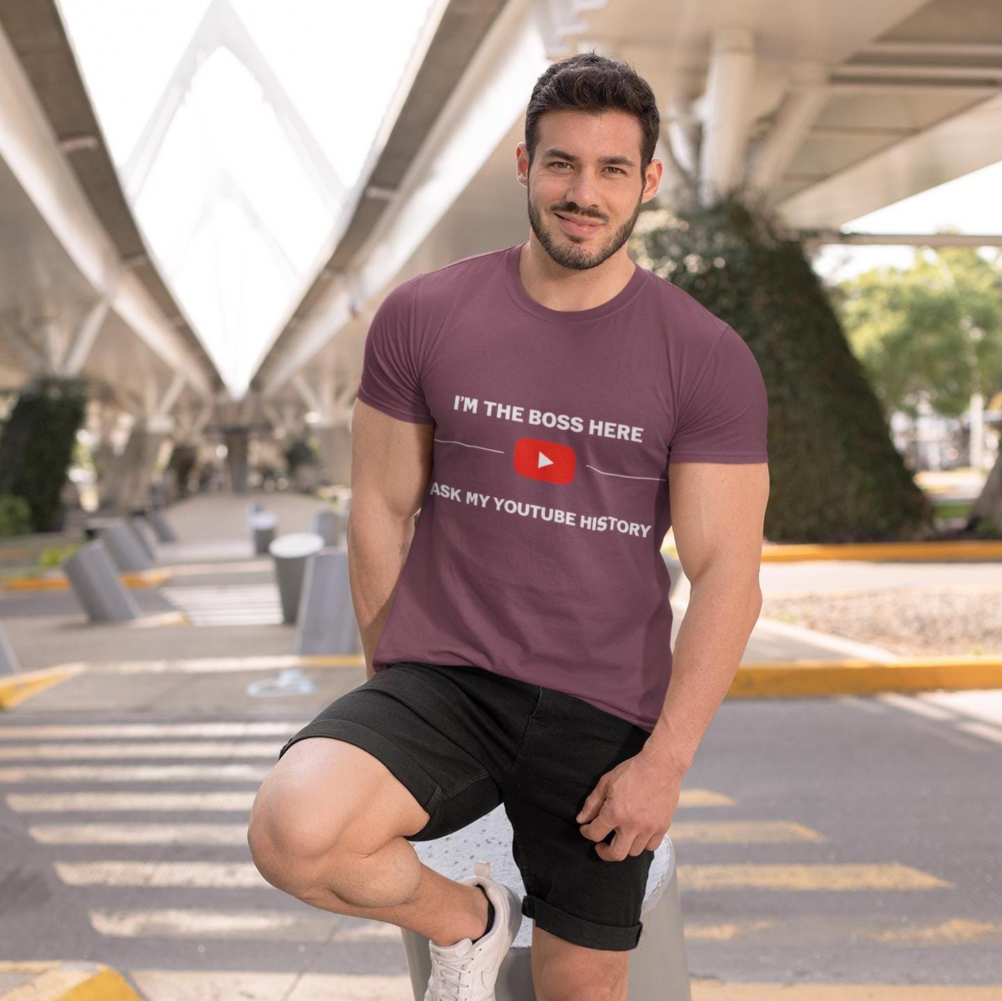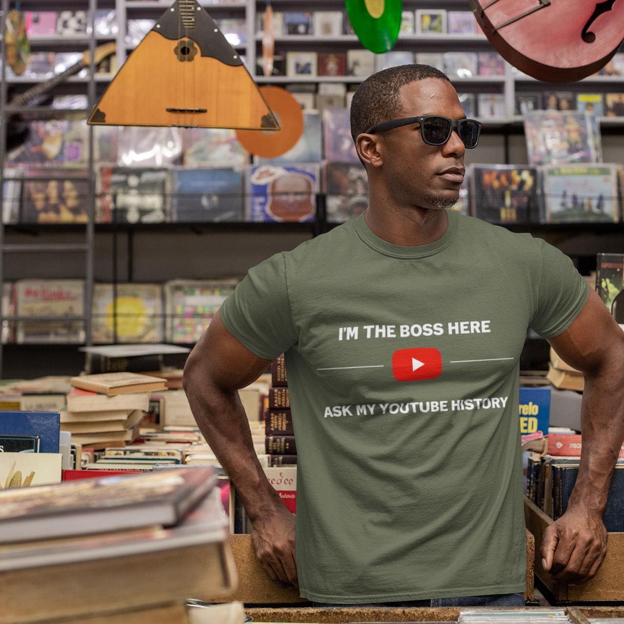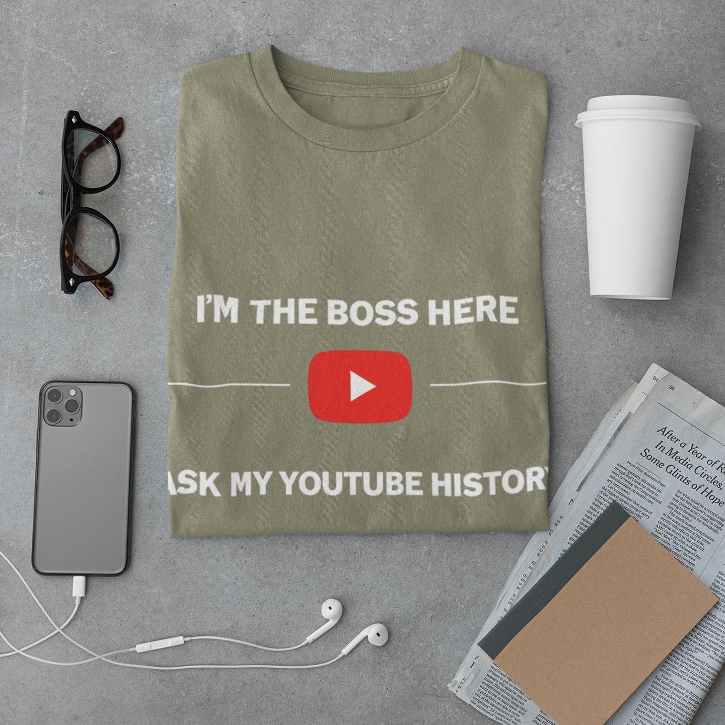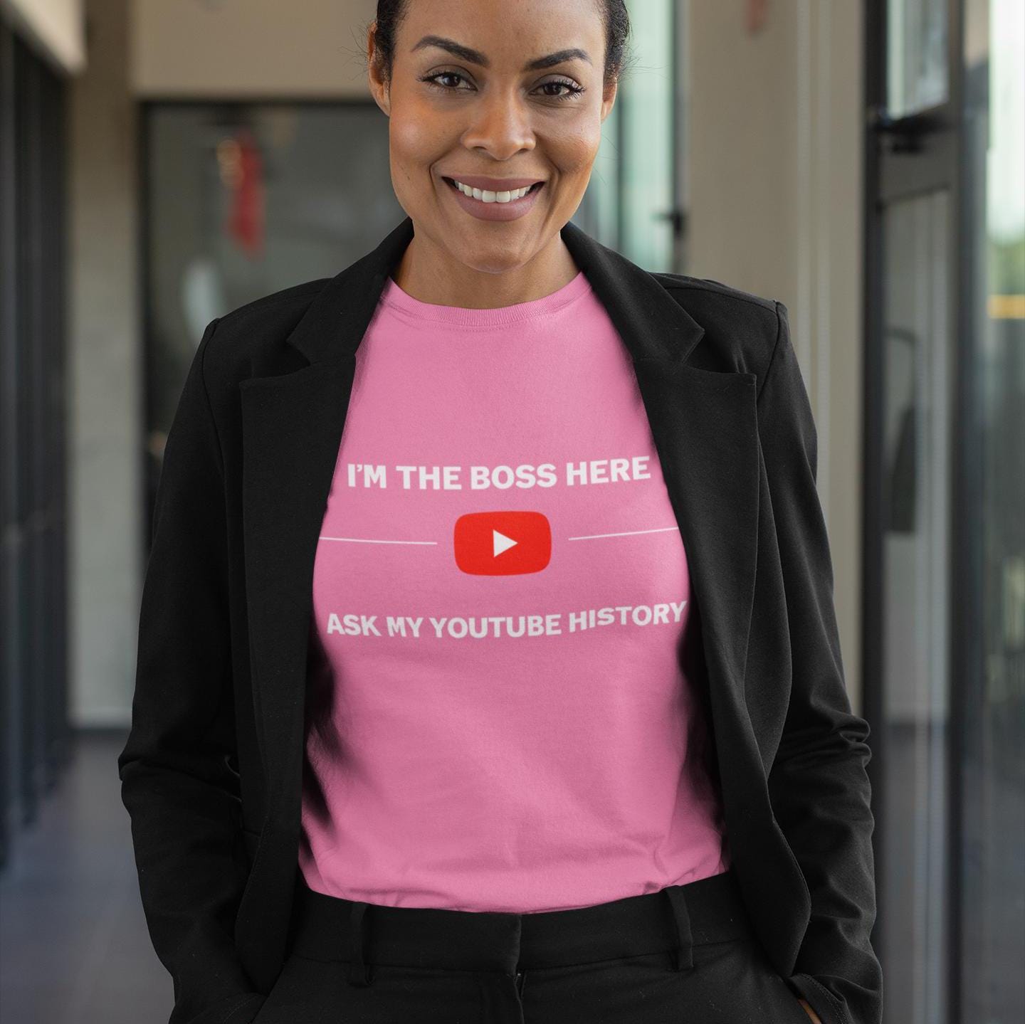 ✔️ Bold and funny “I’m the Boss Here, Ask My YouTube History” text design