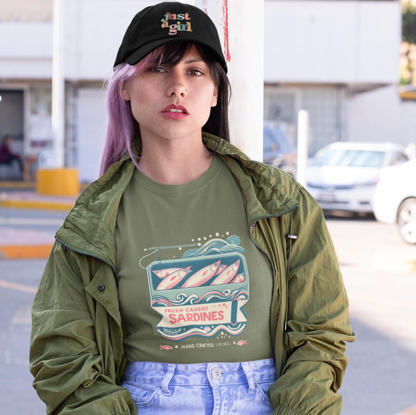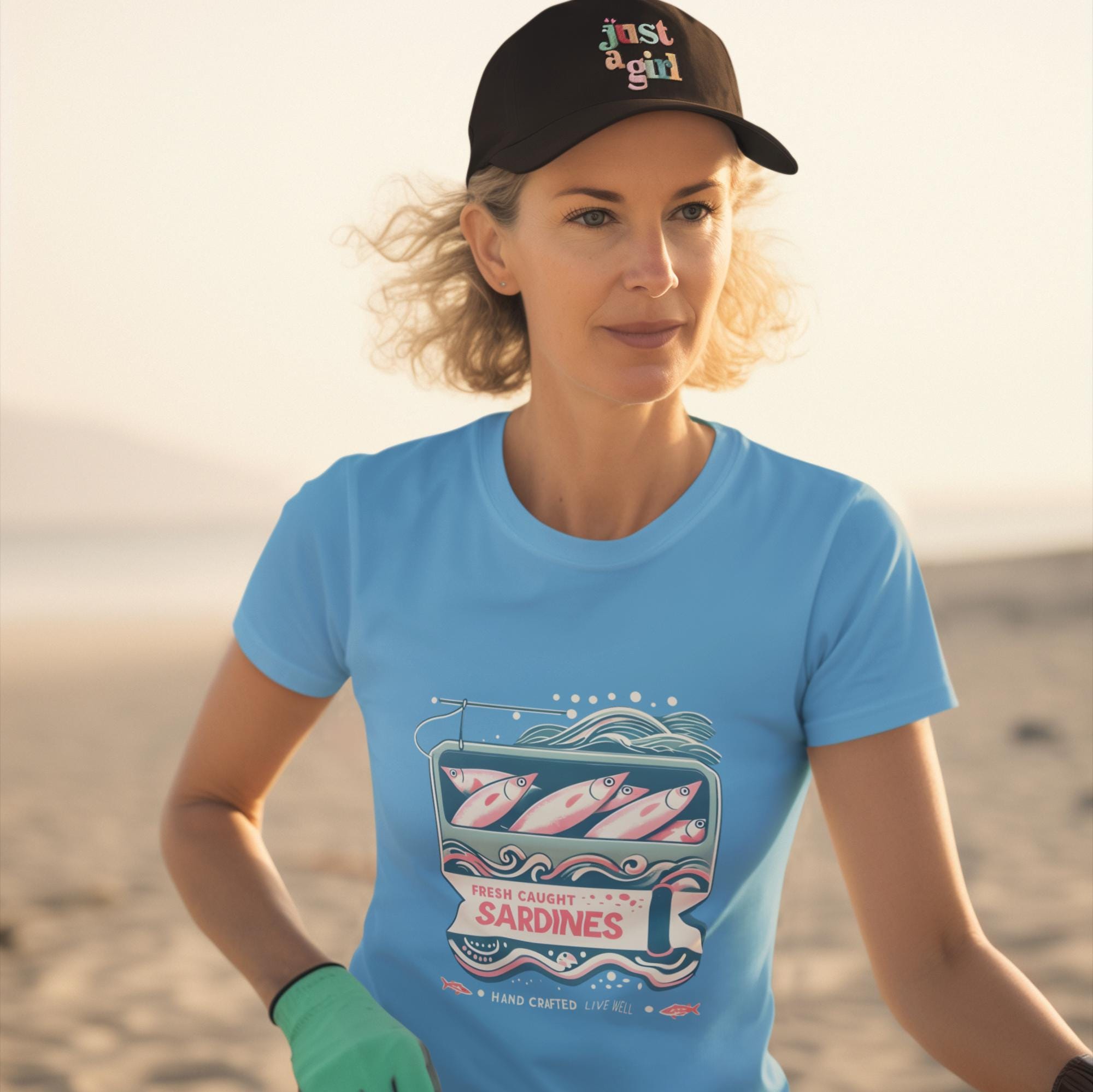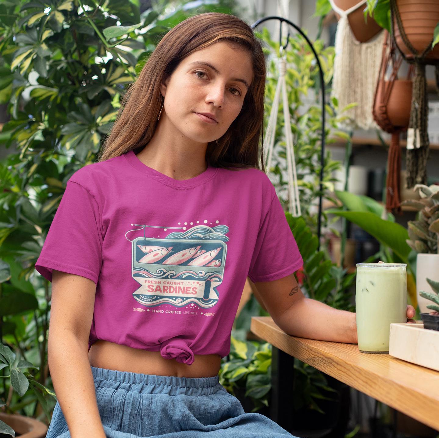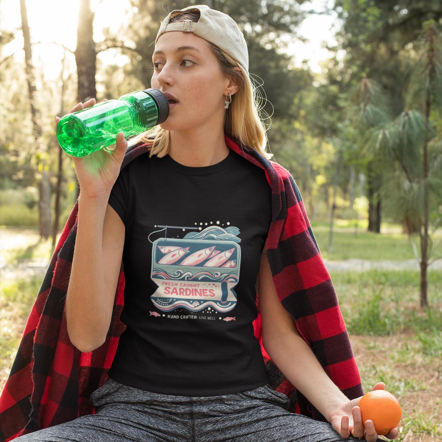 This vintage fishing shirt features a funny sardine design, making it a quirky and retro gift for the fishing enthusiast in your life. This USA cotton unisex tee celebrates maritime culture with its unique design, perfect as a gift for fishermen or anyone who appreciates a humorous, ironic, or artistic shirt.