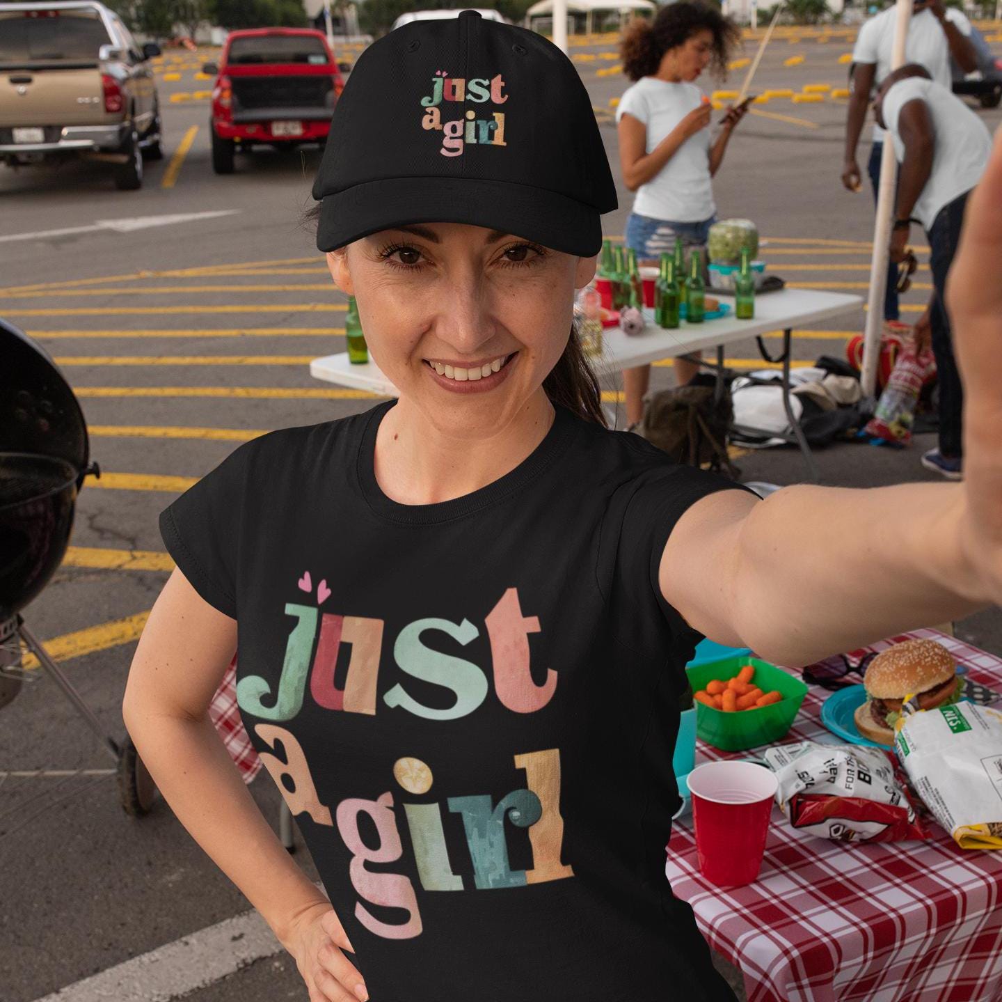 Embroidered classic cap with the words Just a Girl, perfect for everyday wear. This cap gives off a casual and laid-back vibe, making it a great accessory for outdoor activities or running errands. Ideal for women or girls looking to add a touch of personality to their outfits. Perfect for gifting on birthdays or as a thoughtful gesture during Women's History Month.
