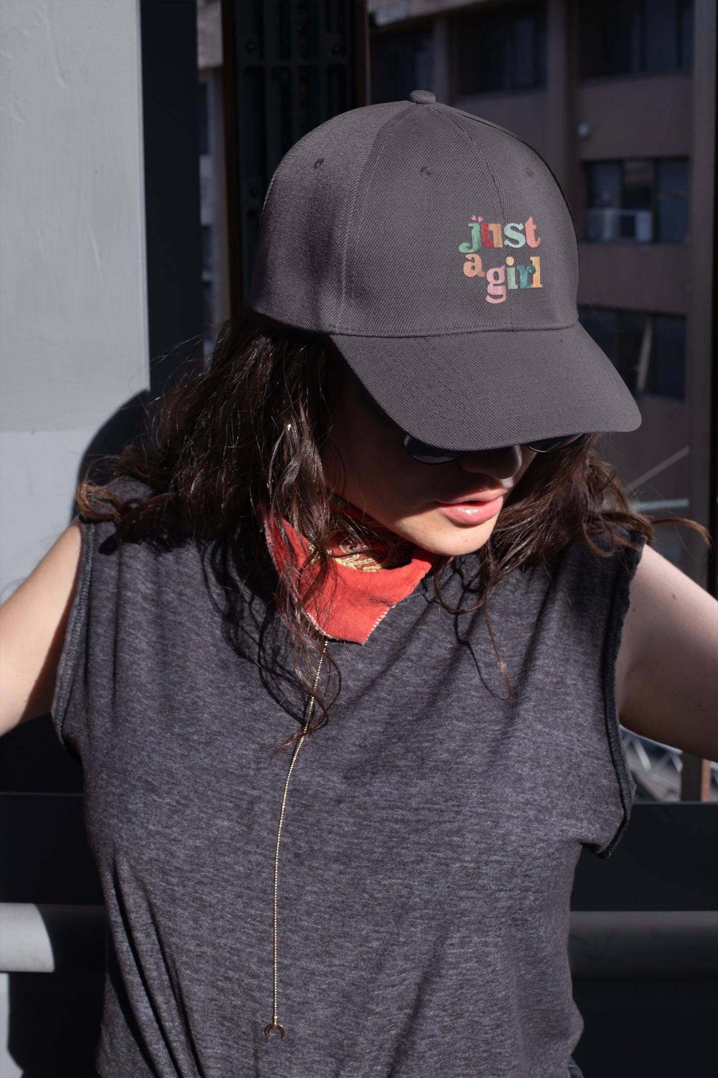 Embroidered 'Just a Girl' Baseball Hat - Vintage Style Dad Cap
