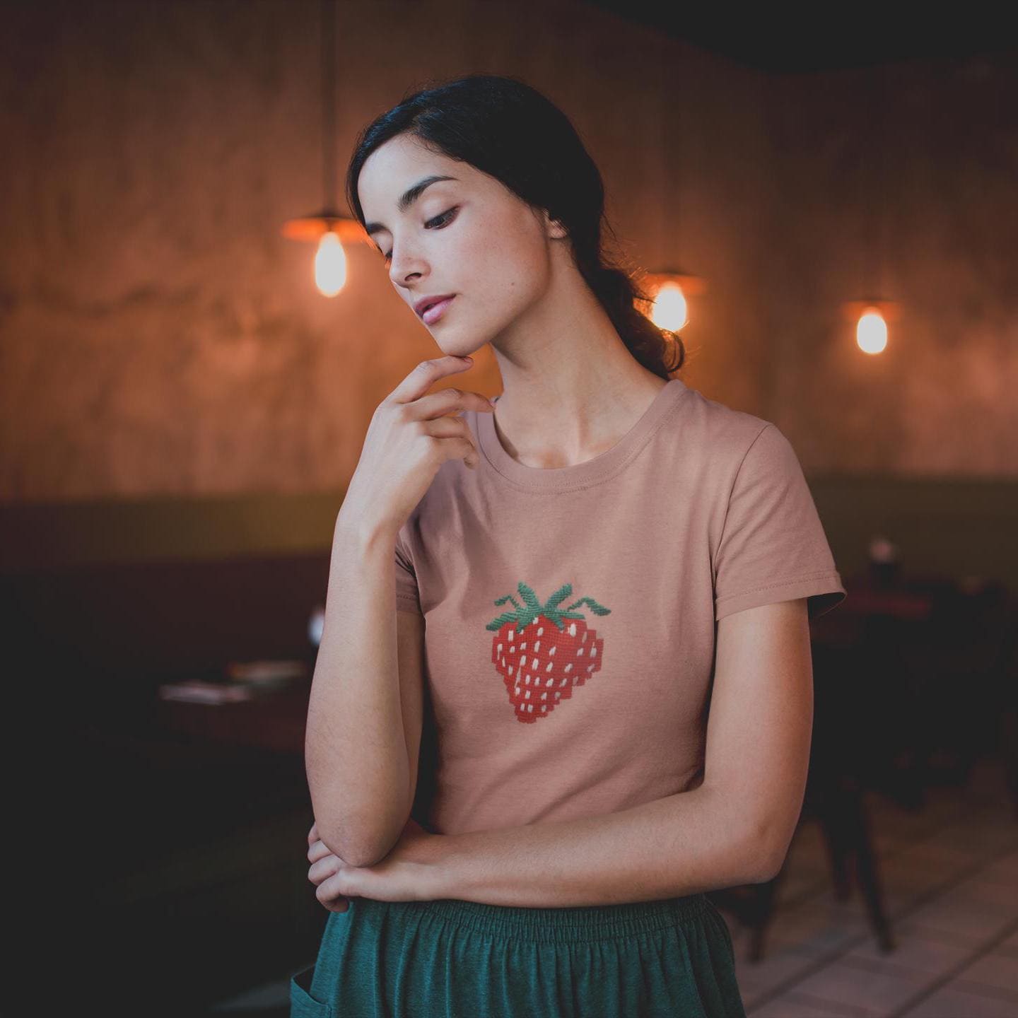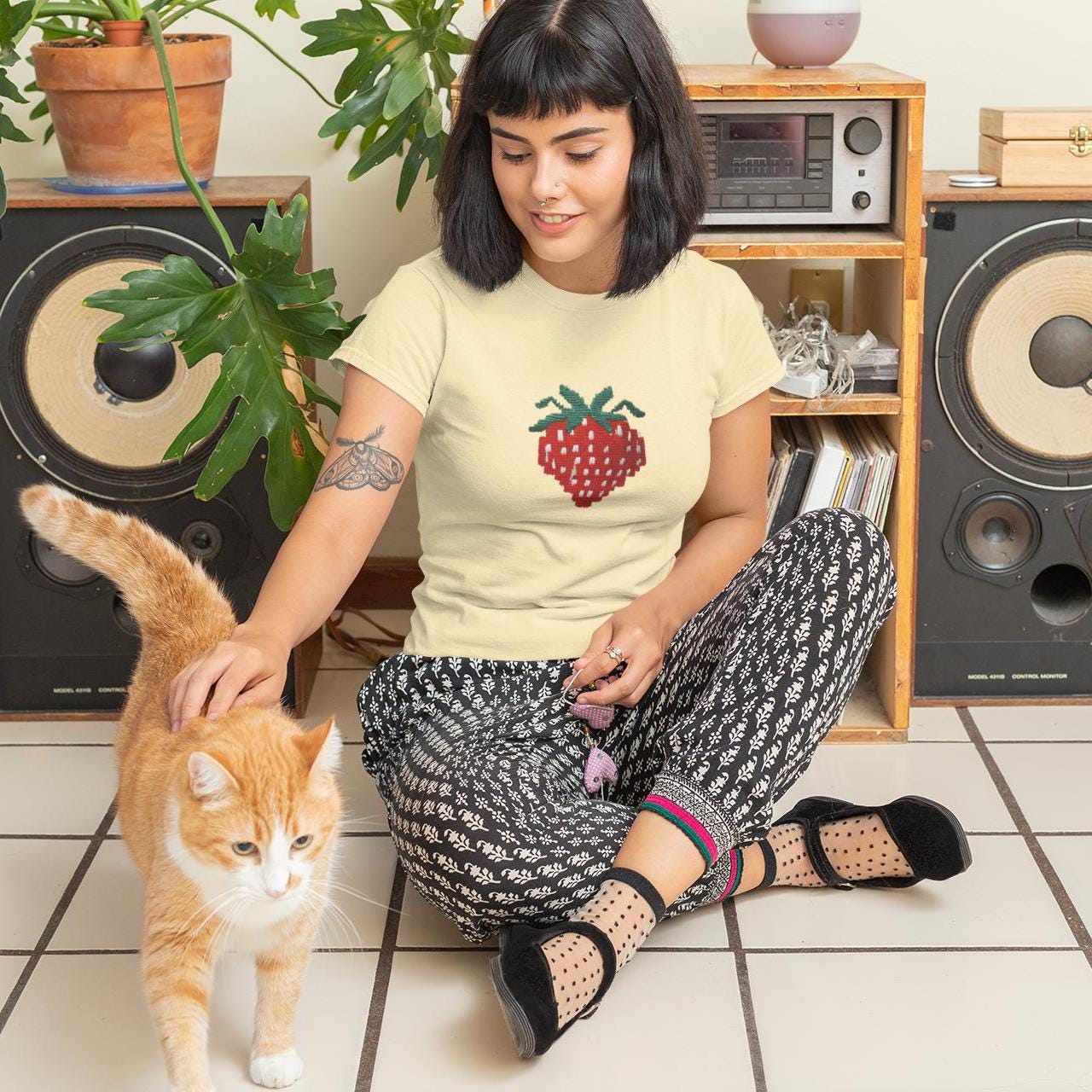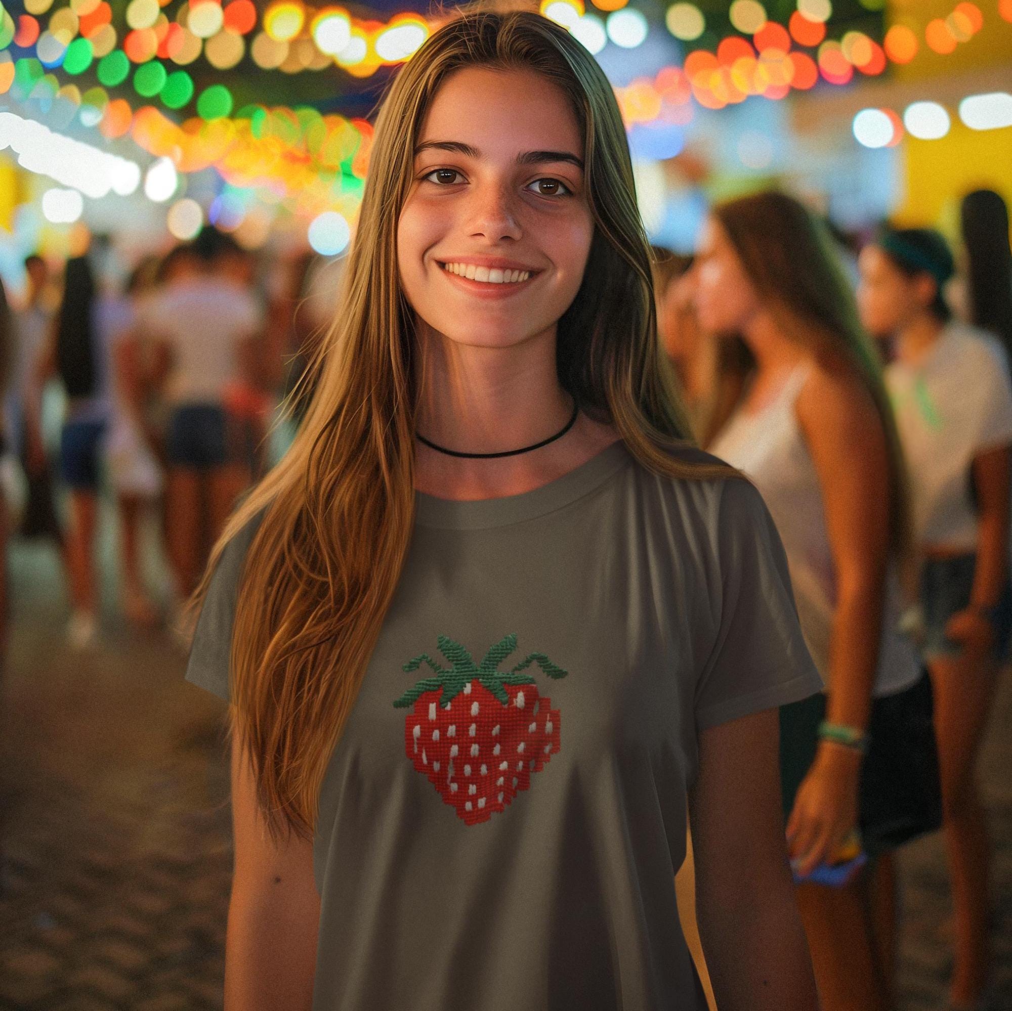 This cute, vintage, and retro Strawberry Shirt features a pixel art knit strawberry design, making it the perfect gift shirt for musicians or fans of indie clothing. This soft cotton unisex tee is a Comfort Colors 1717 garment-dyed t-shirt, making it a perfect fruit shirt for kids or adults. This retro, vintage, and pixel art kids shirt also makes a great knitted kids shirt, strawberry kids shirt, or gaming kids shirt, and is suitable as a Mother's Day gift or Birthday gift.