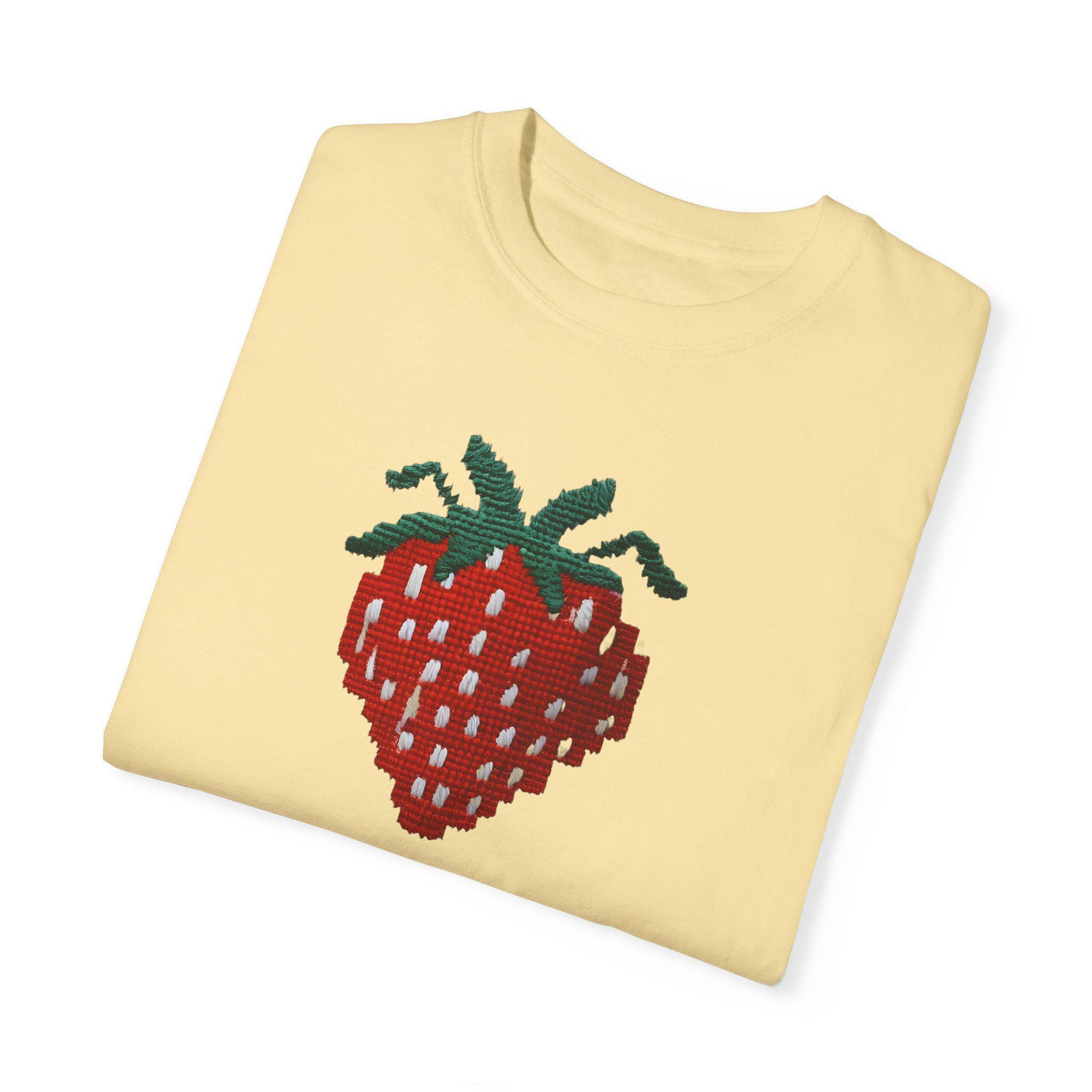 Crochet Art Strawberry Knit look Vintage Retro Cute Fruit Shirt Gift Indie Clothing Comfort Colors Pixel Knitted Retro look