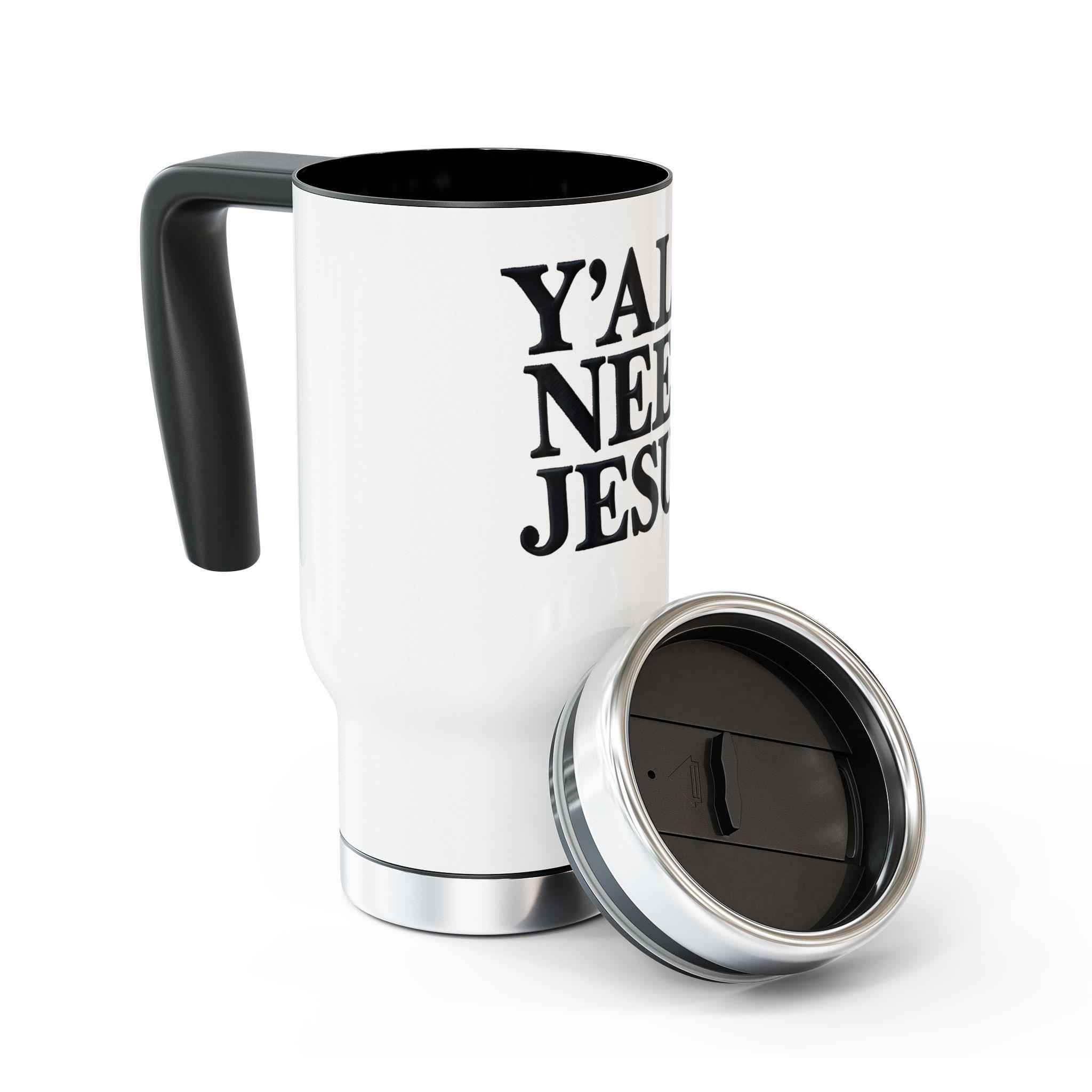 Jesus Travel Mug, 14oz Stainless Steel Religious Mug with Handle, Spill-Resistant Cap, Perfect Christian Gift for Men Women Teens