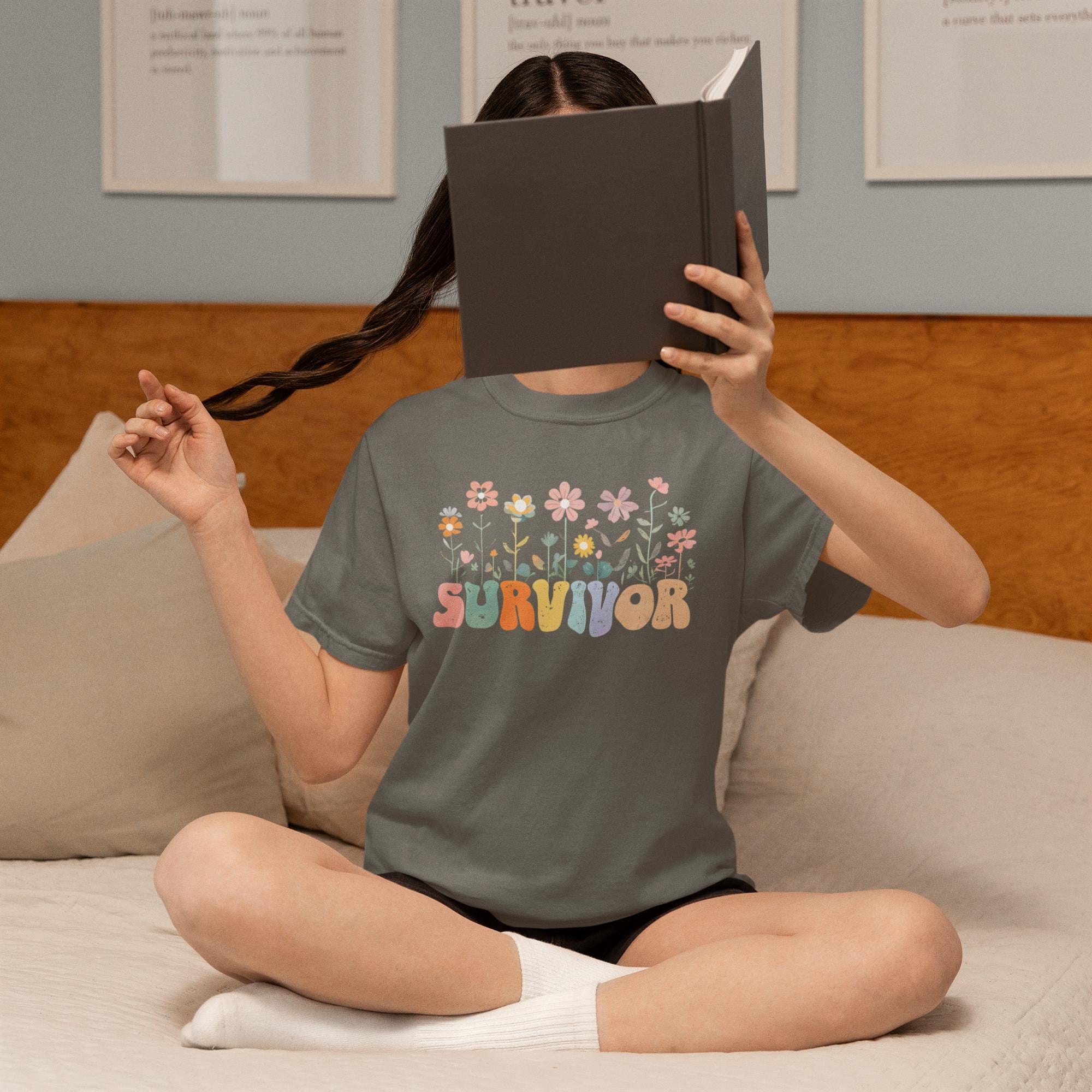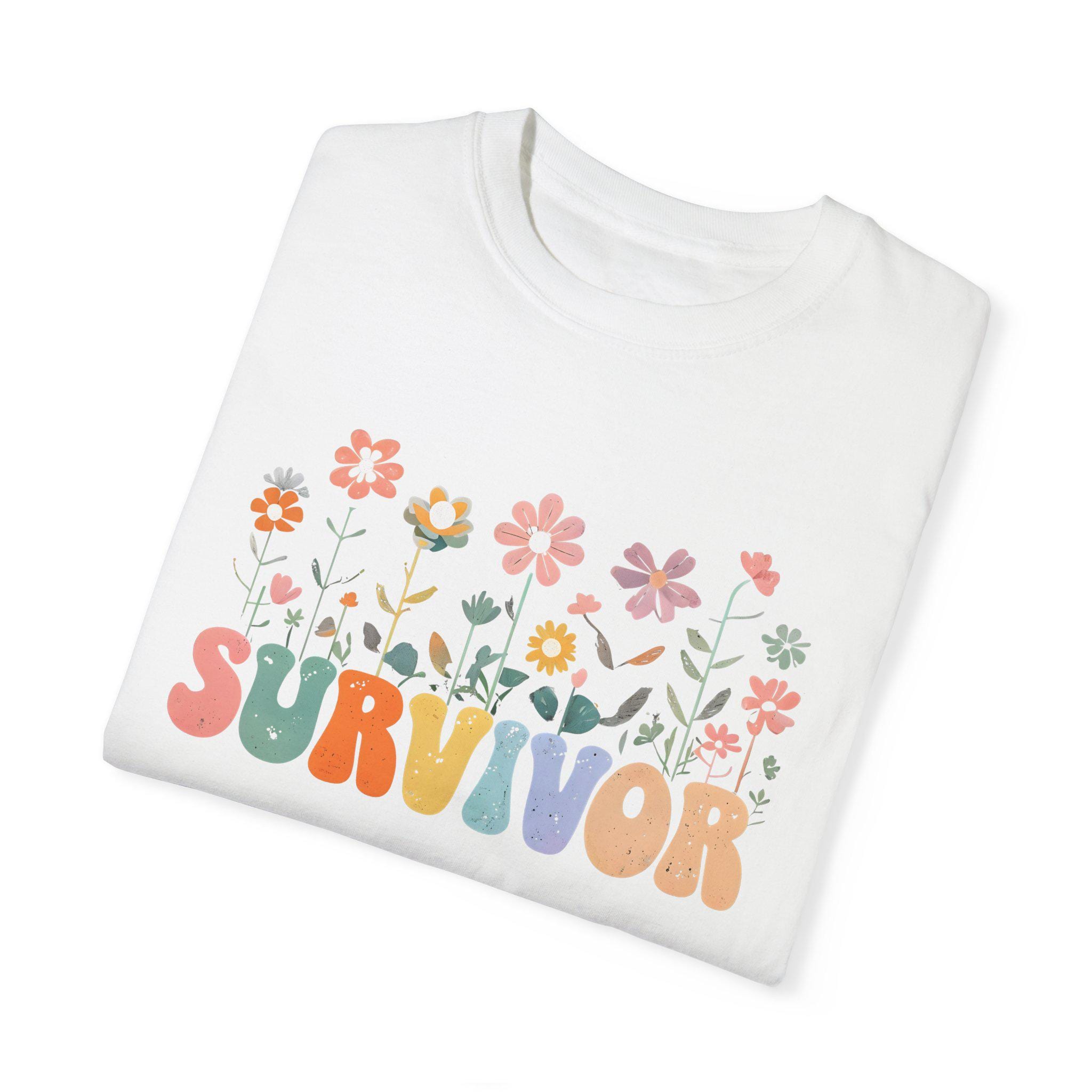 Celebrate resilience and renewal with this Survivor T-shirt, featuring soft spring colors and delicate wildflowers as a symbol of growth, strength, and perseverance. Printed on a soft-washed Comfort Colors 1717 tee, this vintage-inspired floral shirt is perfect for survivors of all kinds—whether overcoming challenges, embracing healing, or stepping into a new season of life. This cozy and meaningful tee is a beautiful reminder that you are strong, you are blooming, and you are a survivor.