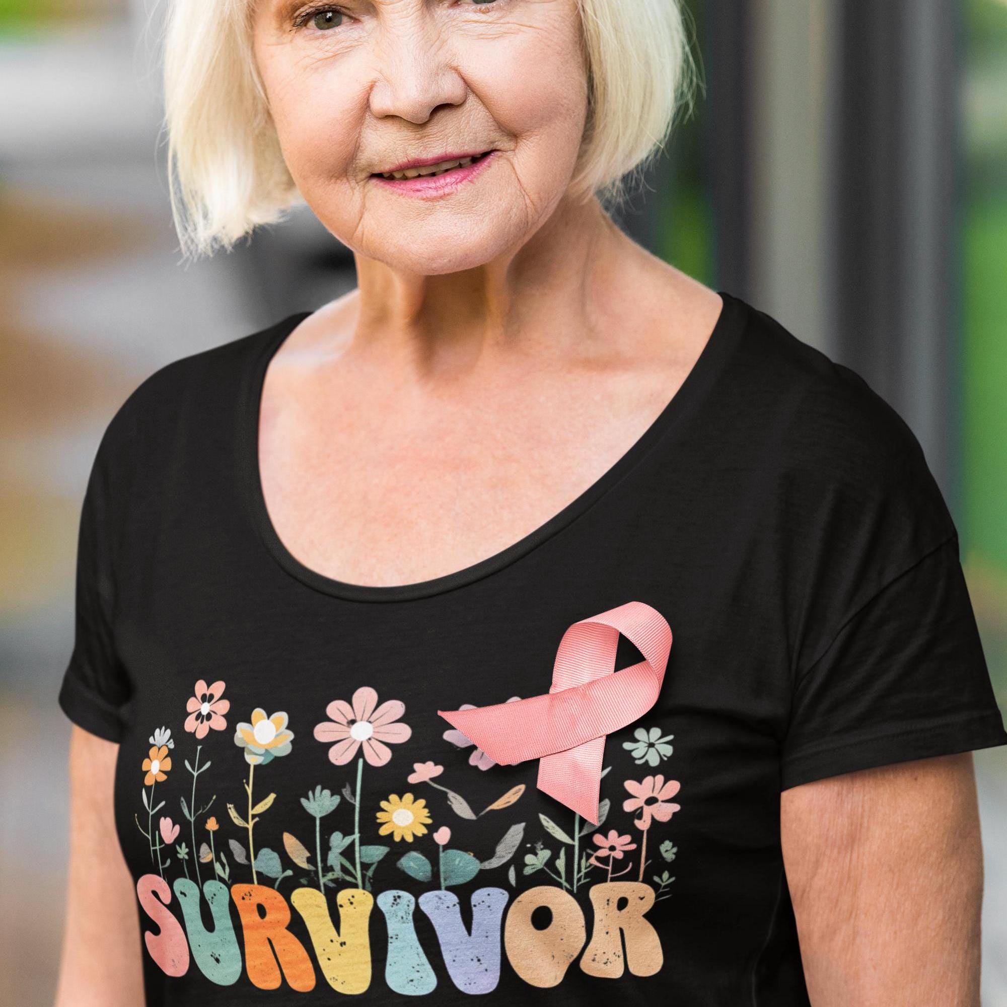 ✔️ Elegant “Survivor” text in soft spring hues with wildflower accents