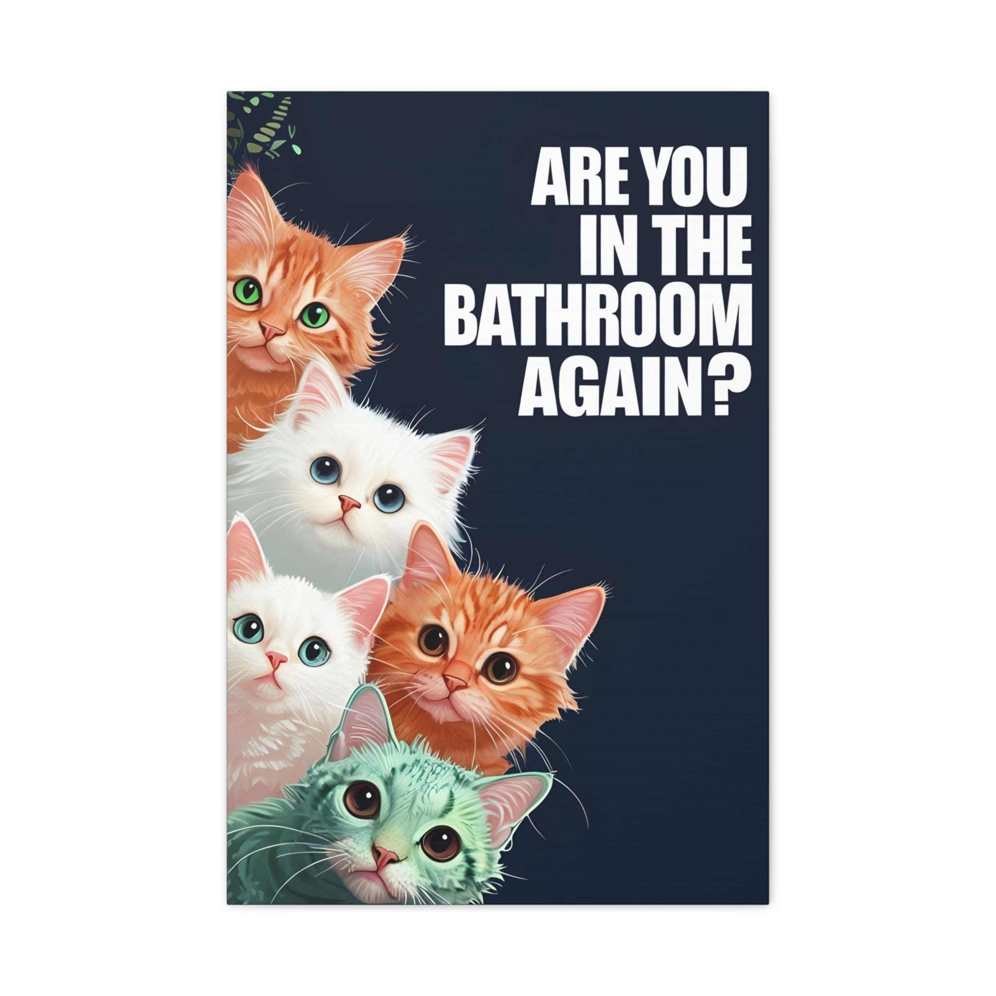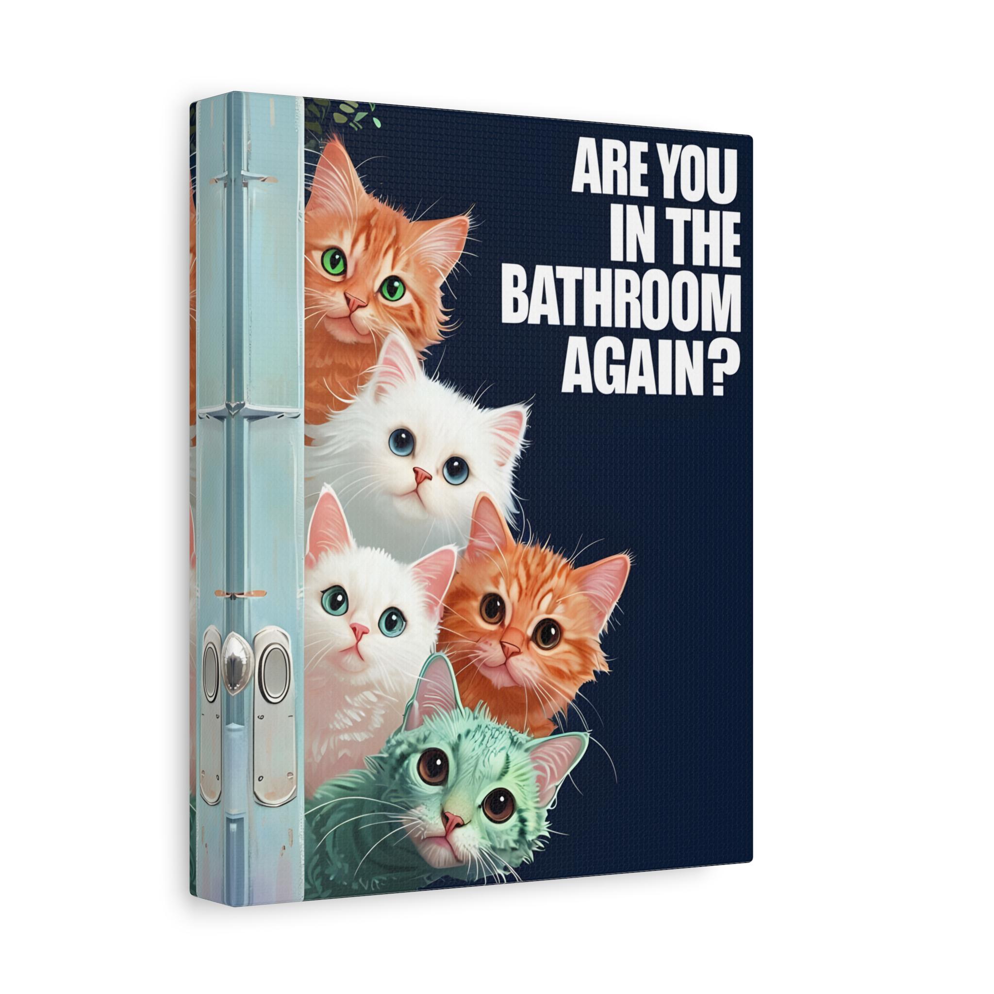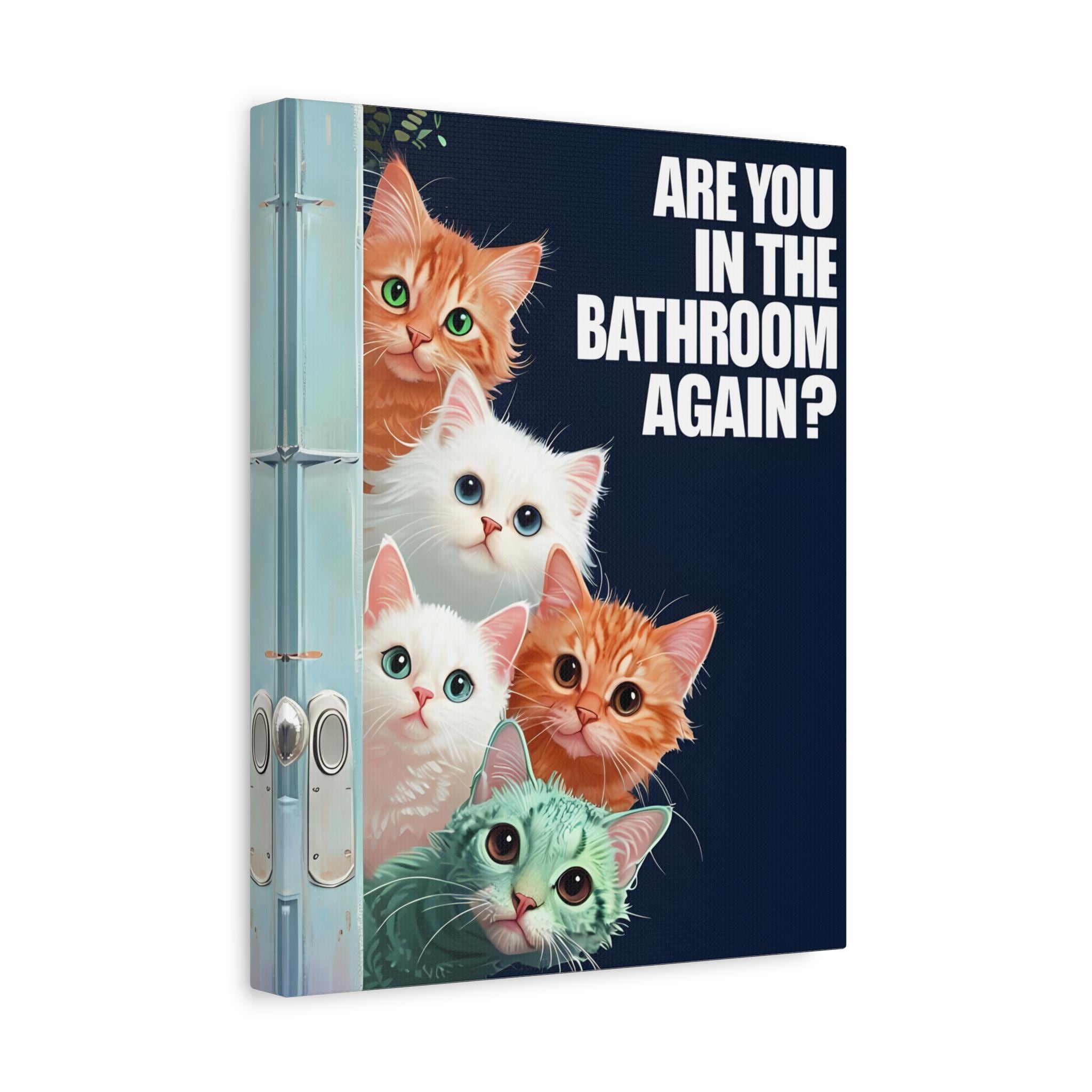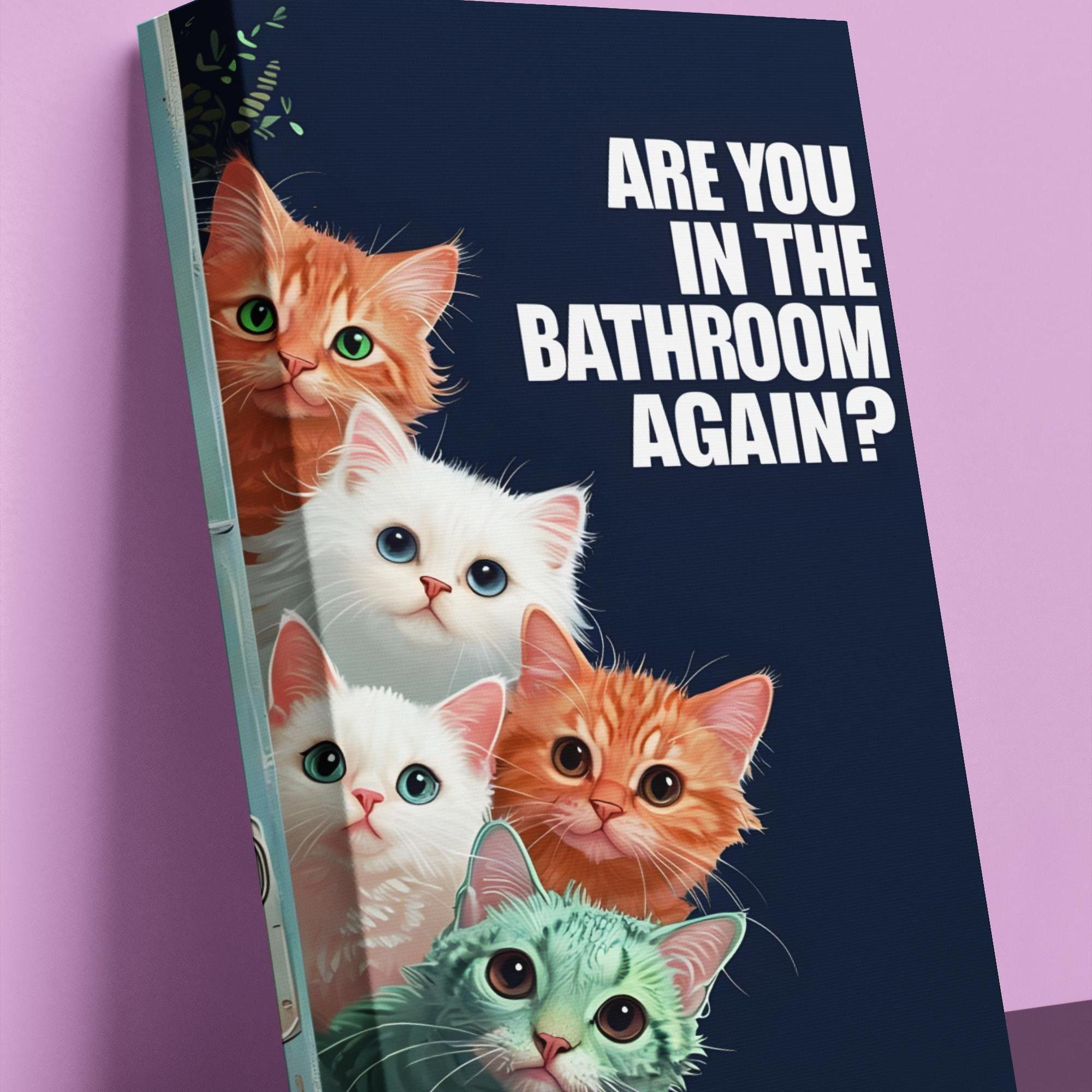 Funny Cat Bathroom Wall Canvas | 'Are You In the Bathroom Again?' Cats Peeking Art | Quirky Bathroom Decor | Humorous Cat Lover Gift"