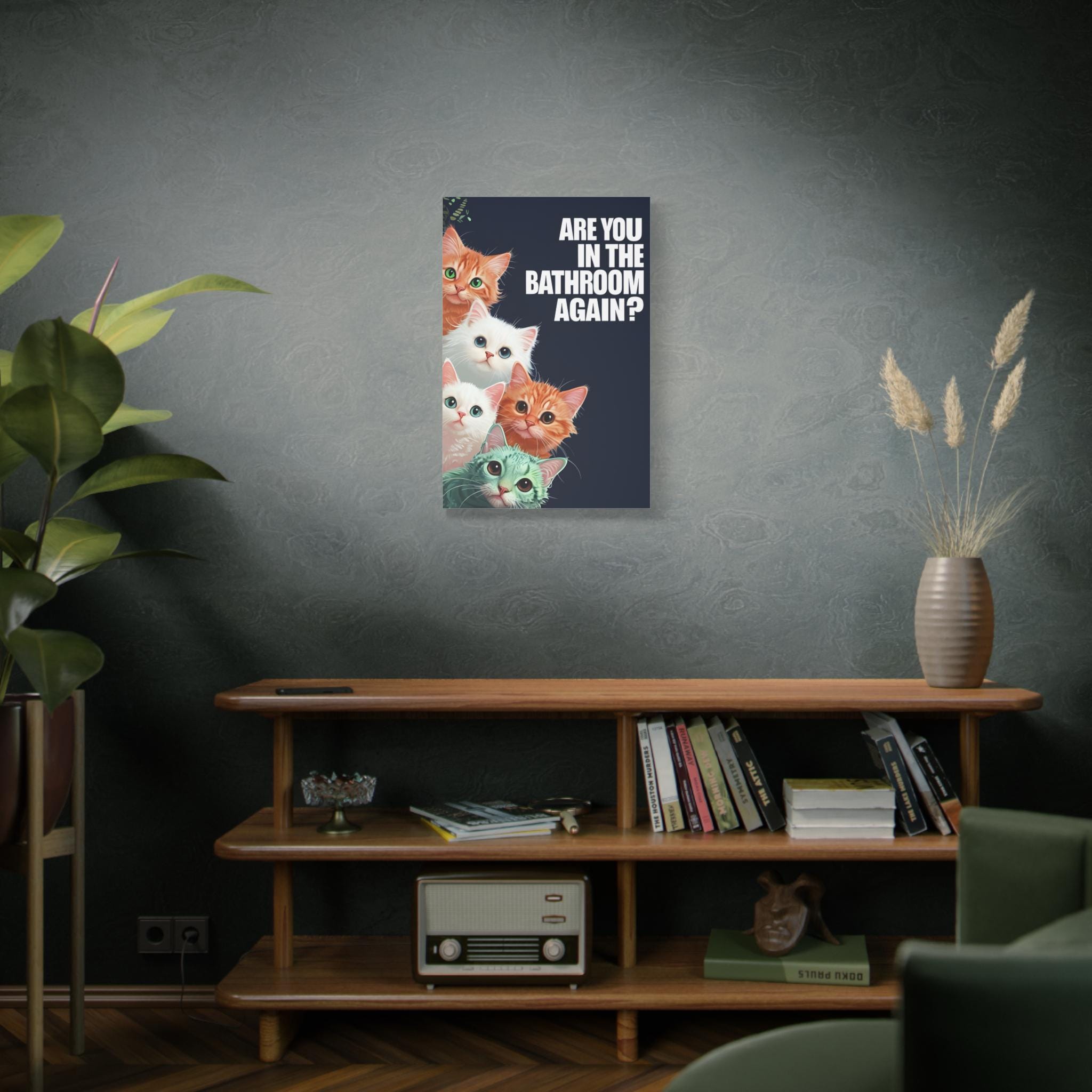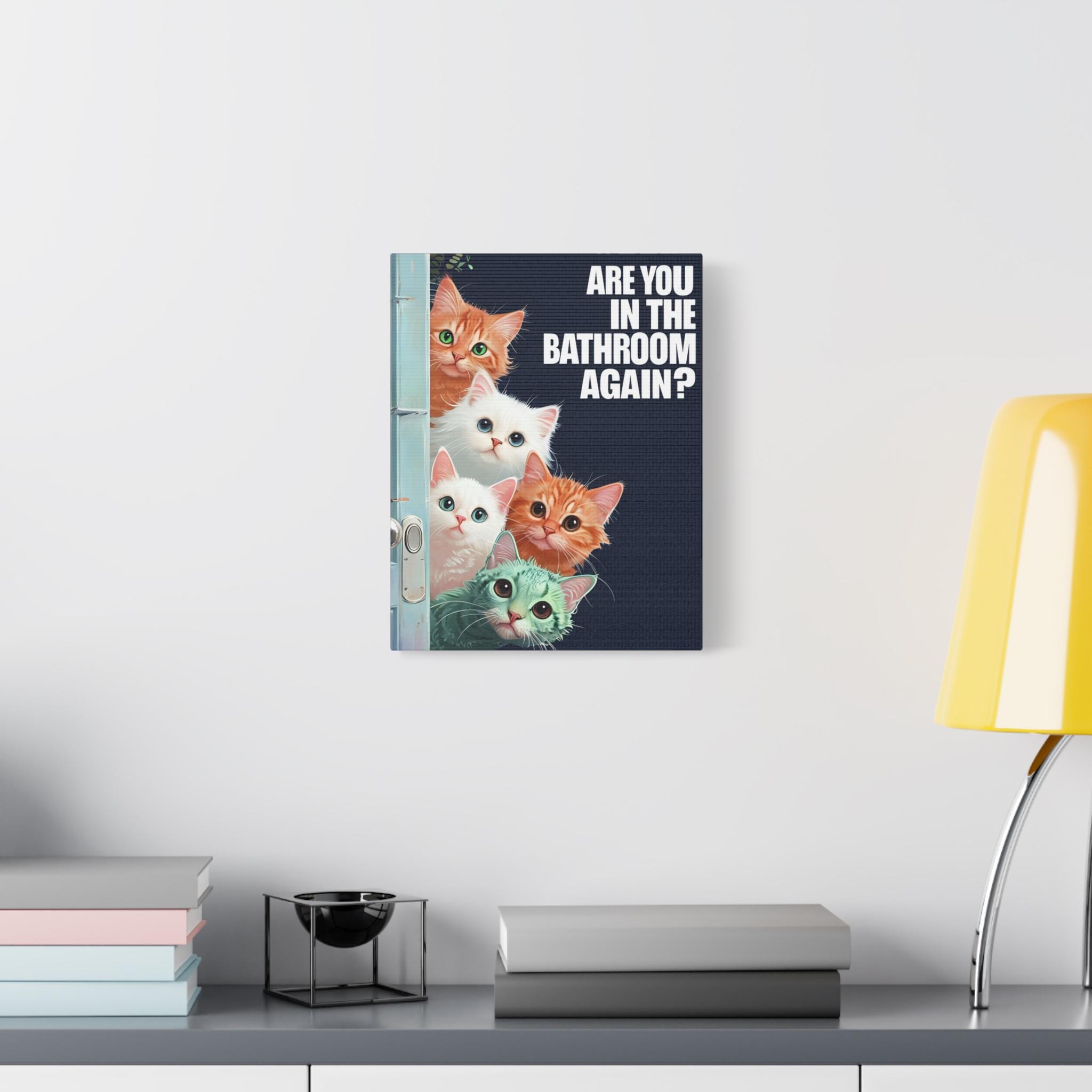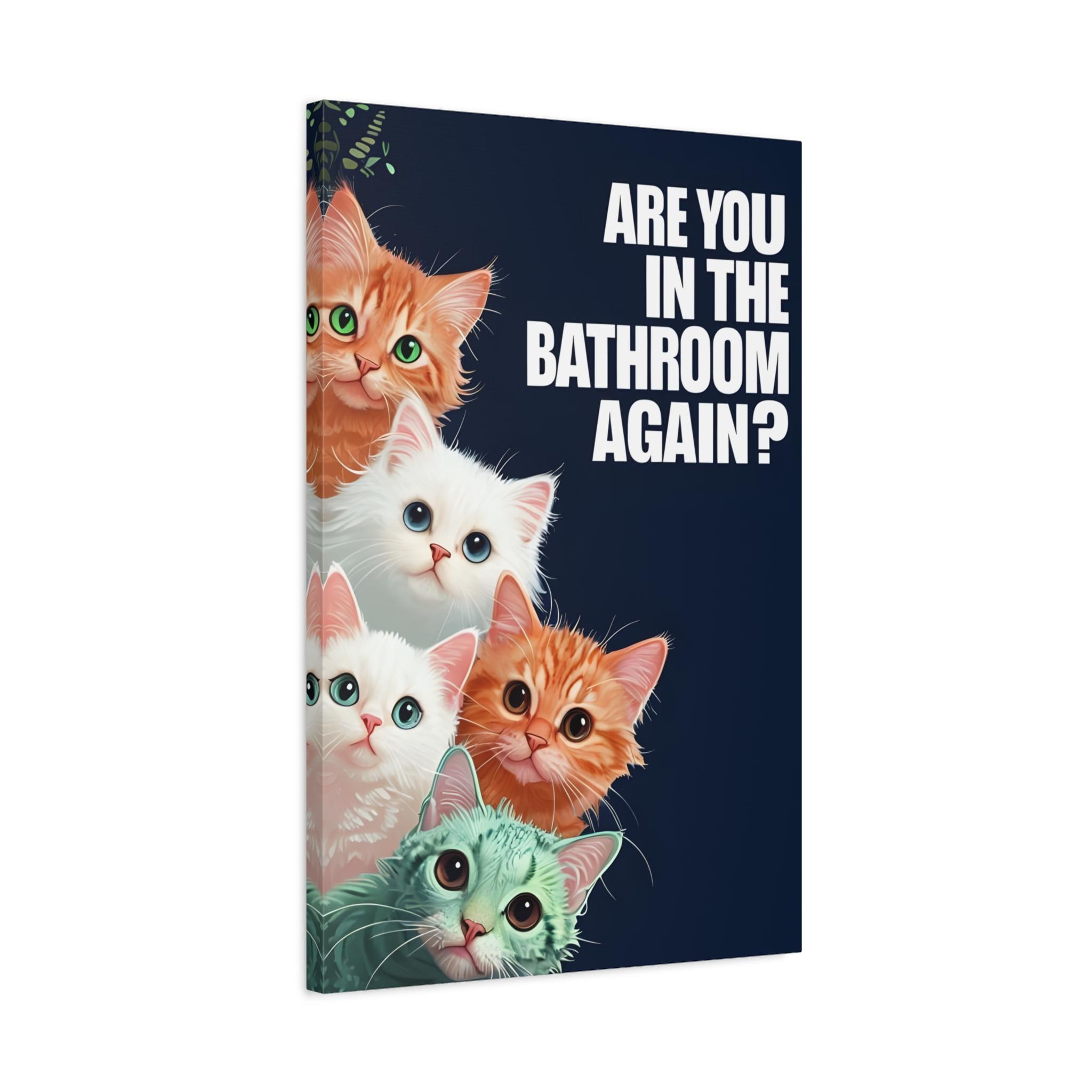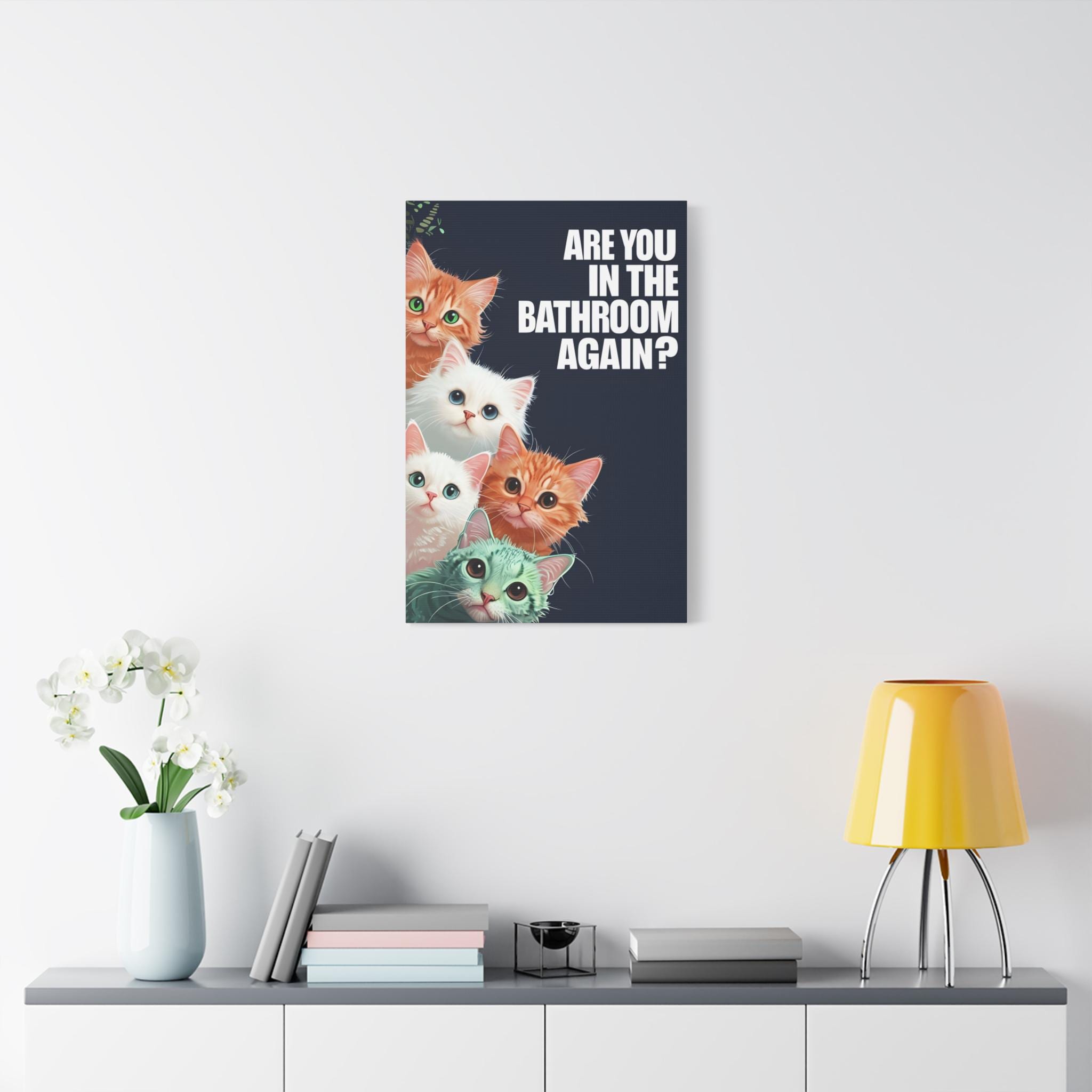 Funny Cat Bathroom Wall Canvas | 'Are You In the Bathroom Again?' Cats Peeking Art | Quirky Bathroom Decor | Humorous Cat Lover Gift"