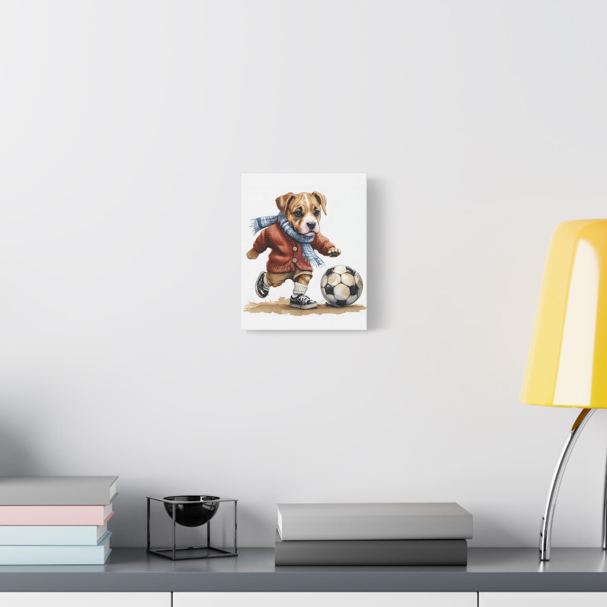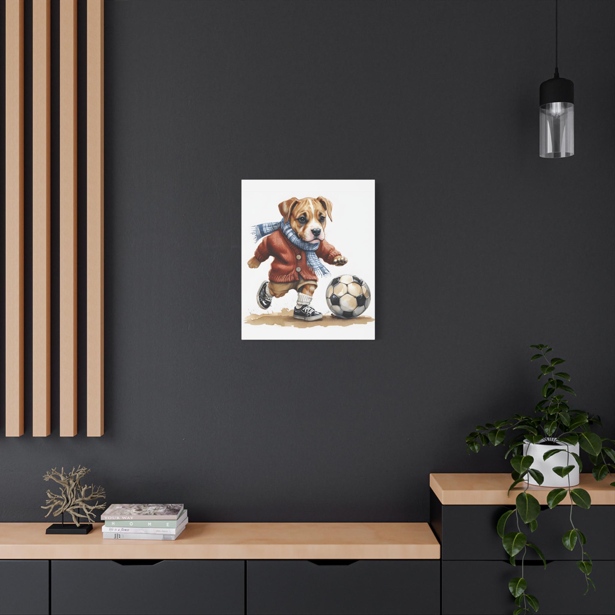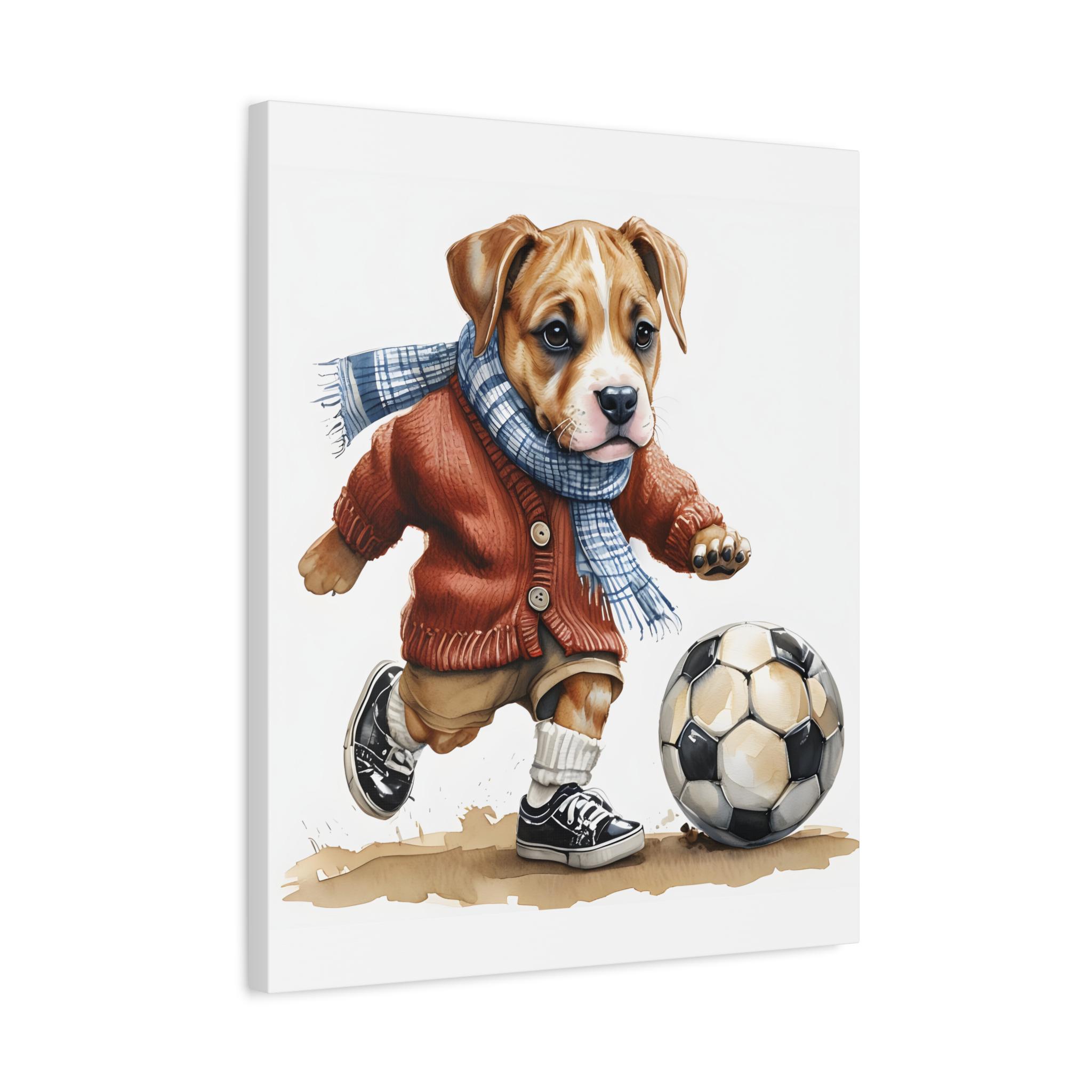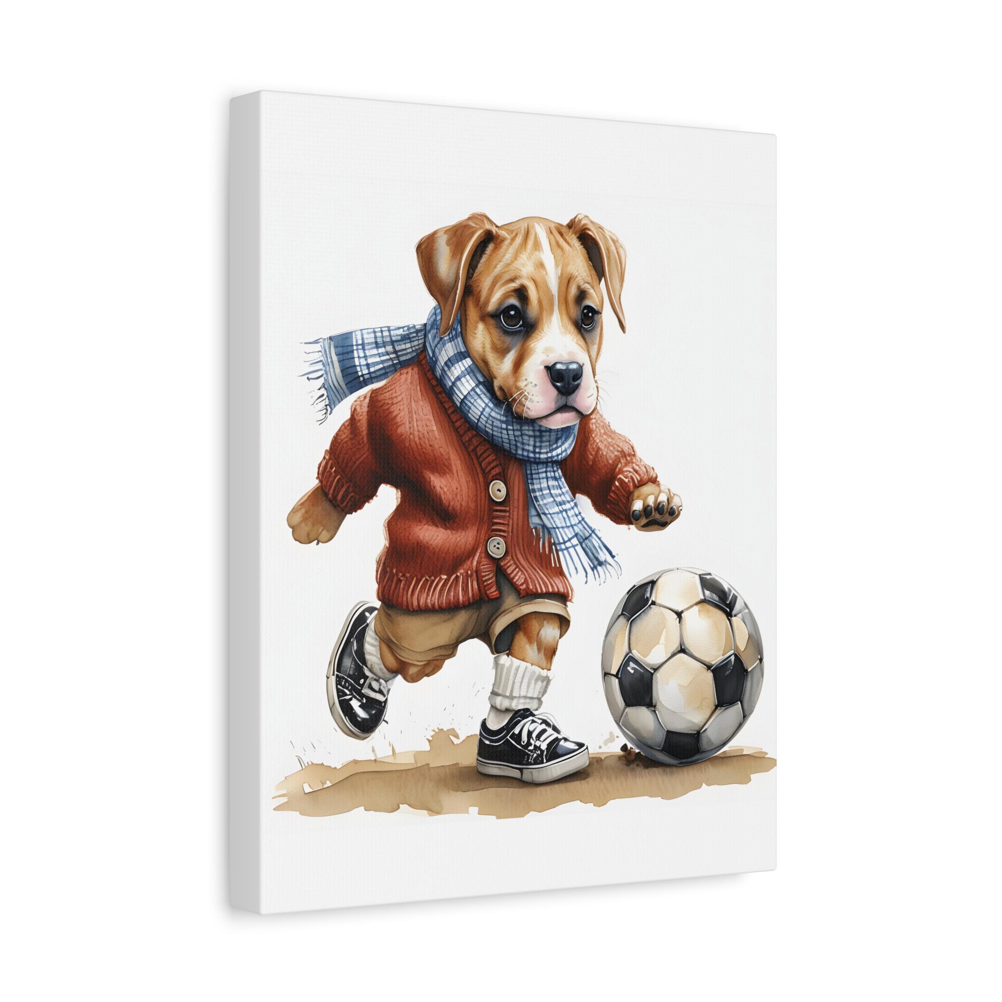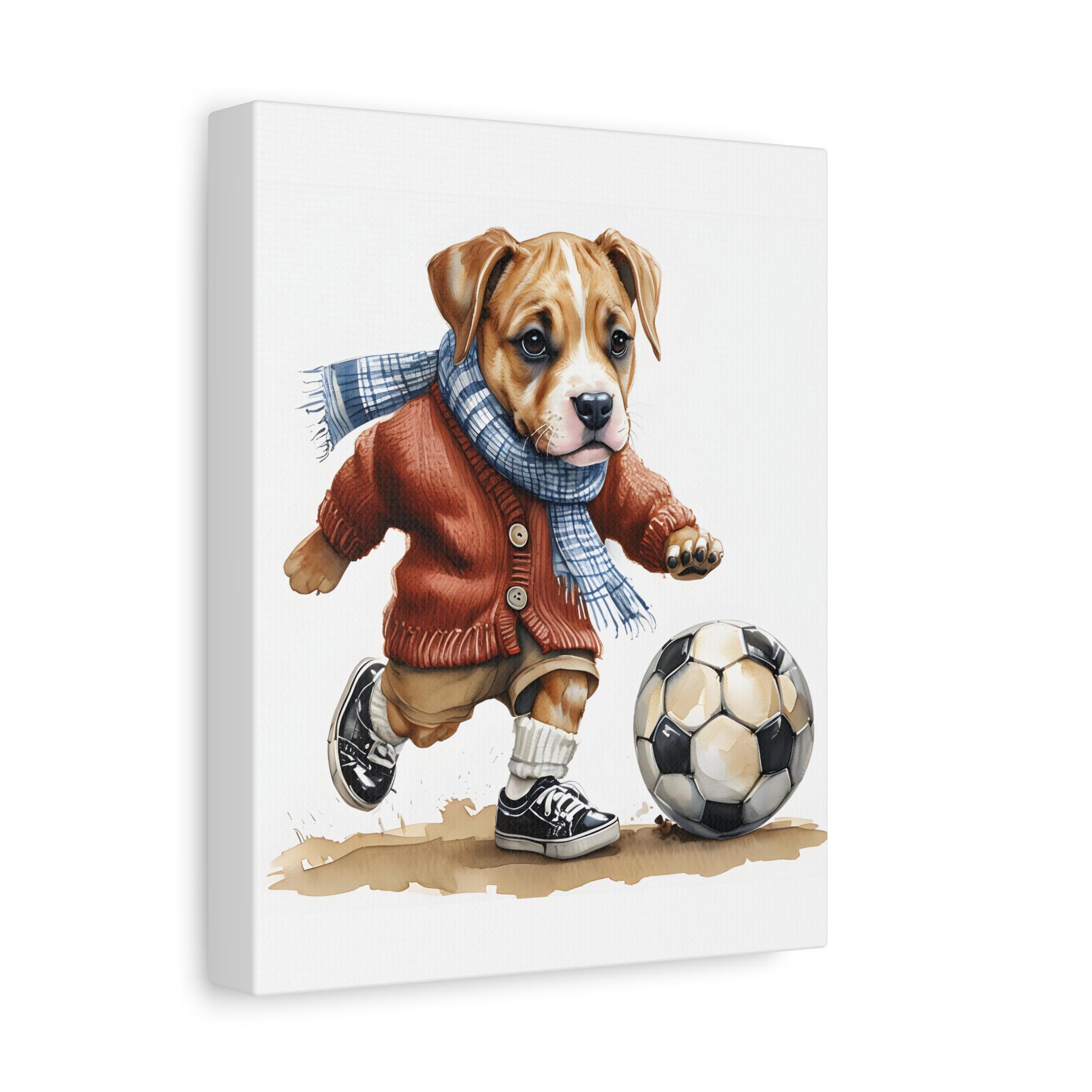 Dog Playing Soccer Canvas Print: Whimsical Sports Theme Wall Art