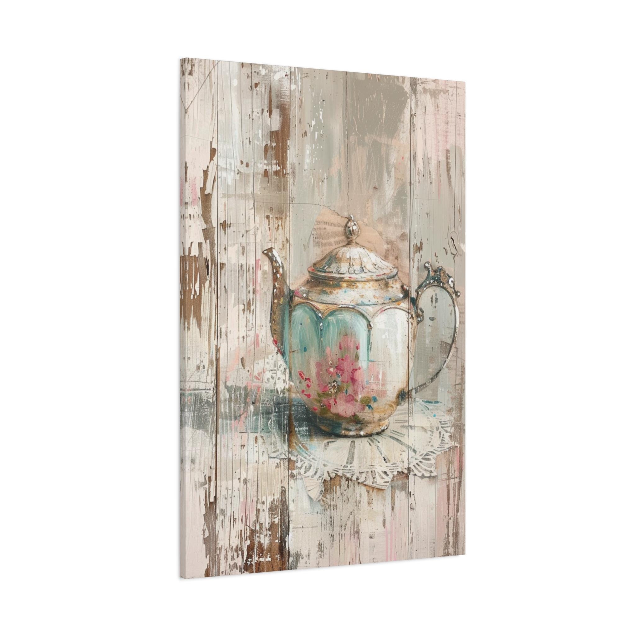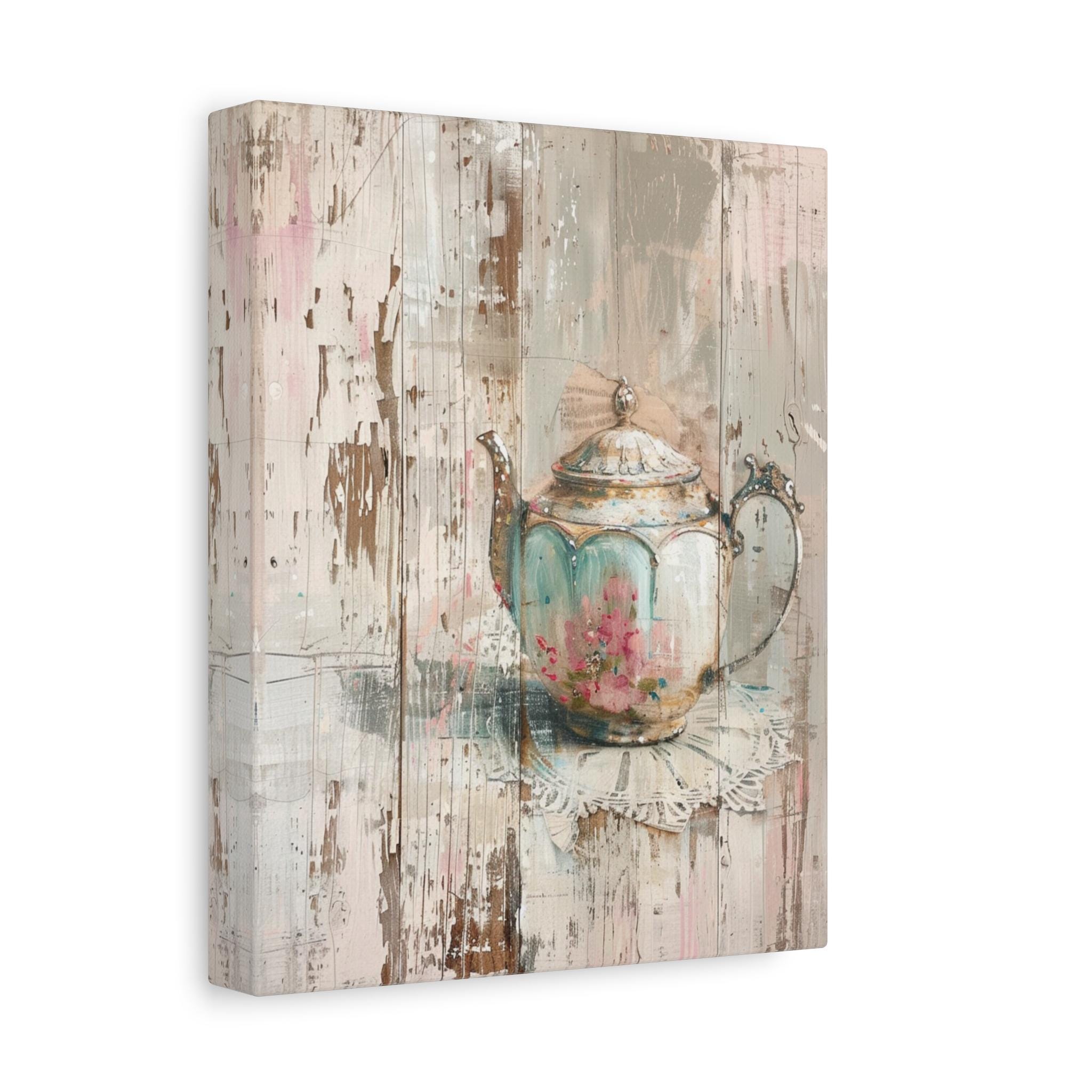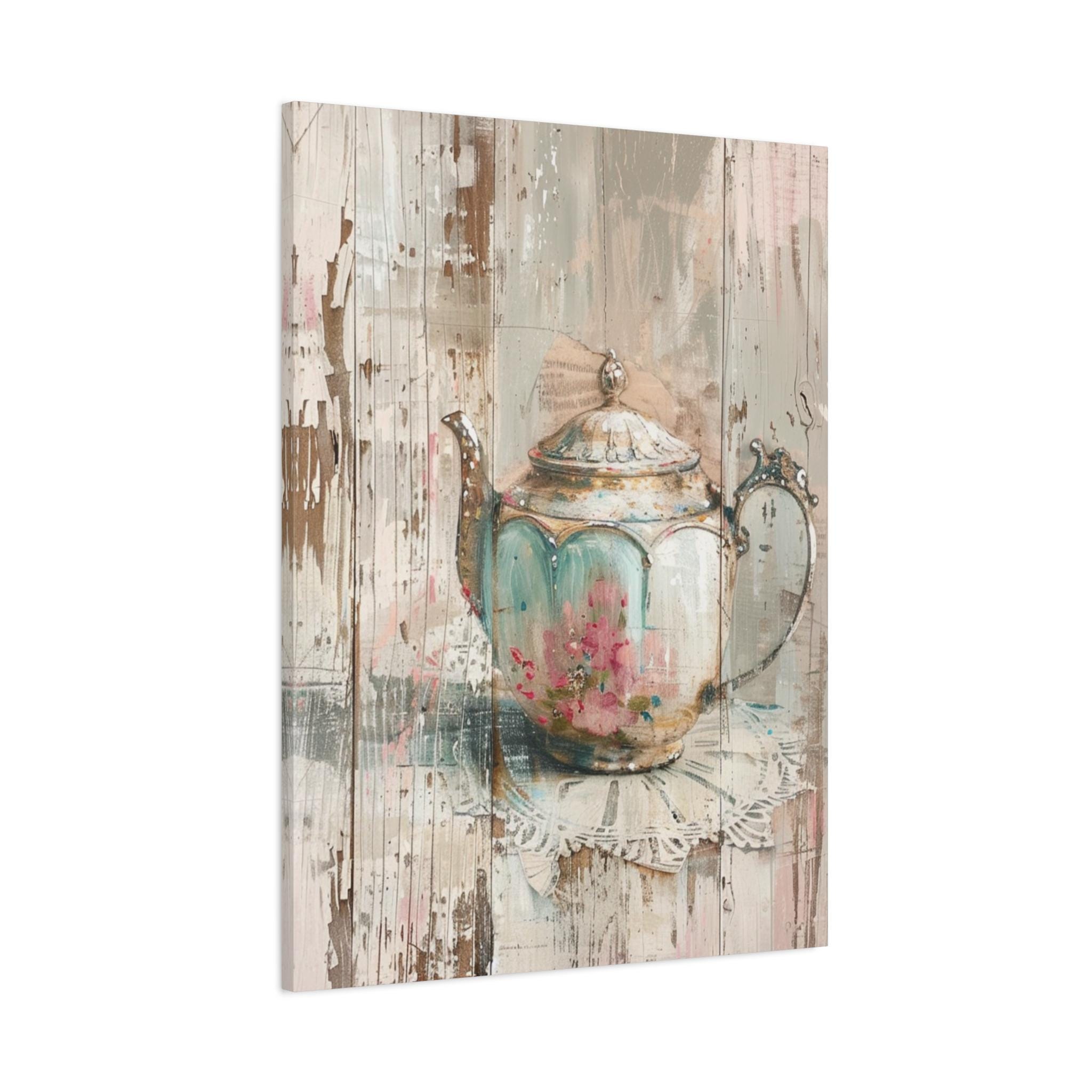 Add a touch of vintage charm to your kitchen or tea room with this beautiful Shabby Chic Teapot Canvas Wall Art. Perfect for farmhouse, cottage, or rustic decor styles, this piece captures the nostalgic elegance of a classic teapot with a distressed, aged look that exudes warmth and character. The soft, muted palette highlights the delicate details of the teapot, making it an inviting focal point in any space.