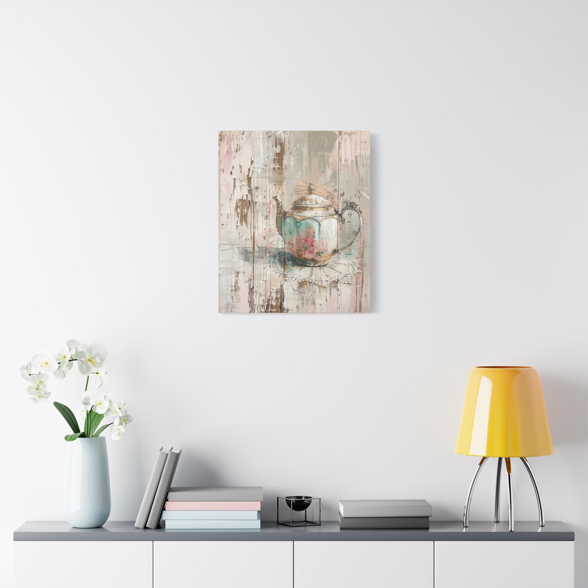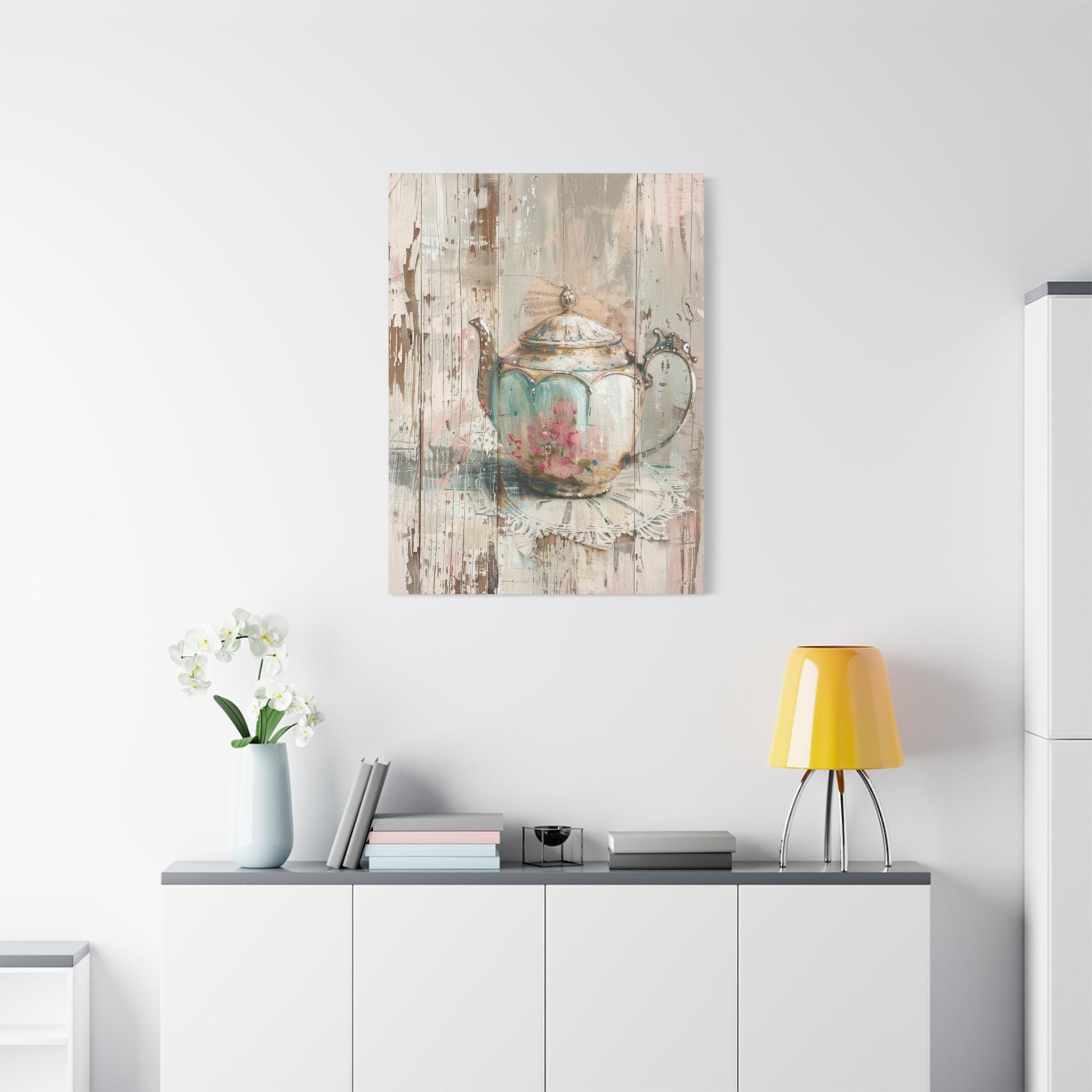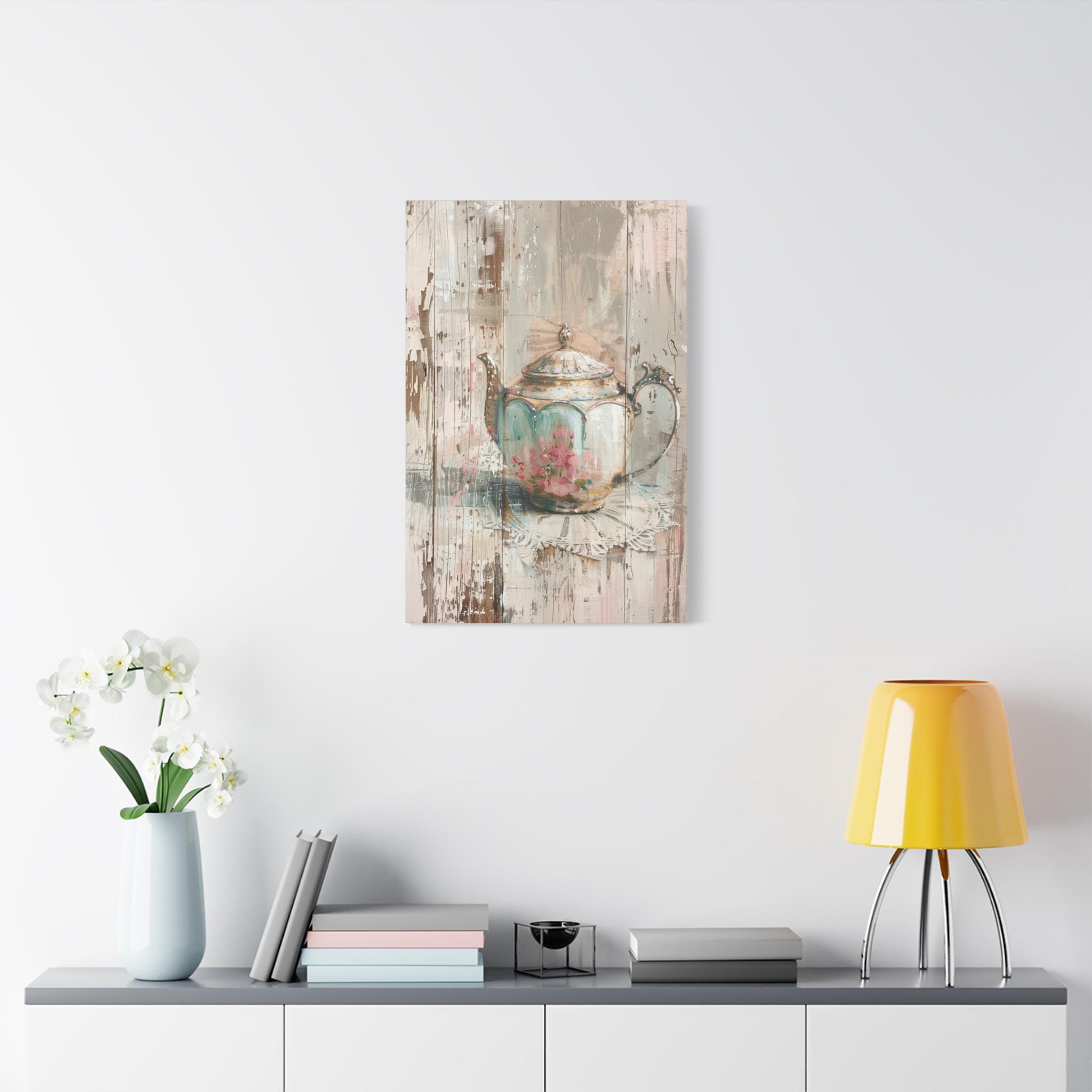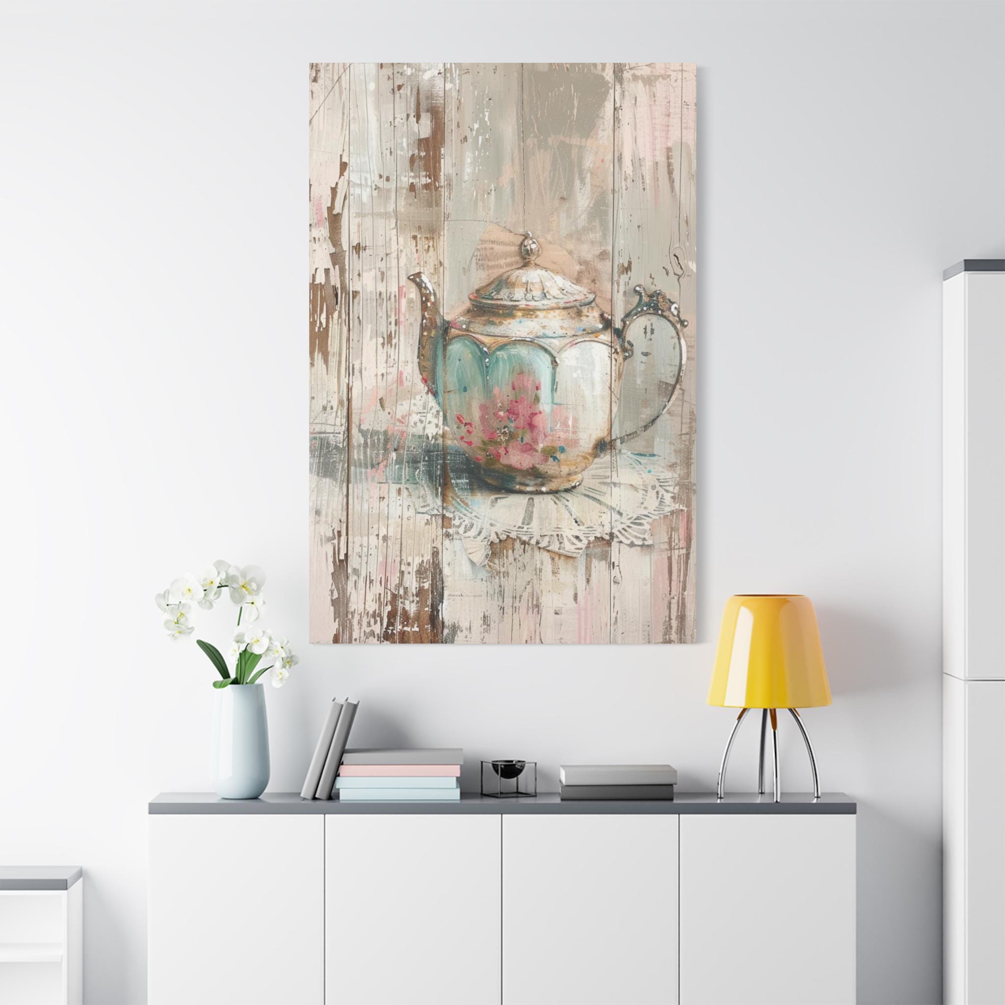 Add a touch of vintage charm to your kitchen or tea room with this beautiful Shabby Chic Teapot Canvas Wall Art. Perfect for farmhouse, cottage, or rustic decor styles, this piece captures the nostalgic elegance of a classic teapot with a distressed, aged look that exudes warmth and character. The soft, muted palette highlights the delicate details of the teapot, making it an inviting focal point in any space.