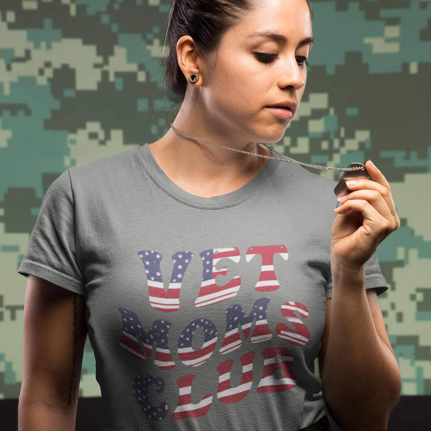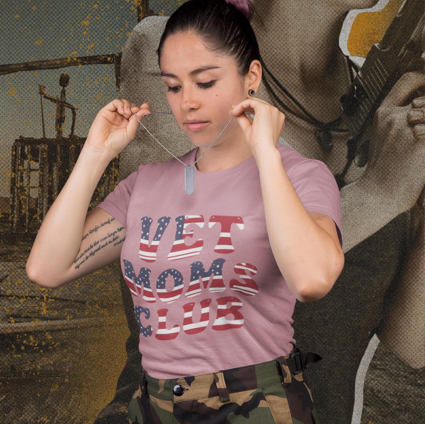 ✔️ Bold “Vet Moms Club” design in patriotic red, white & blue