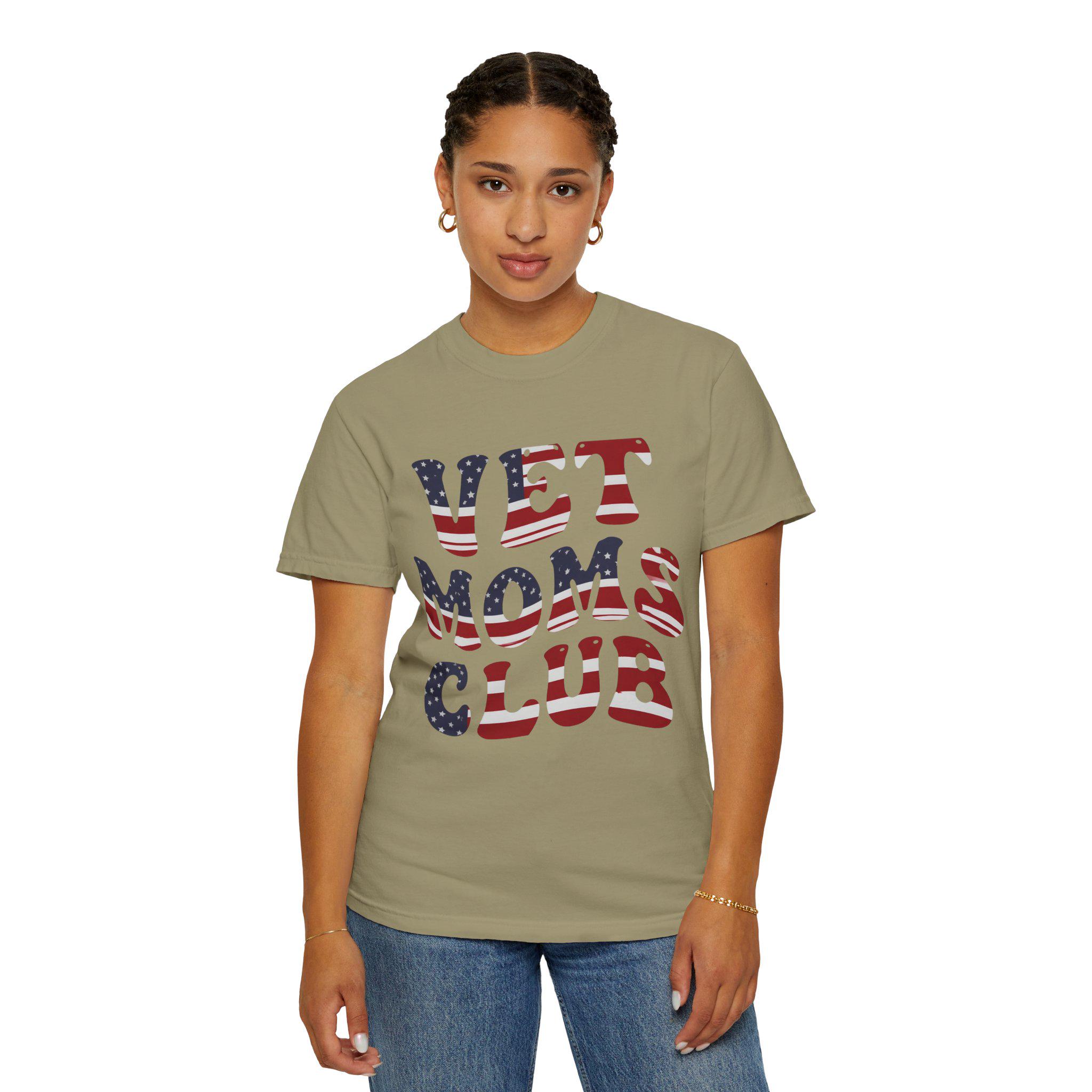 For the strong, proud, and patriotic veteran moms, this Vet Moms Club T-shirt is the perfect way to show off military pride and motherhood. Featuring bold red, white, and blue lettering, this soft-washed Comfort Colors 1717 tee offers a relaxed, vintage-inspired fit that’s both comfortable and stylish. Whether you're a retired servicewoman, an active-duty mom, or a military spouse, this USA-themed tee is a must-have for any woman who has served both her country and her family.