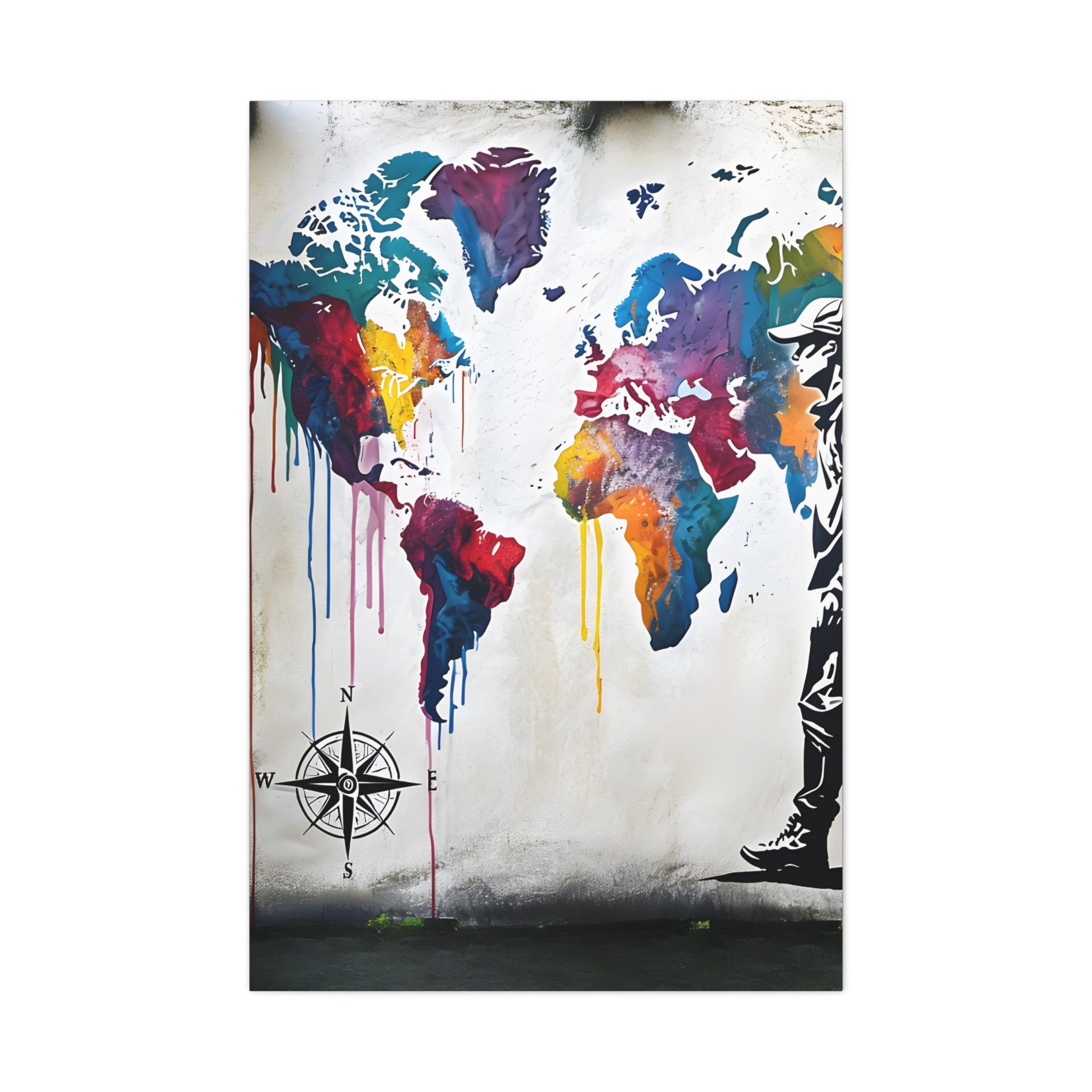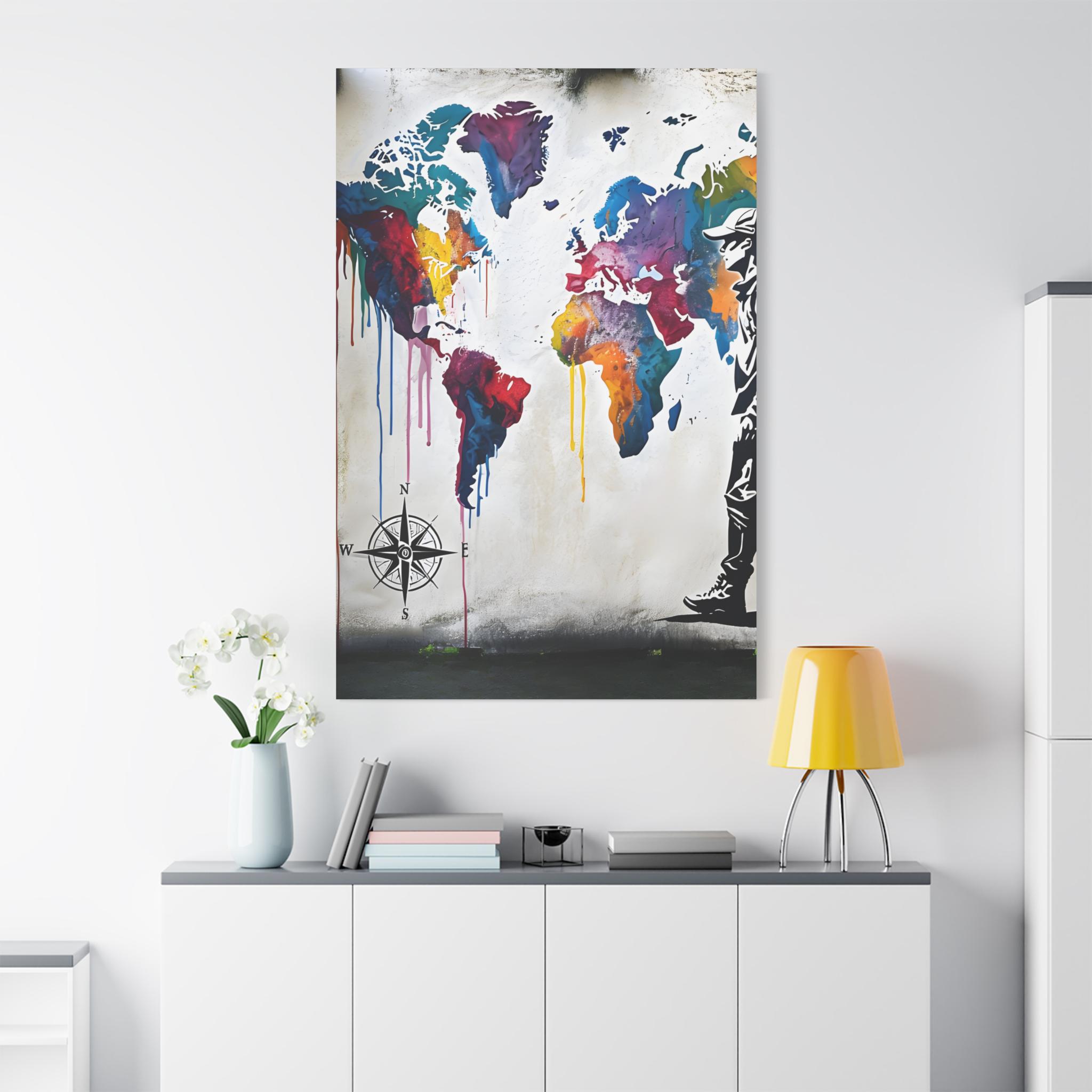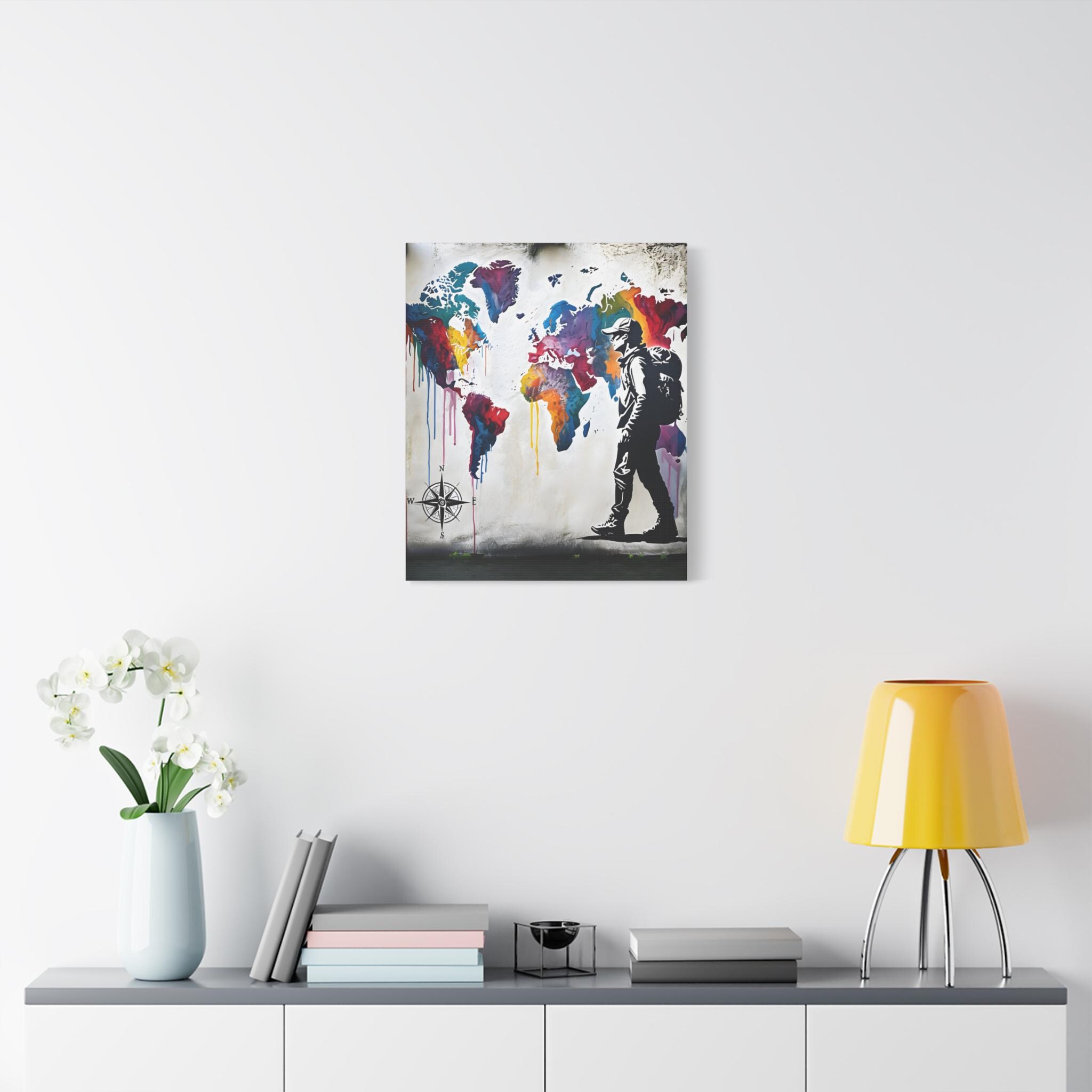Ignite your wanderlust and love for adventure with this Vibrant World Map Mural Canvas, featuring a bold, colorful world map with a traveler’s silhouette. This high-quality canvas print is perfect for globetrotters, dreamers, and travel enthusiasts who love exploring new places and embracing the journey. Whether you're decorating your home, office, or travel-inspired space, this eye-catching artwork is a daily reminder to explore, dream, and discover.