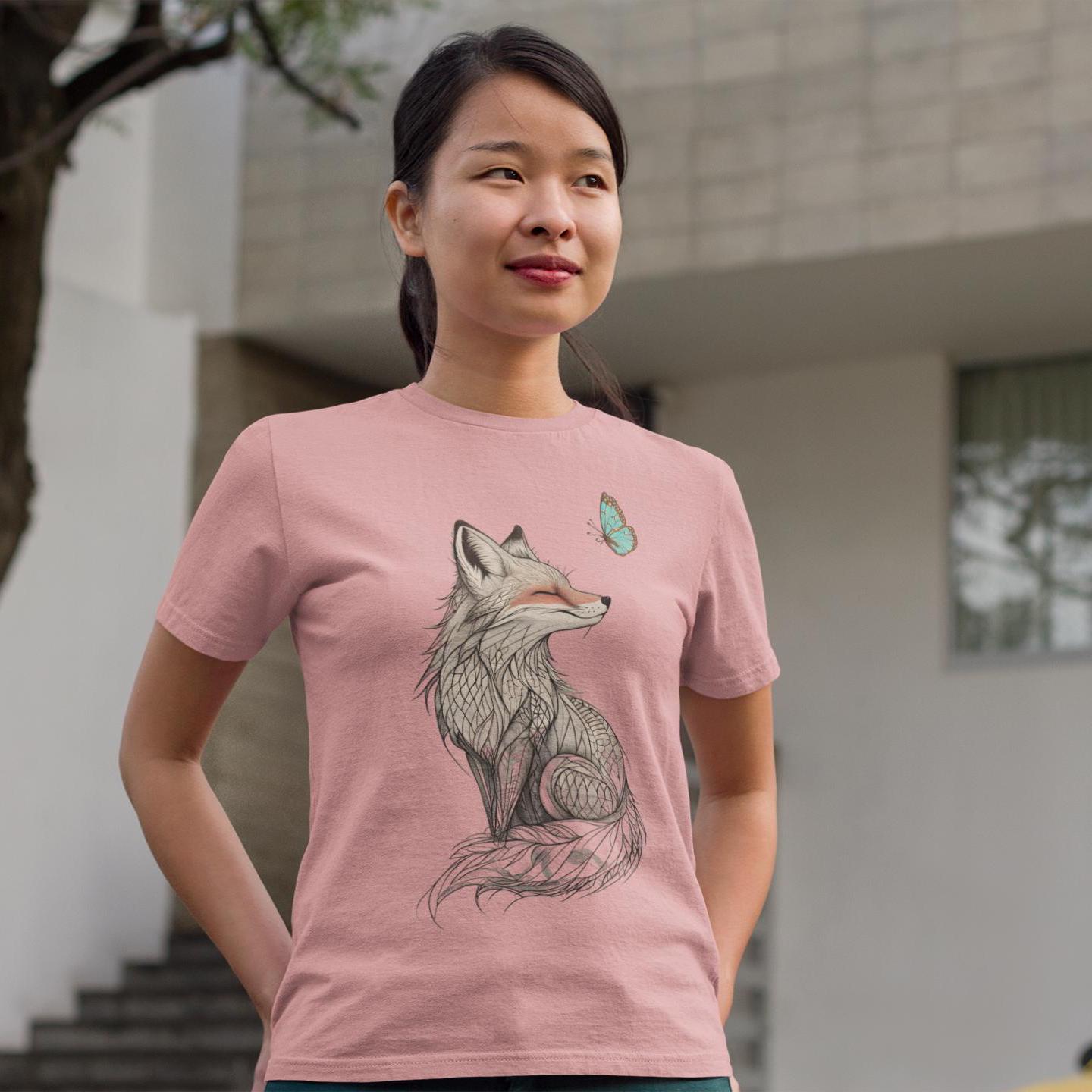 ✔️ Intricate hand-drawn fox with butterfly for a delicate artistic touch
