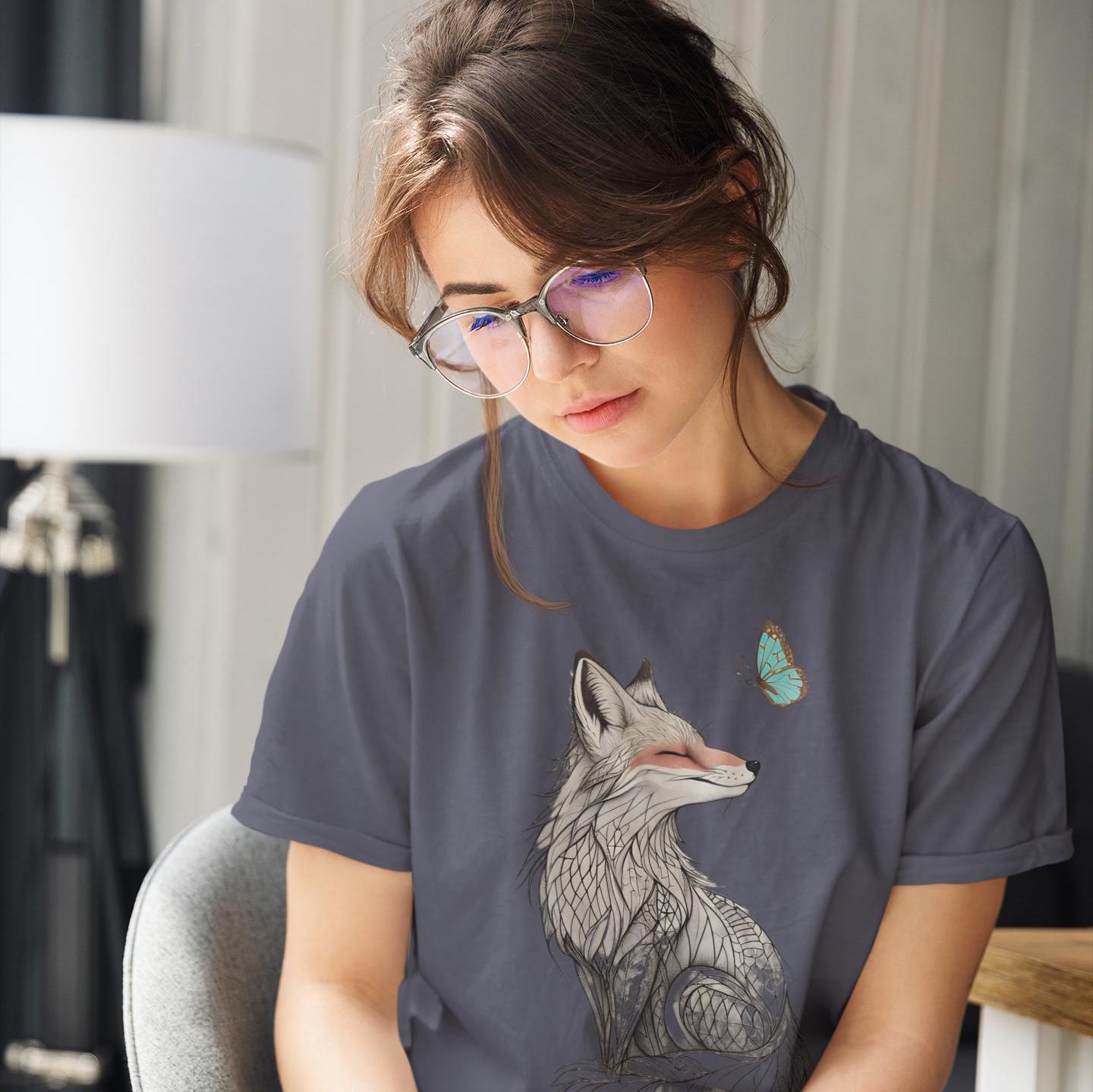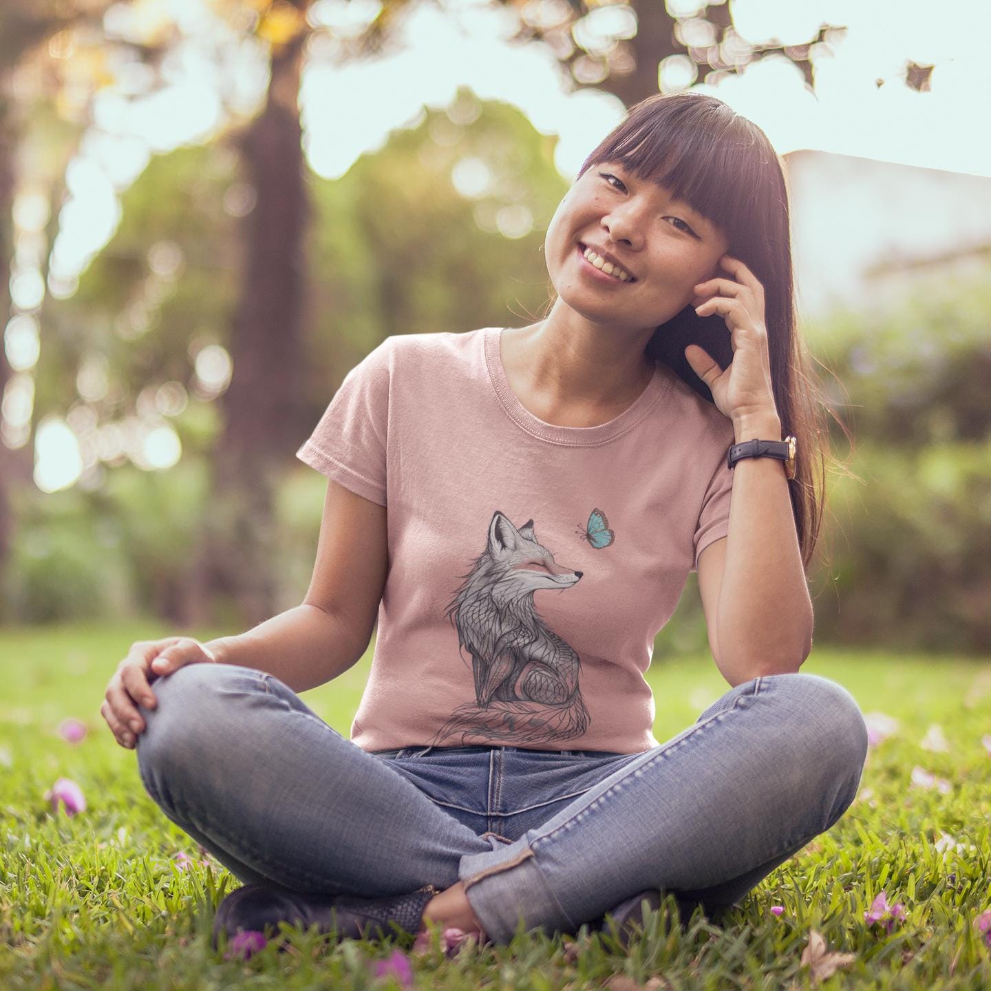 Fox and Butterfly T-Shirt: Whimsical Wildlife, Boho Chic Bella Canvas Tee