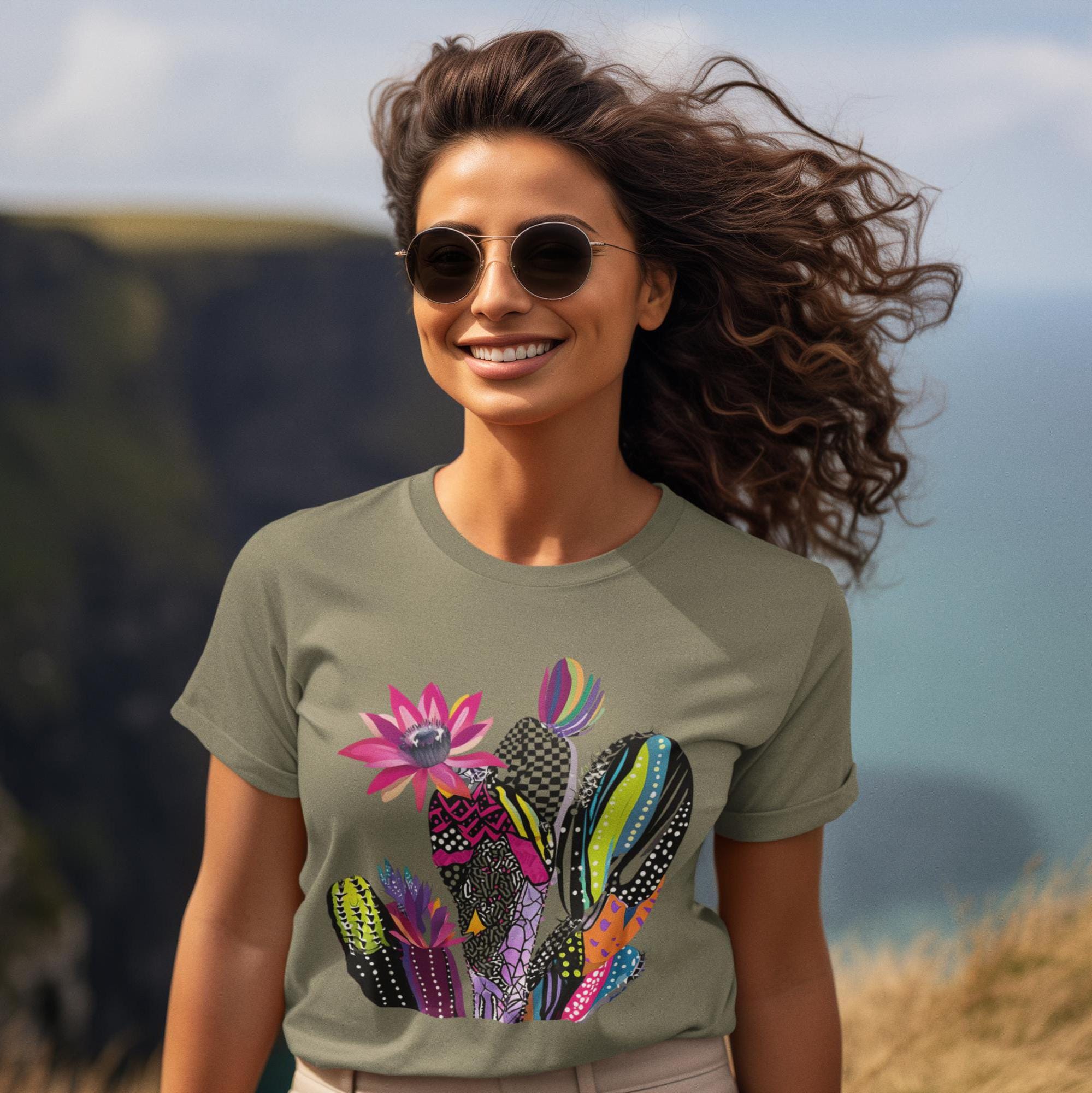 Cactus T-Shirt Vibrant Southwest Graphic Tee Colorful Summer Boho Shirt Gift for Nature Lovers