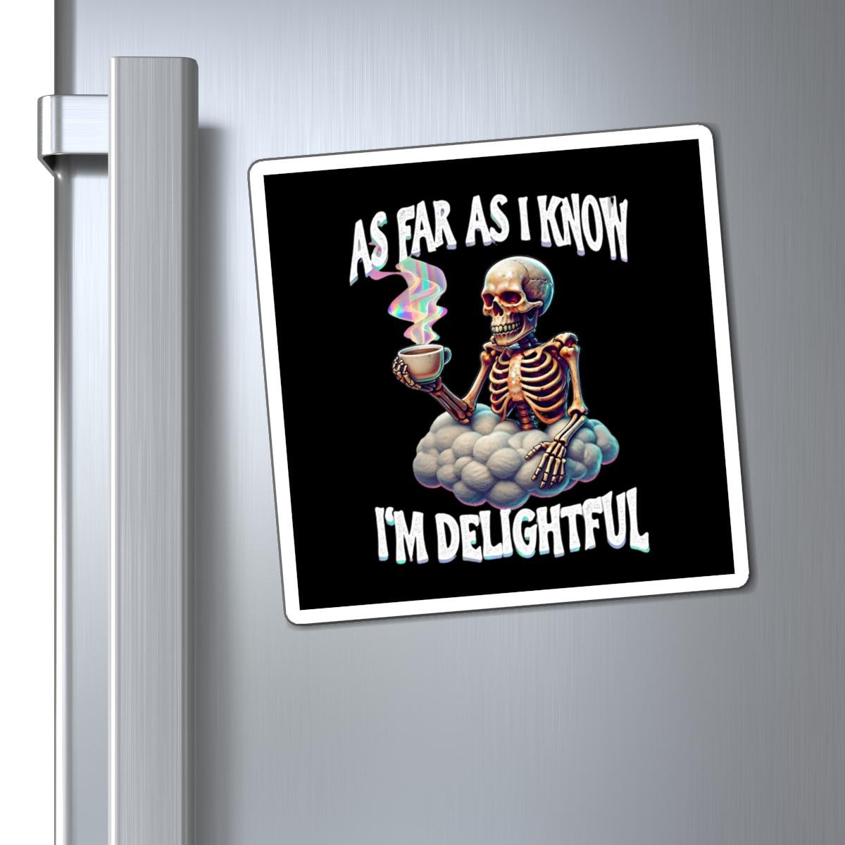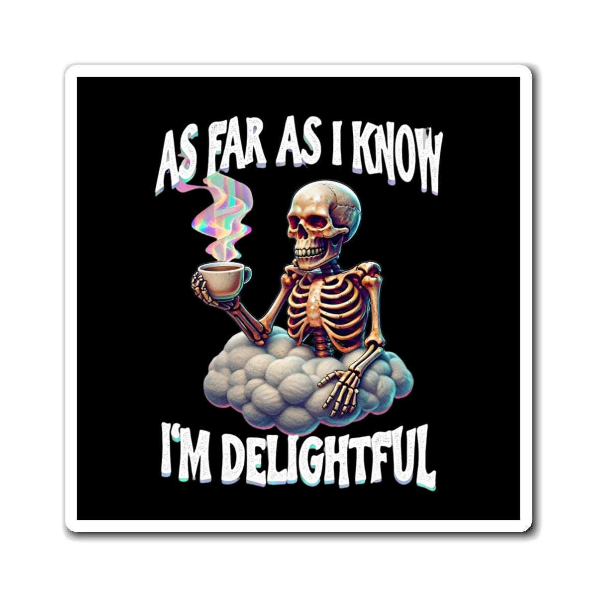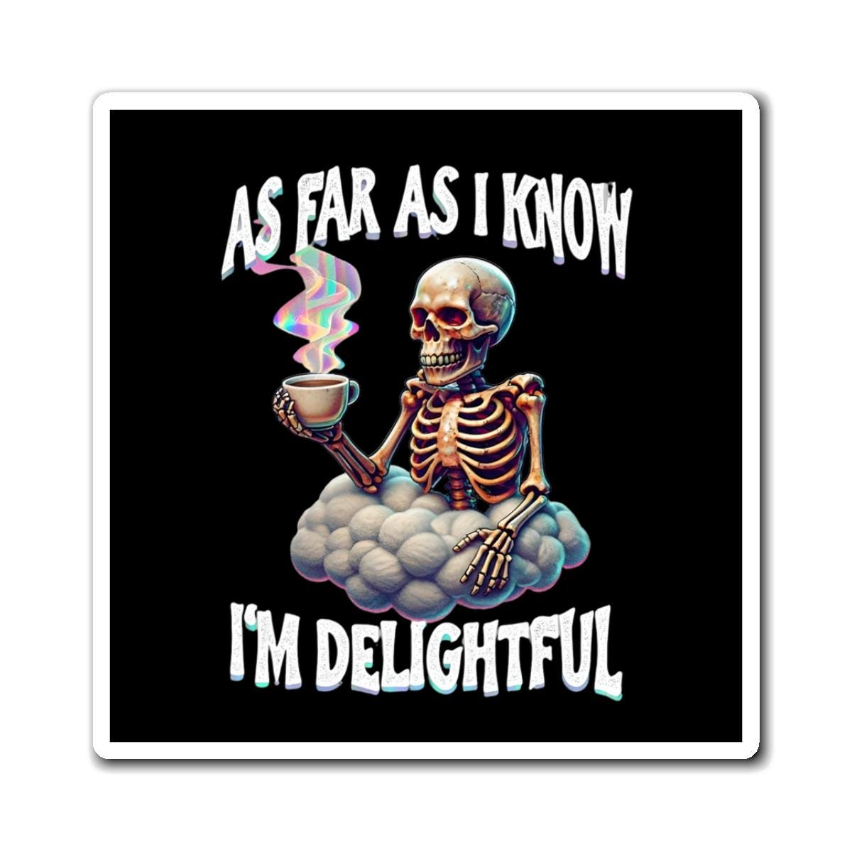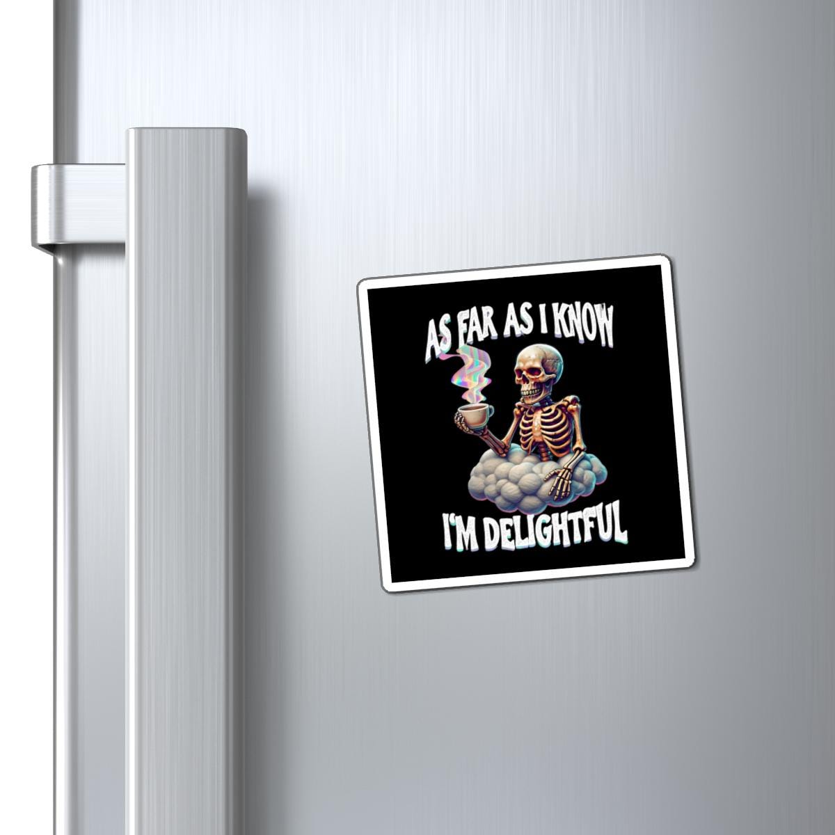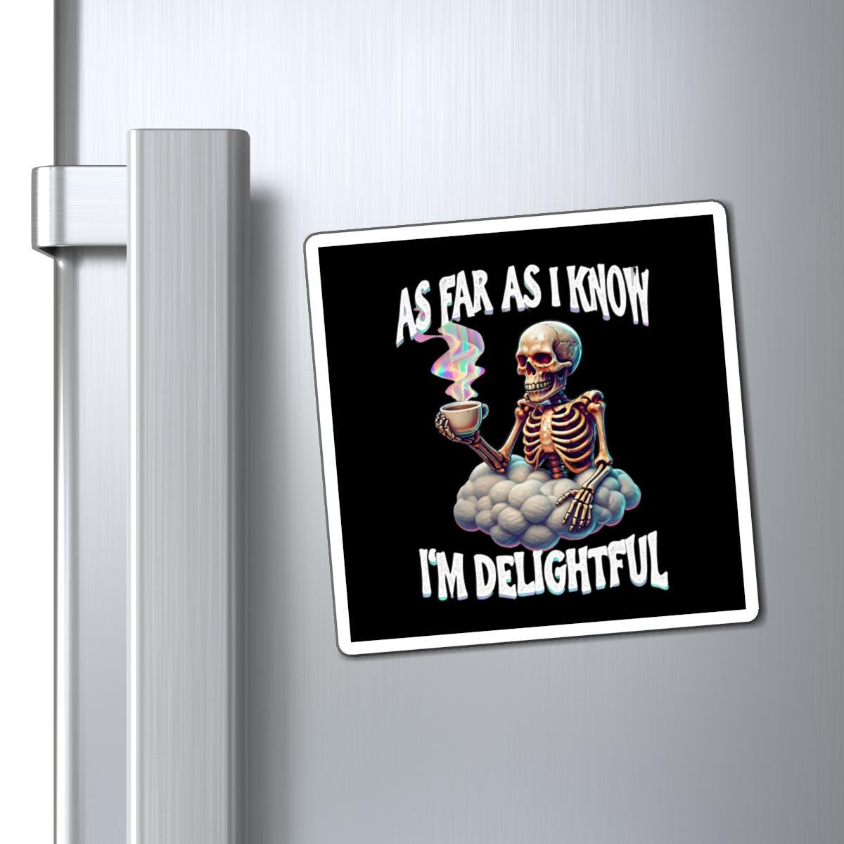 Funny Skeleton Magnet, As Far As I Know I'm Delightful Fridge Magnet, Dark Humor Coffee Gift, Sarcastic Goth Kitchen Decor
