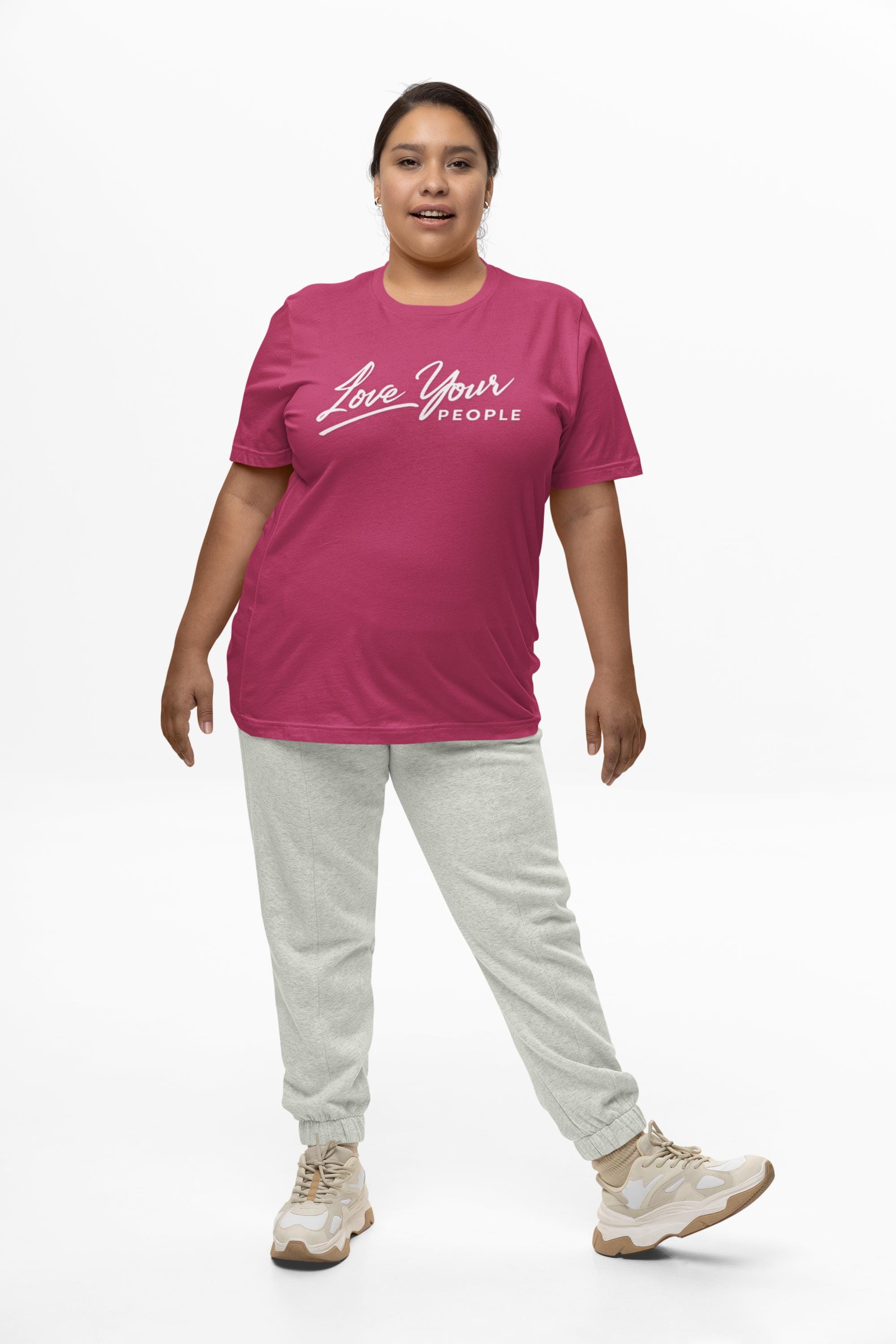 Celebrate connection and spread positivity with our "Love Your People" personalized team shirt. Perfect for coaches, friends, family, or anyone who values kindness and community, this uplifting shirt inspires and brings people together. Featuring a sleek, minimalist font with a heart accent, it seamlessly blends modern style with meaningful message.