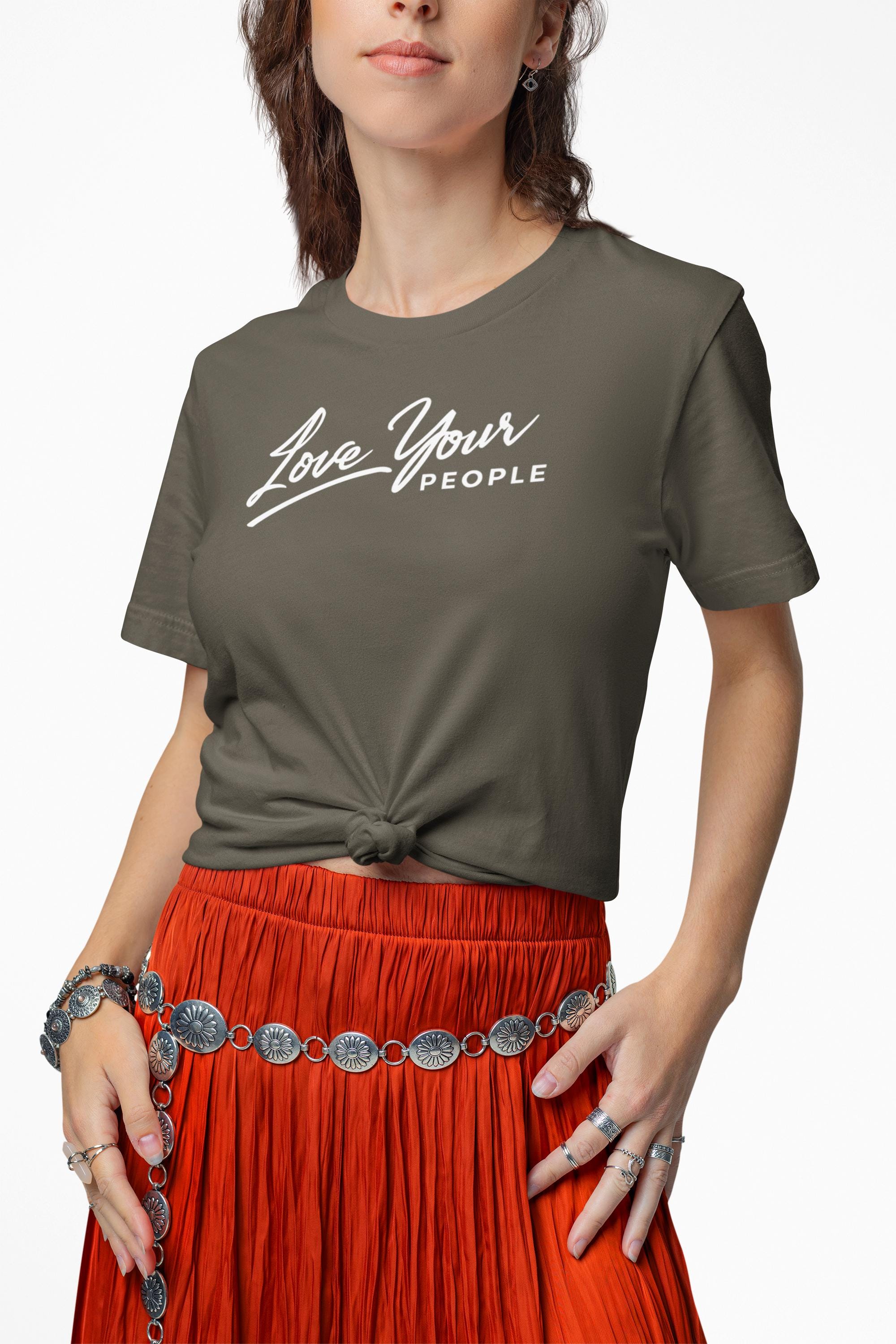 Personalize the sleeve with your own message, such as "Your People," to make it uniquely yours. The clean design and contemporary aesthetic make it suitable for casual outings, faith-based events, or just spreading good vibes wherever you go.
