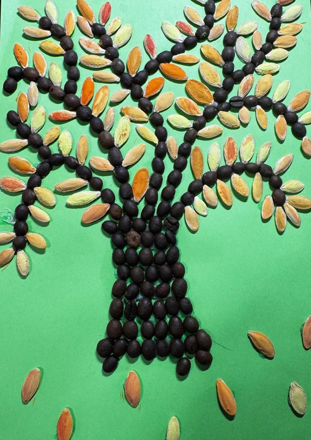 Design Story: The seed tree symbolizes growth; pumpkin seed leaves add whimsical texture.