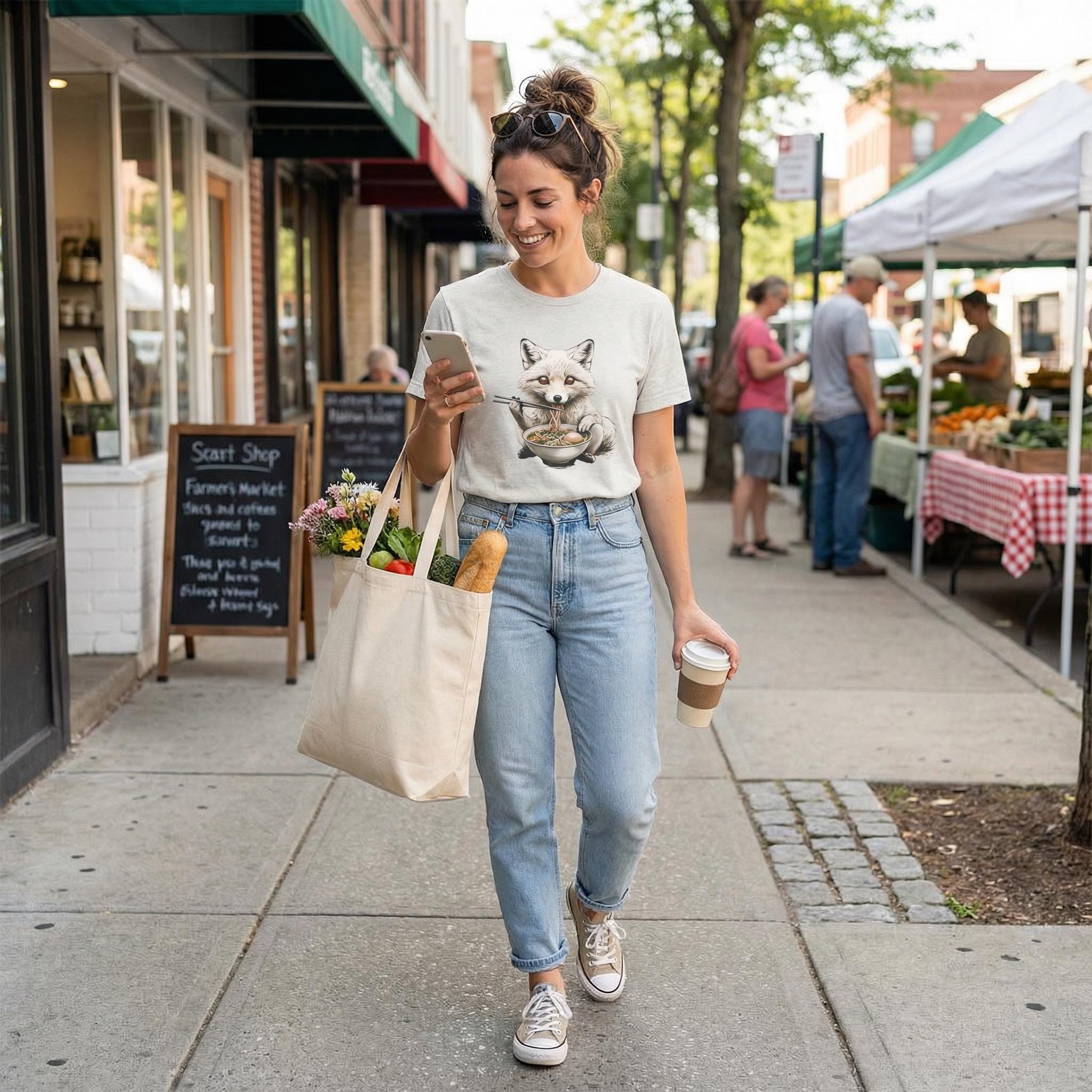 Fox Eating Ramen Graphic Tee – Cozy, Quirky Animal Shirt for Food Lovers