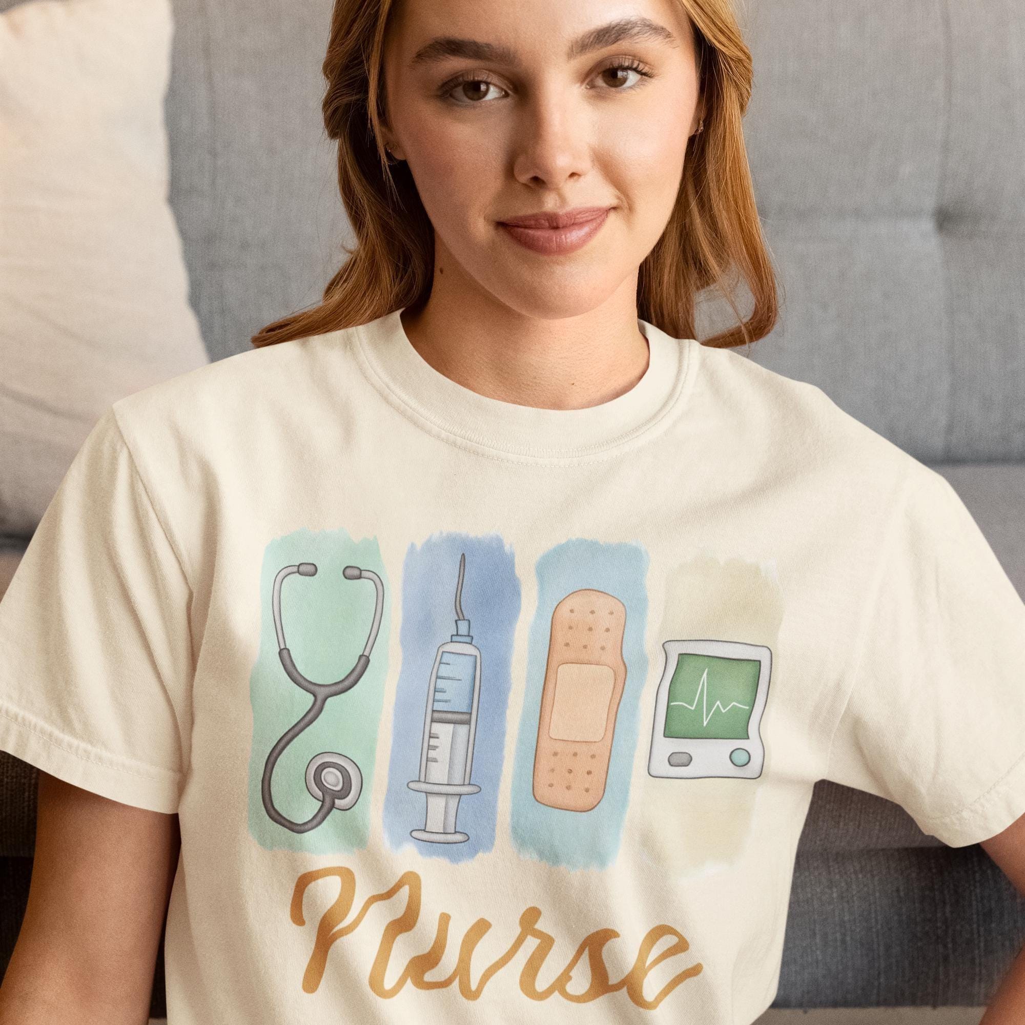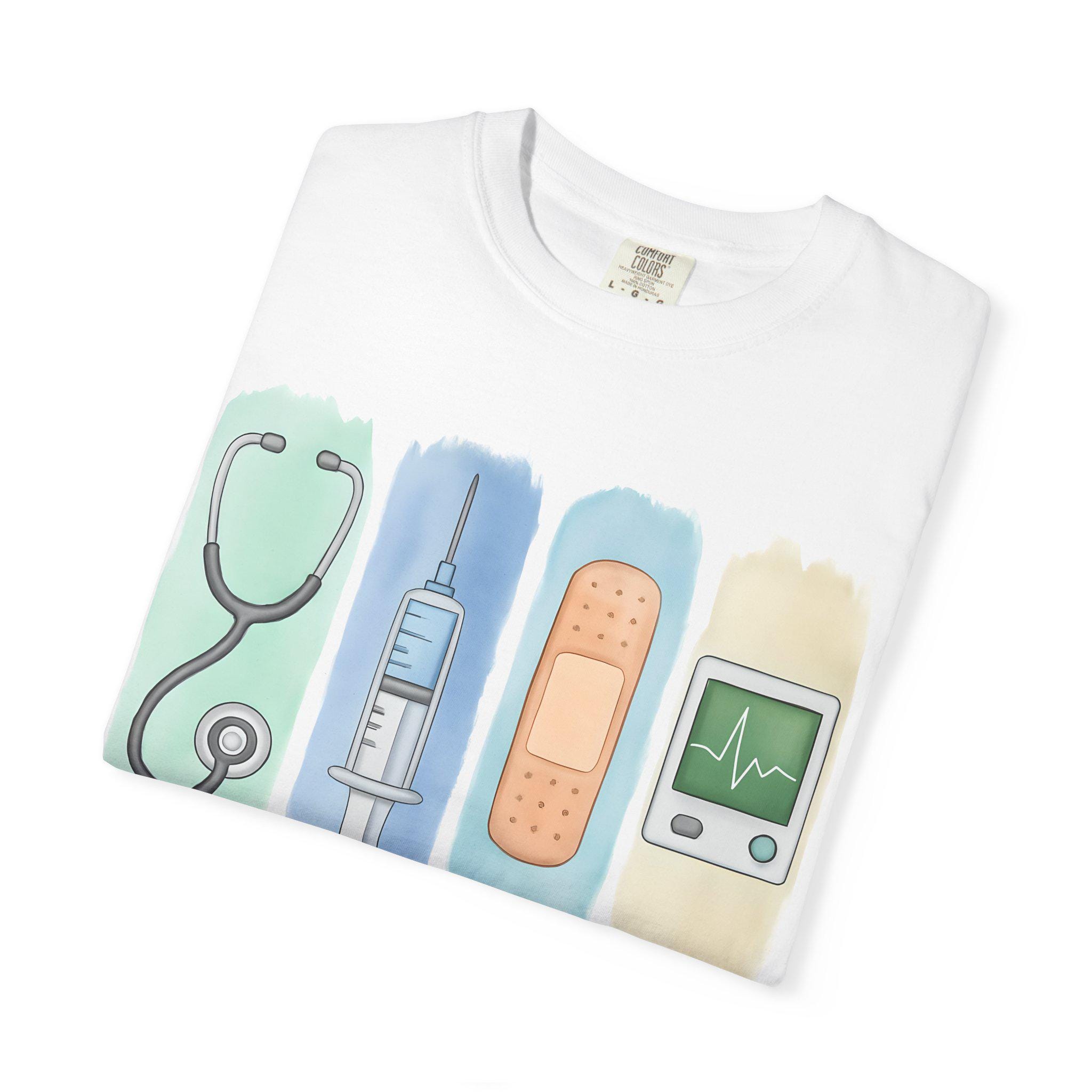 Comfort Colors Nurse T-Shirt: Watercolor Medical Icons, RN Gift