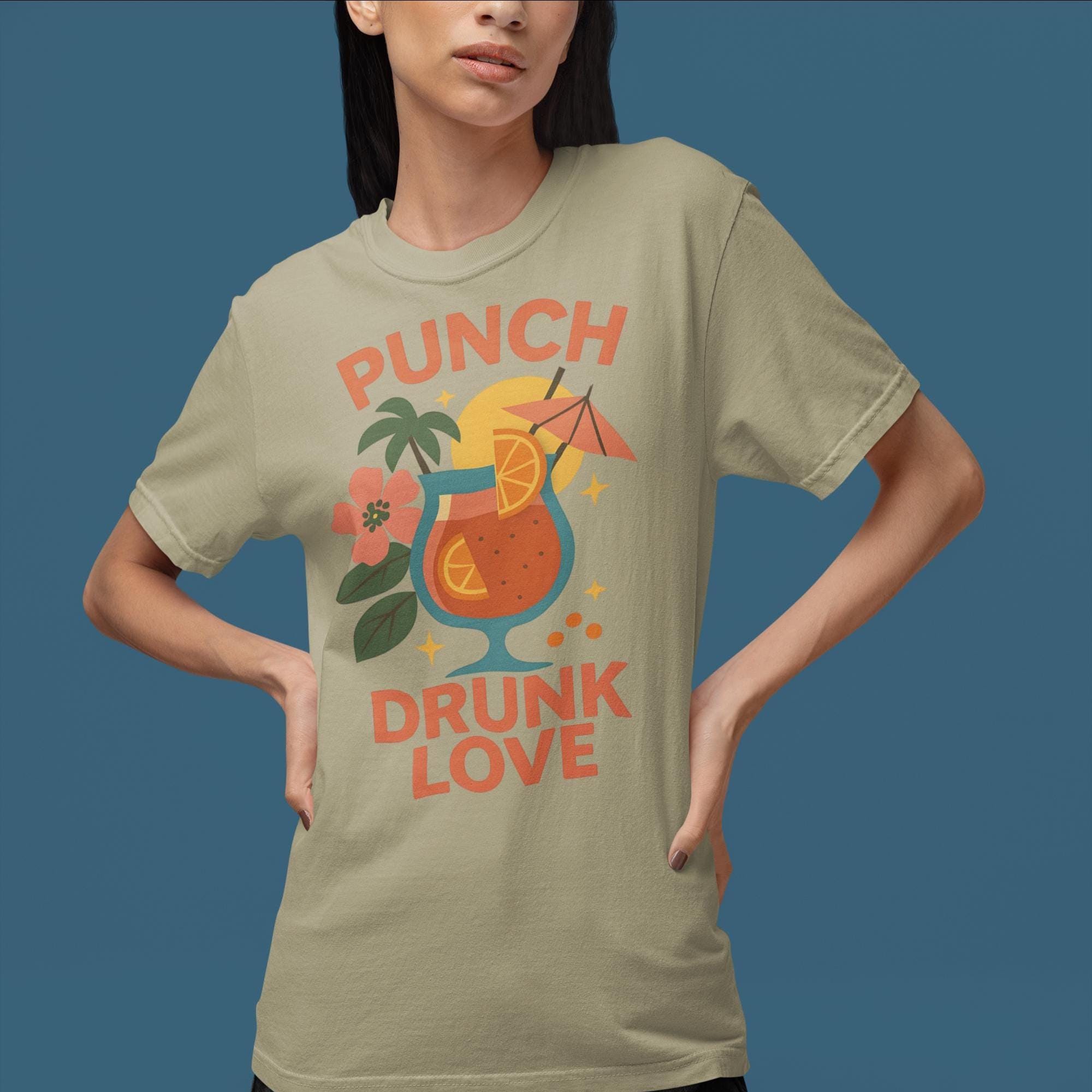Punch Drunk Love Comfort Colors Tee: Retro Cocktail Graphic Shirt