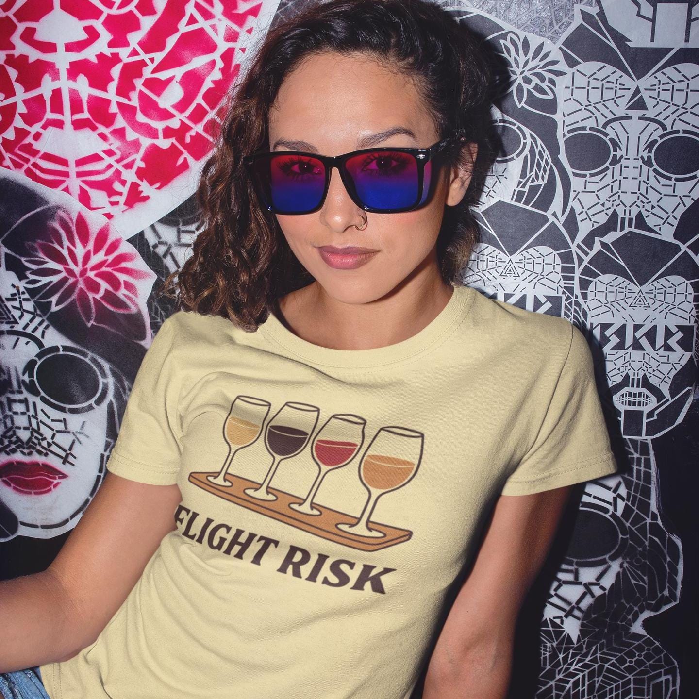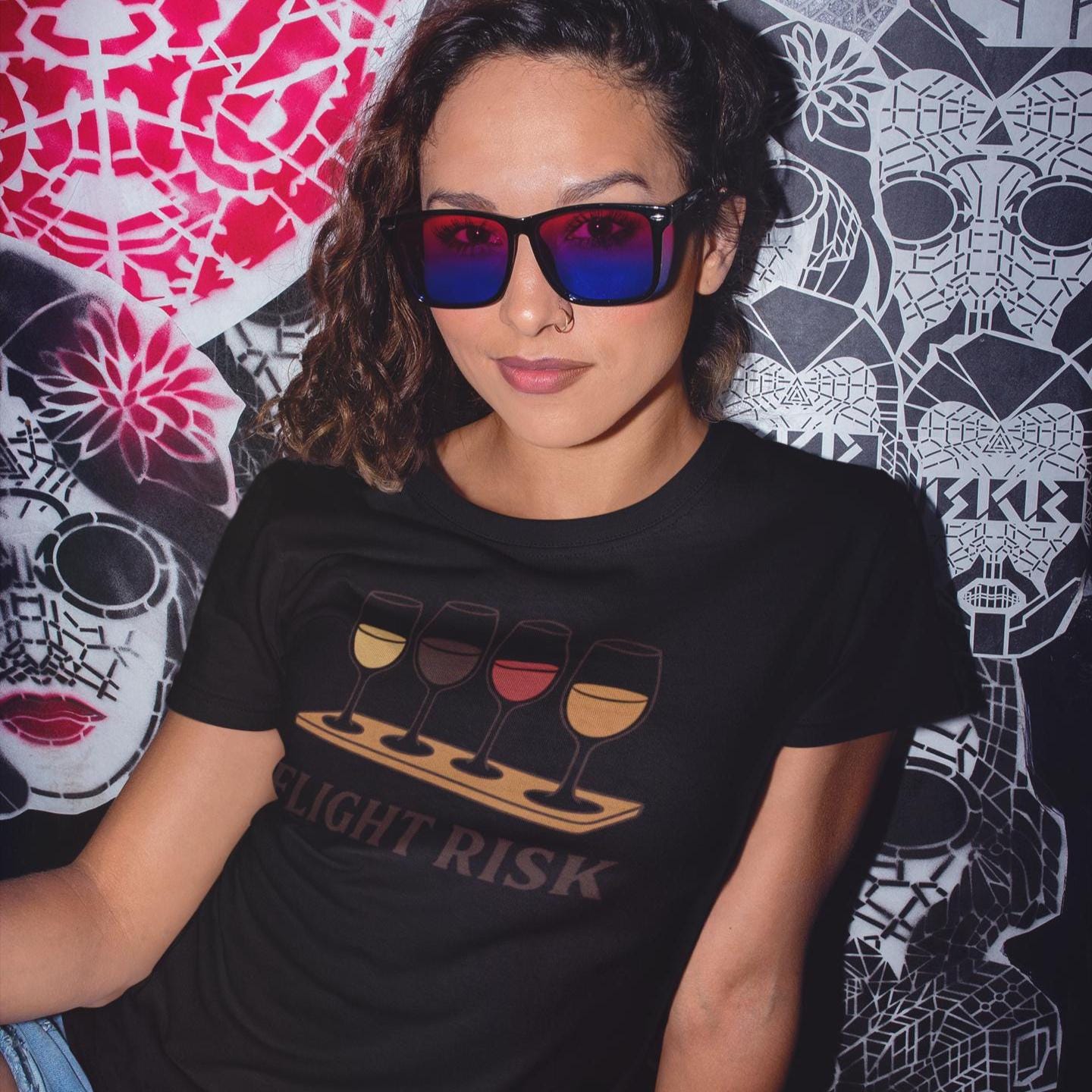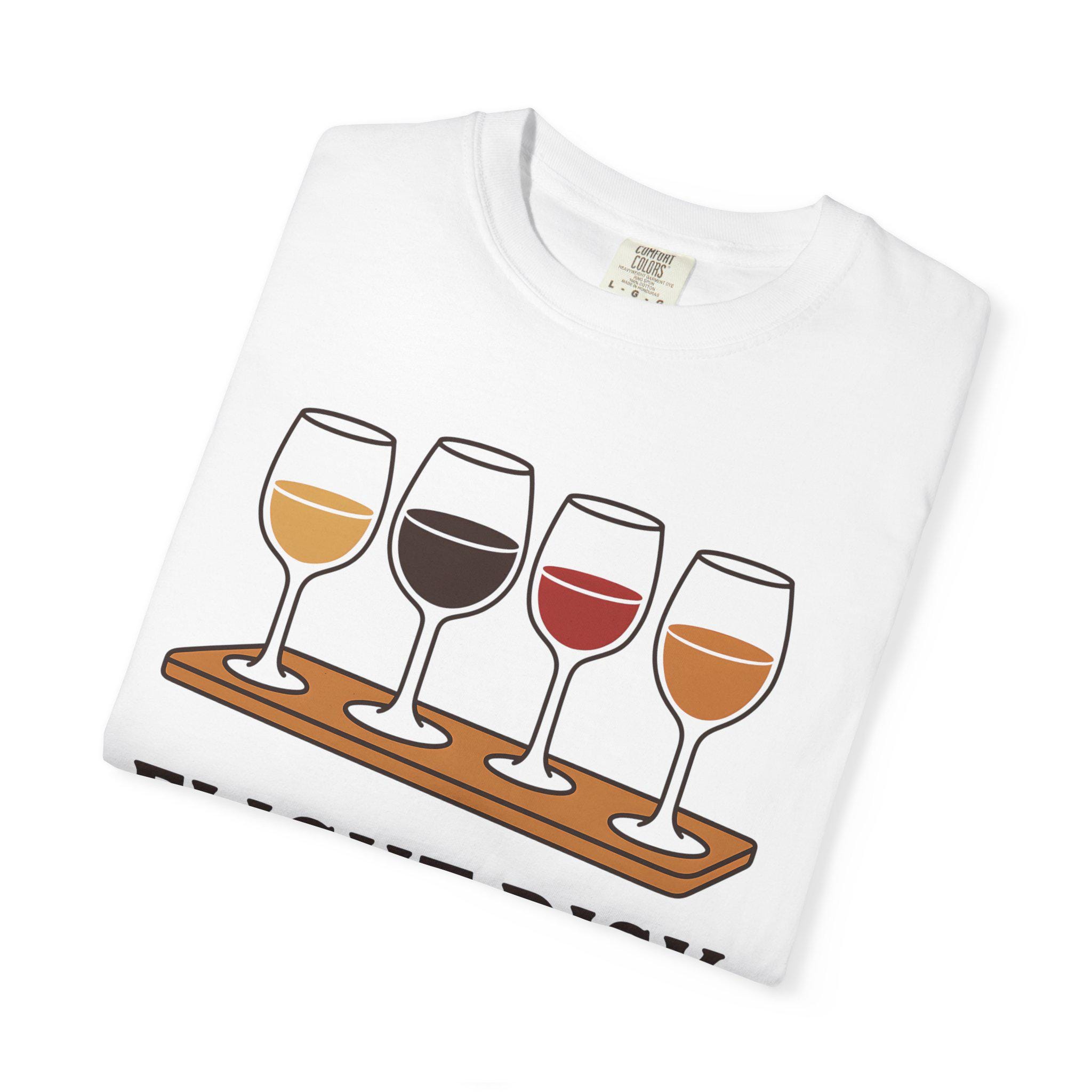 This Comfort Colors “Flight Risk” T-shirt is the perfect blend of humor and style for wine lovers. Featuring a playful wine flight graphic with four colorful glasses, this vintage-soft unisex tee is ideal for winery tours, girls' weekends, or sipping at home in style.